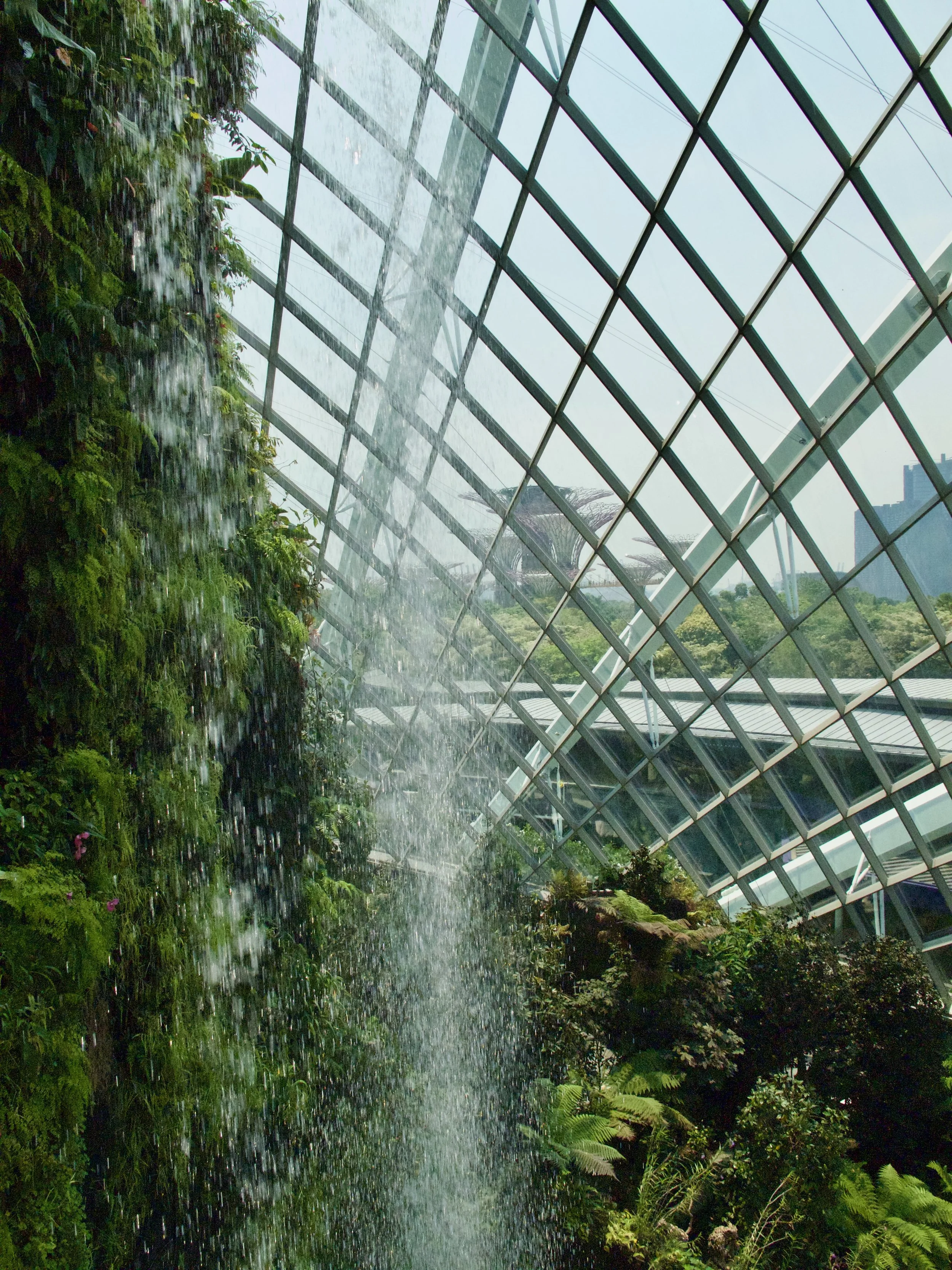 The outer gardens covered a vast area and were free to the public to wander at their leisure. Full of fountains, waterways, boardwalks and artwork of all forms, one could spend hours wandering amidst the beauty that was created here. Then there’s the interior of the amazing structures which house the Flower Dome and the Cloud Forest.