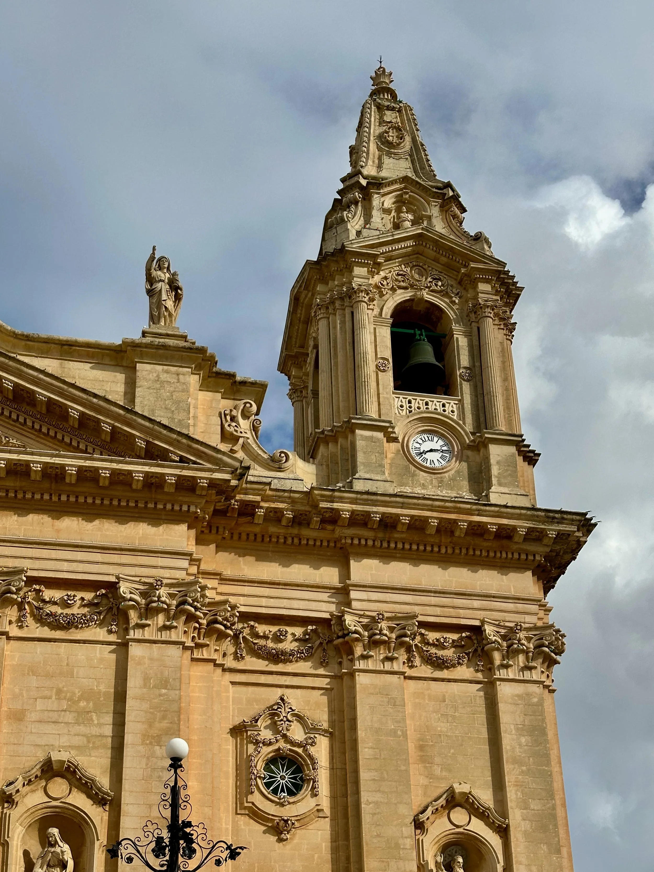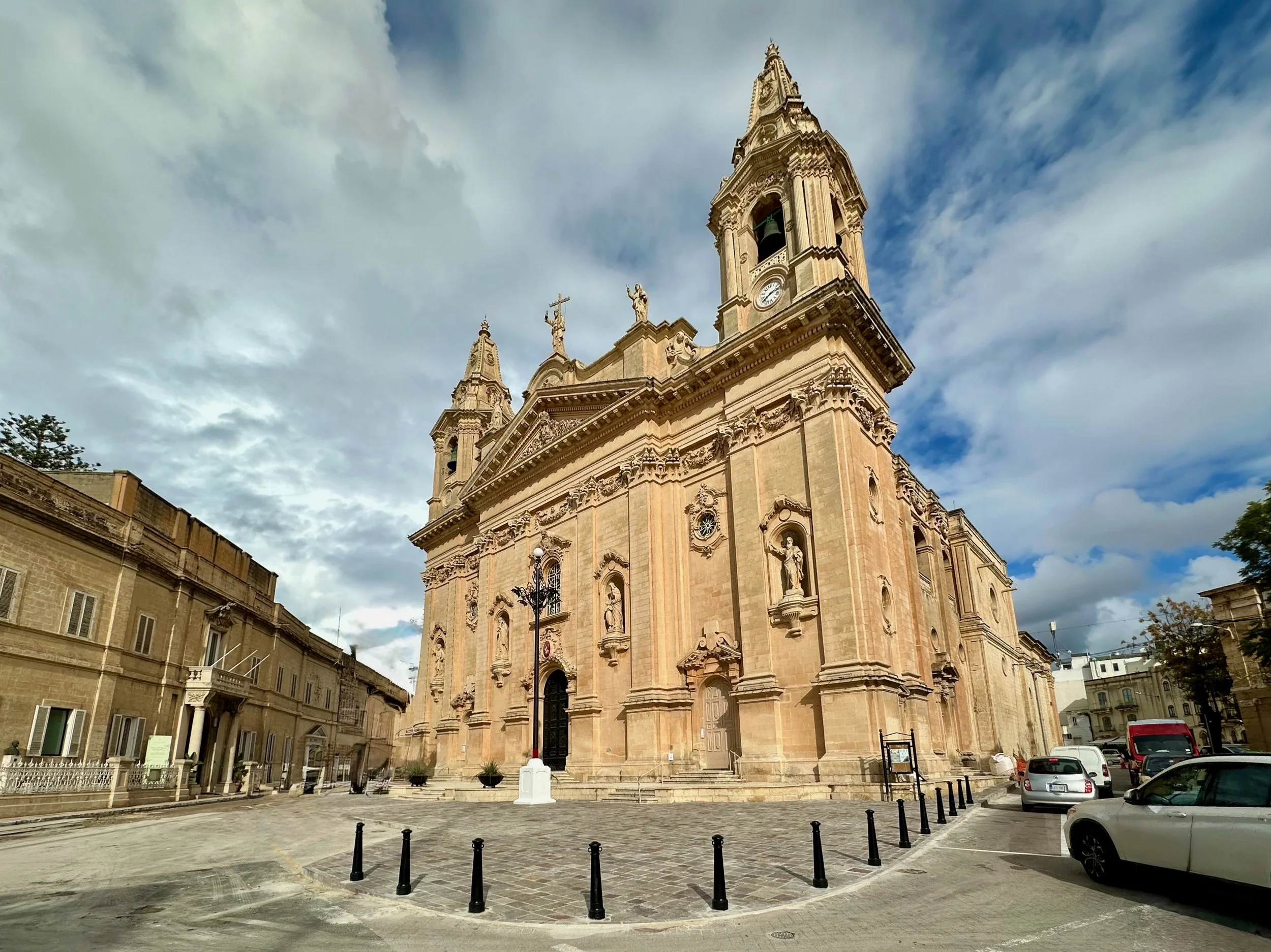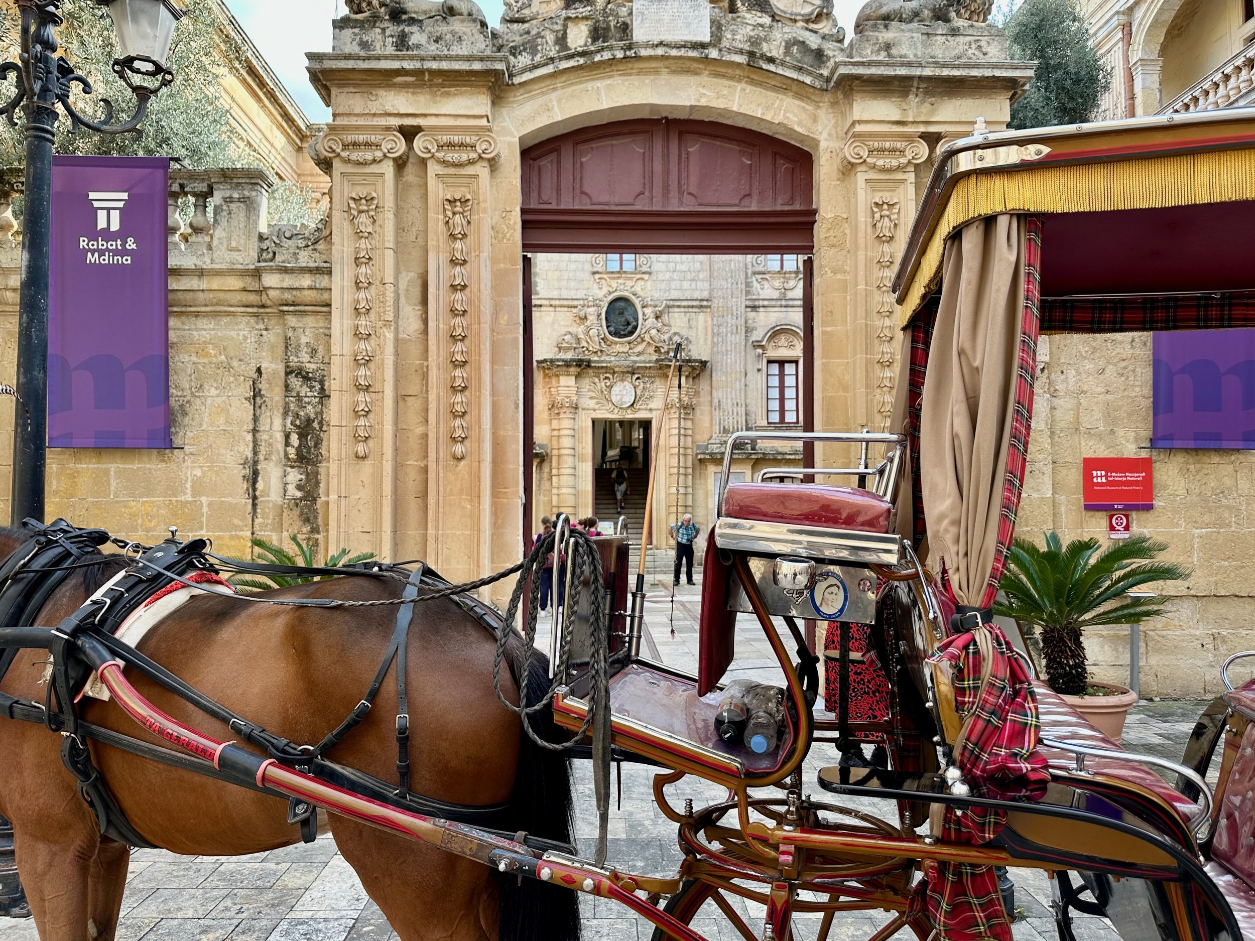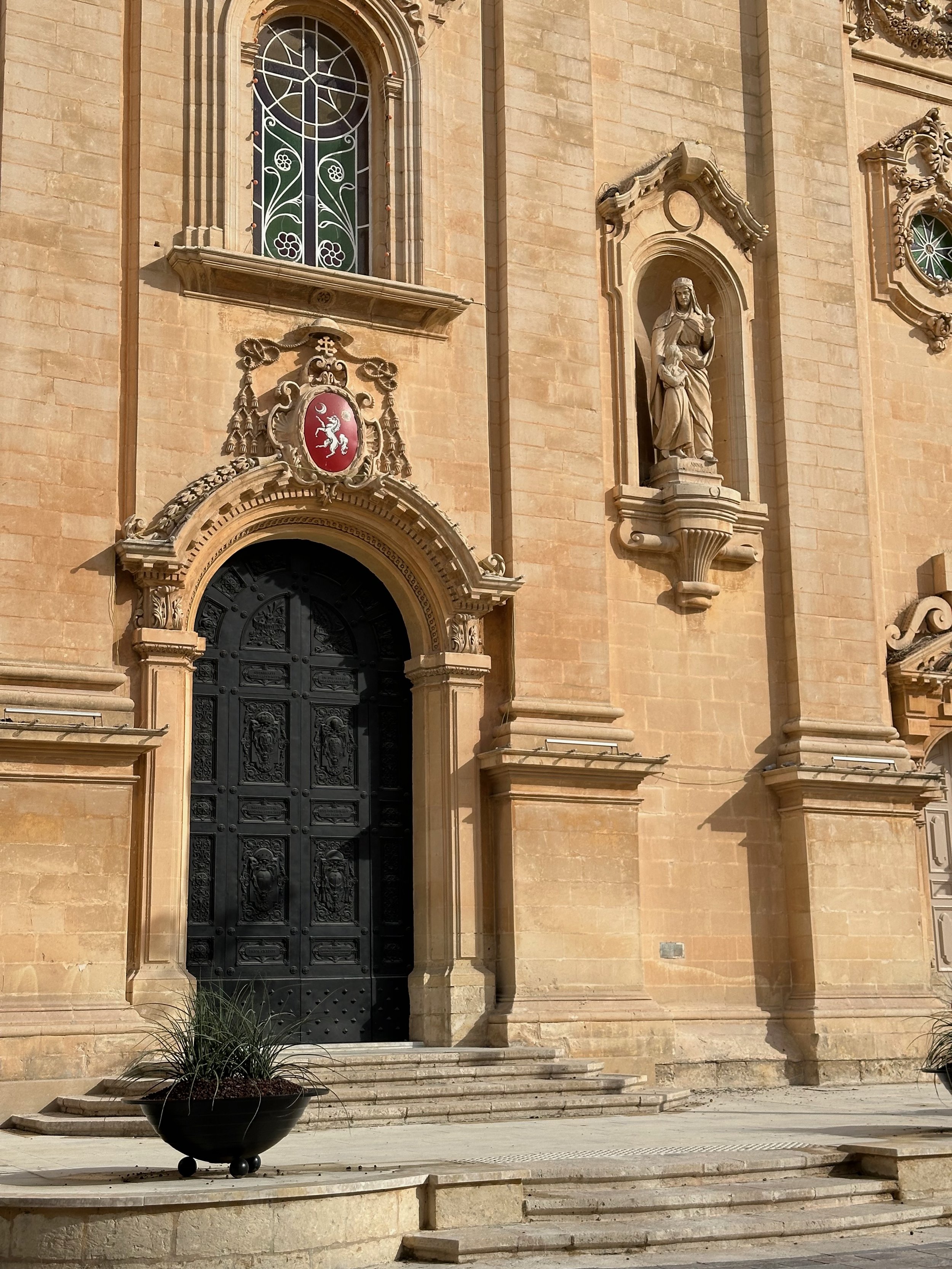 Literally across the street from Palazzo Parisio, in this northern village known as Naxxar, is the Parish Church of Our Lady. Locally known in the Maltese language as Knisja Parrokkjali tal-Madonna ta’ Naxxar, it’s listed as being among Malta’s most significant churches, and dedicated to “Our Lady of the Assumption”. It’s the heart of the local Catholic community, with bells ringing throughout the town each Sunday. Unfortunately we were only shown the exterior of the church while getting off the bus and going into the palazzo. A real shame as photos of the interior found online are spectacular.