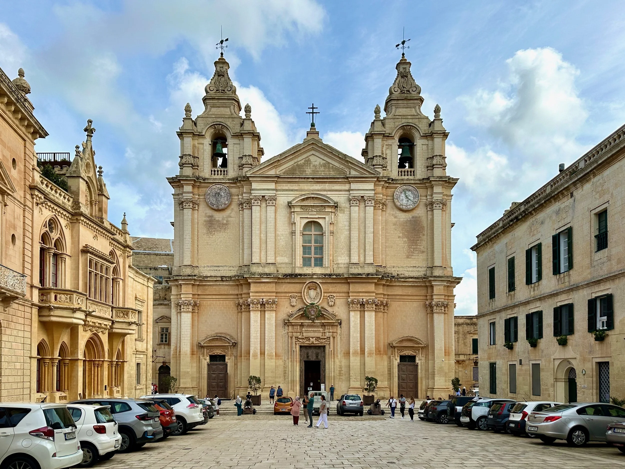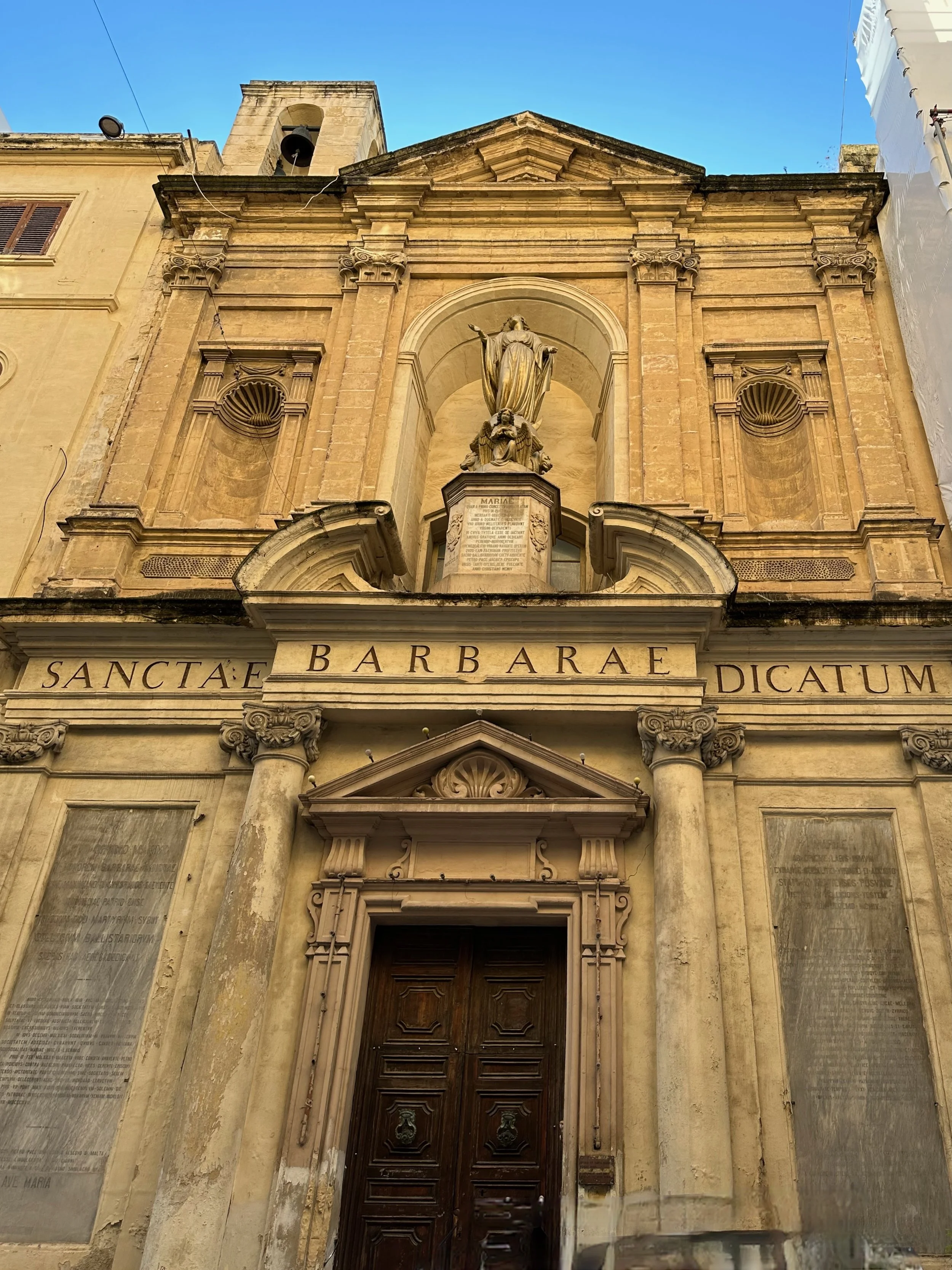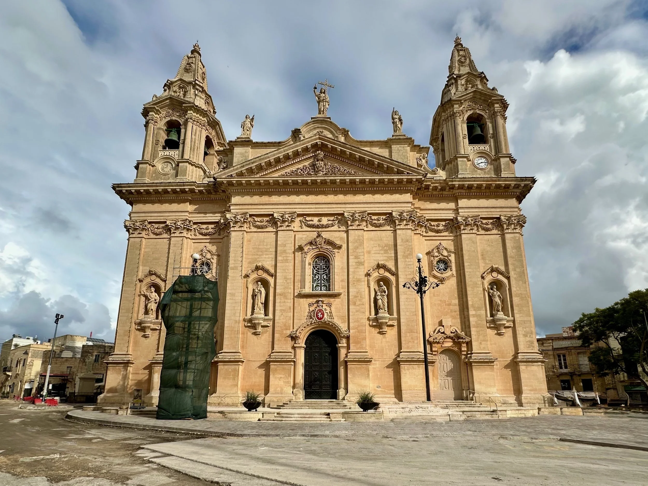 Literally across the street from Palazzo Parisio, in this northern village known as Naxxar, is the Parish Church of Our Lady. Locally known in the Maltese language as Knisja Parrokkjali tal-Madonna ta’ Naxxar, it’s listed as being among Malta’s most significant churches, and dedicated to “Our Lady of the Assumption”. It’s the heart of the local Catholic community, with bells ringing throughout the town each Sunday. Unfortunately we were only shown the exterior of the church while getting off the bus and going into the palazzo. A real shame as photos of the interior found online are spectacular.
