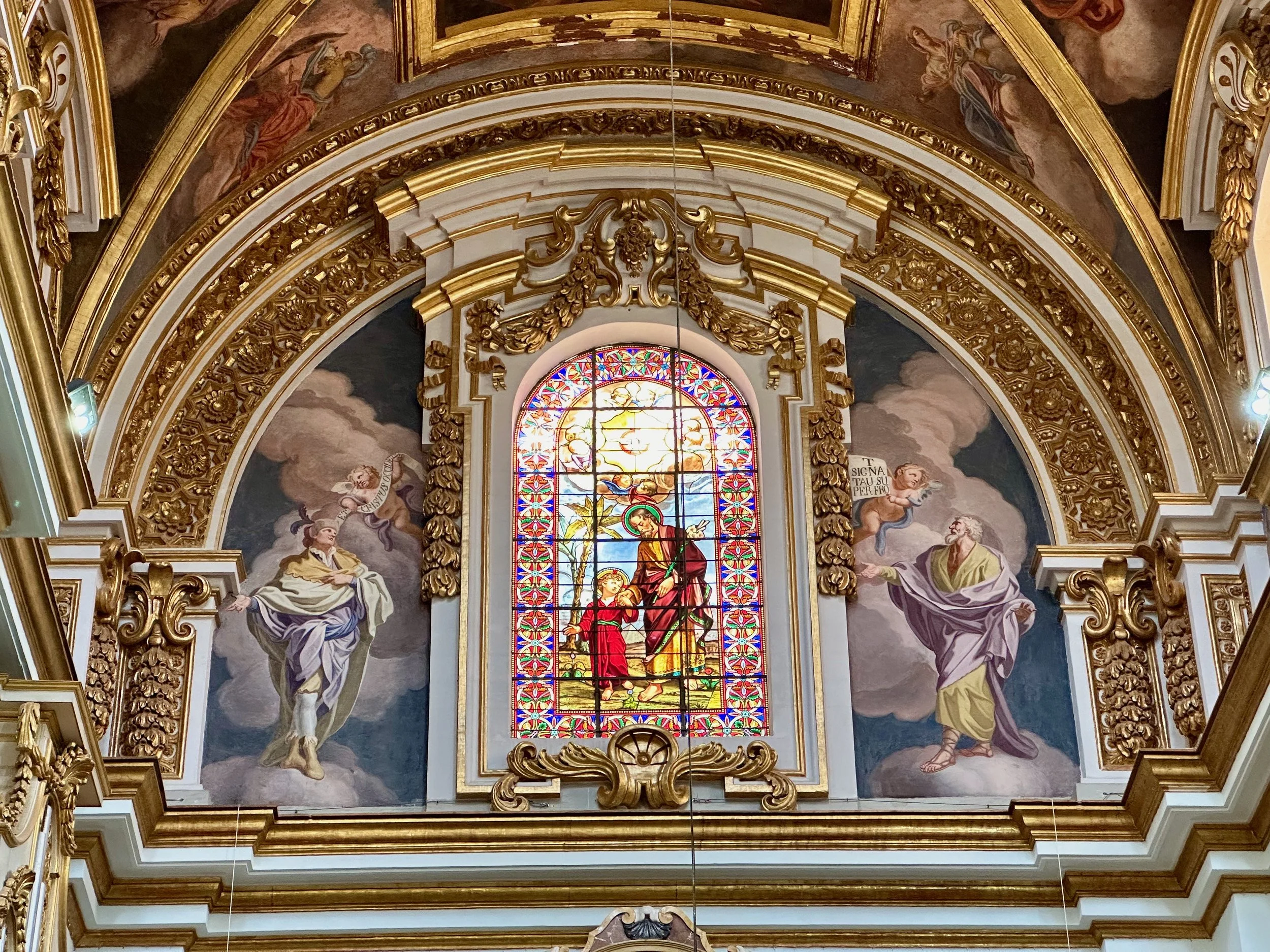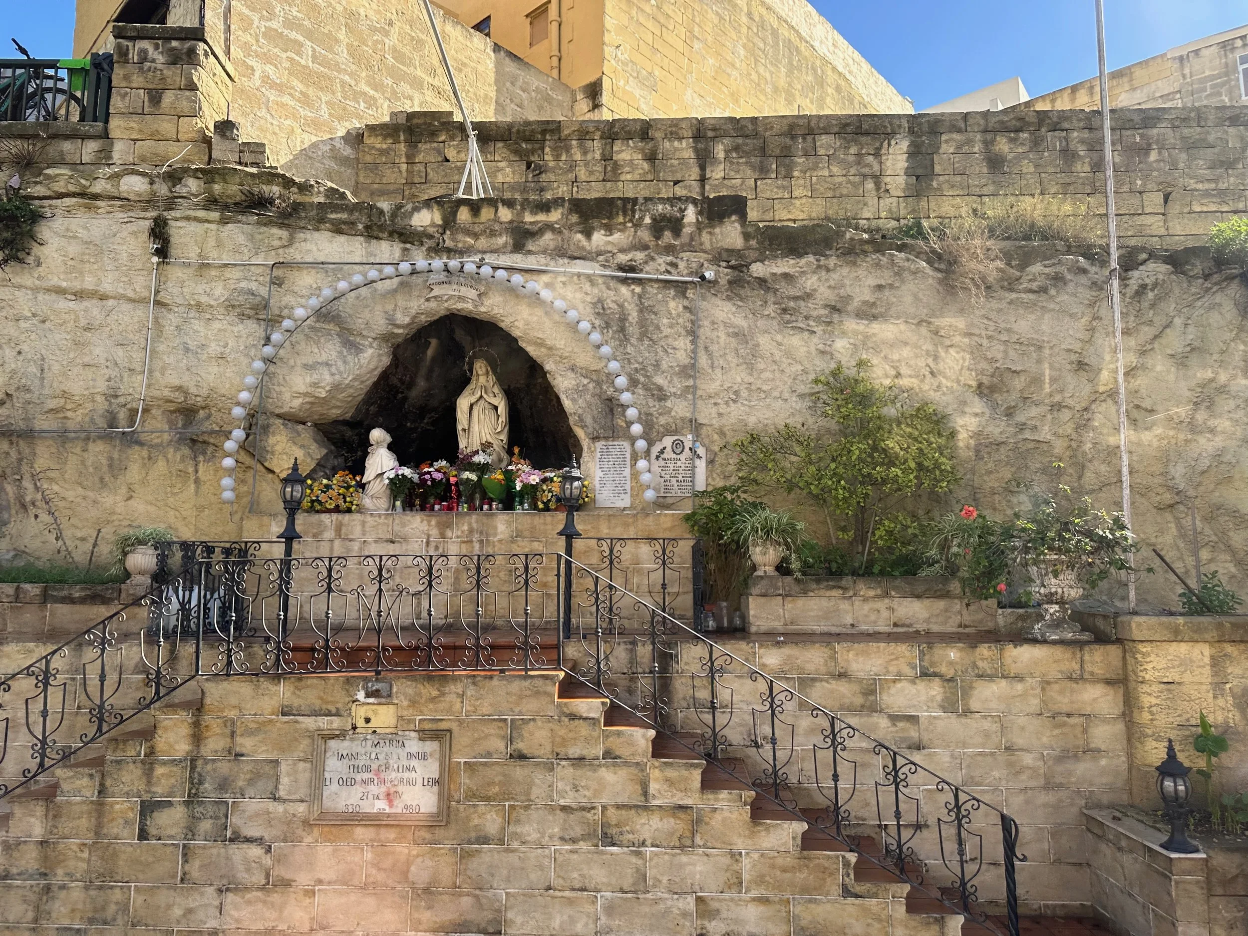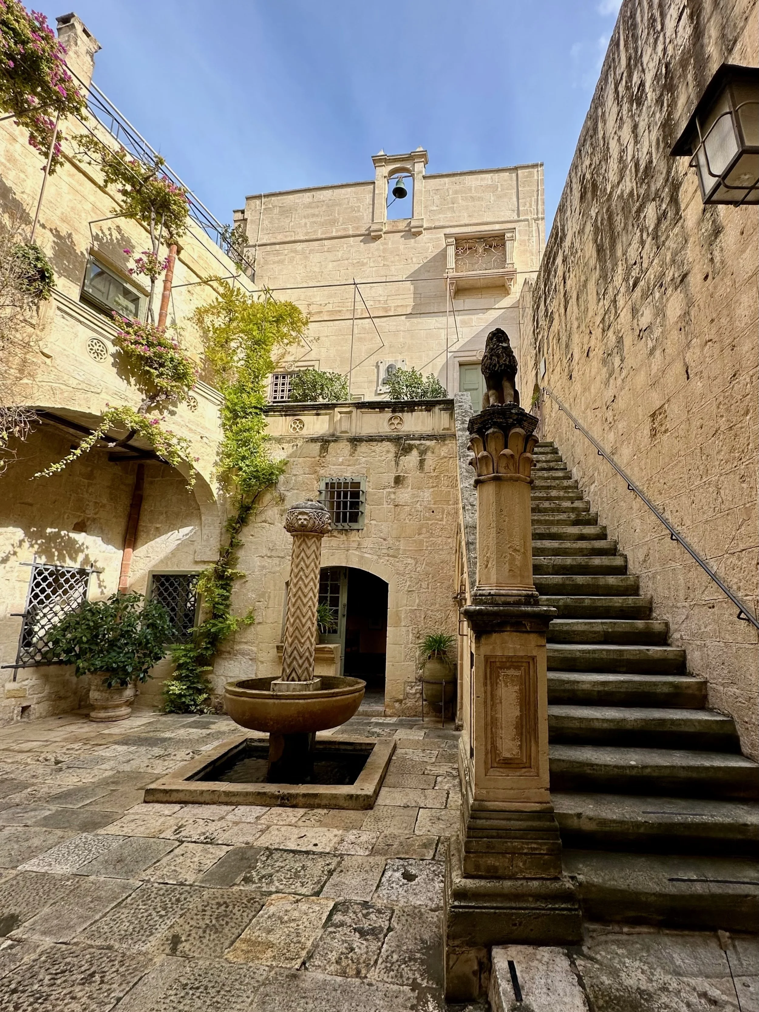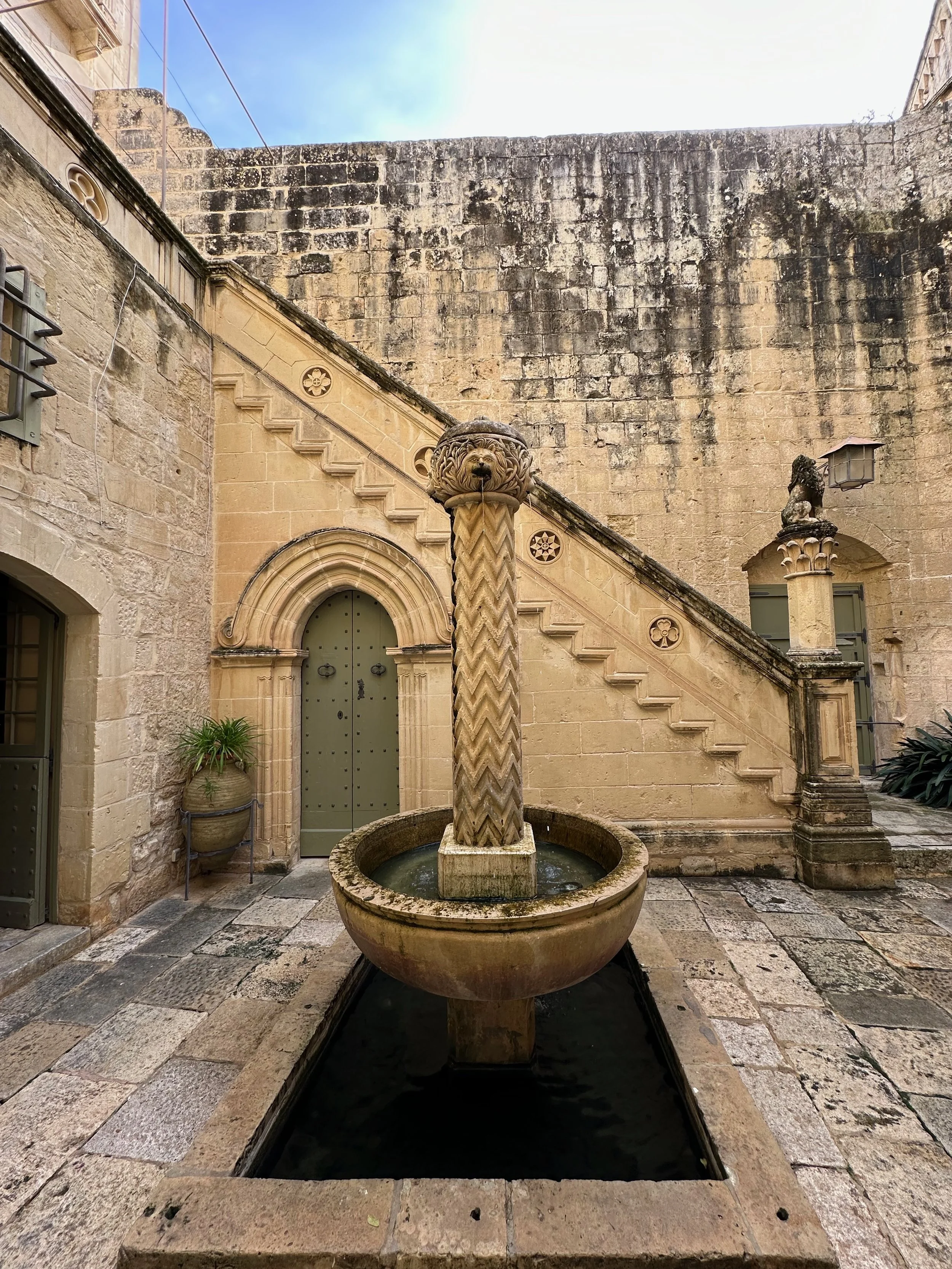 Literally across the street from Palazzo Parisio, in this northern village known as Naxxar, is the Parish Church of Our Lady. Locally known in the Maltese language as Knisja Parrokkjali tal-Madonna ta’ Naxxar, it’s listed as being among Malta’s most significant churches, and dedicated to “Our Lady of the Assumption”. It’s the heart of the local Catholic community, with bells ringing throughout the town each Sunday. Unfortunately we were only shown the exterior of the church while getting off the bus and going into the palazzo. A real shame as photos of the interior found online are spectacular.