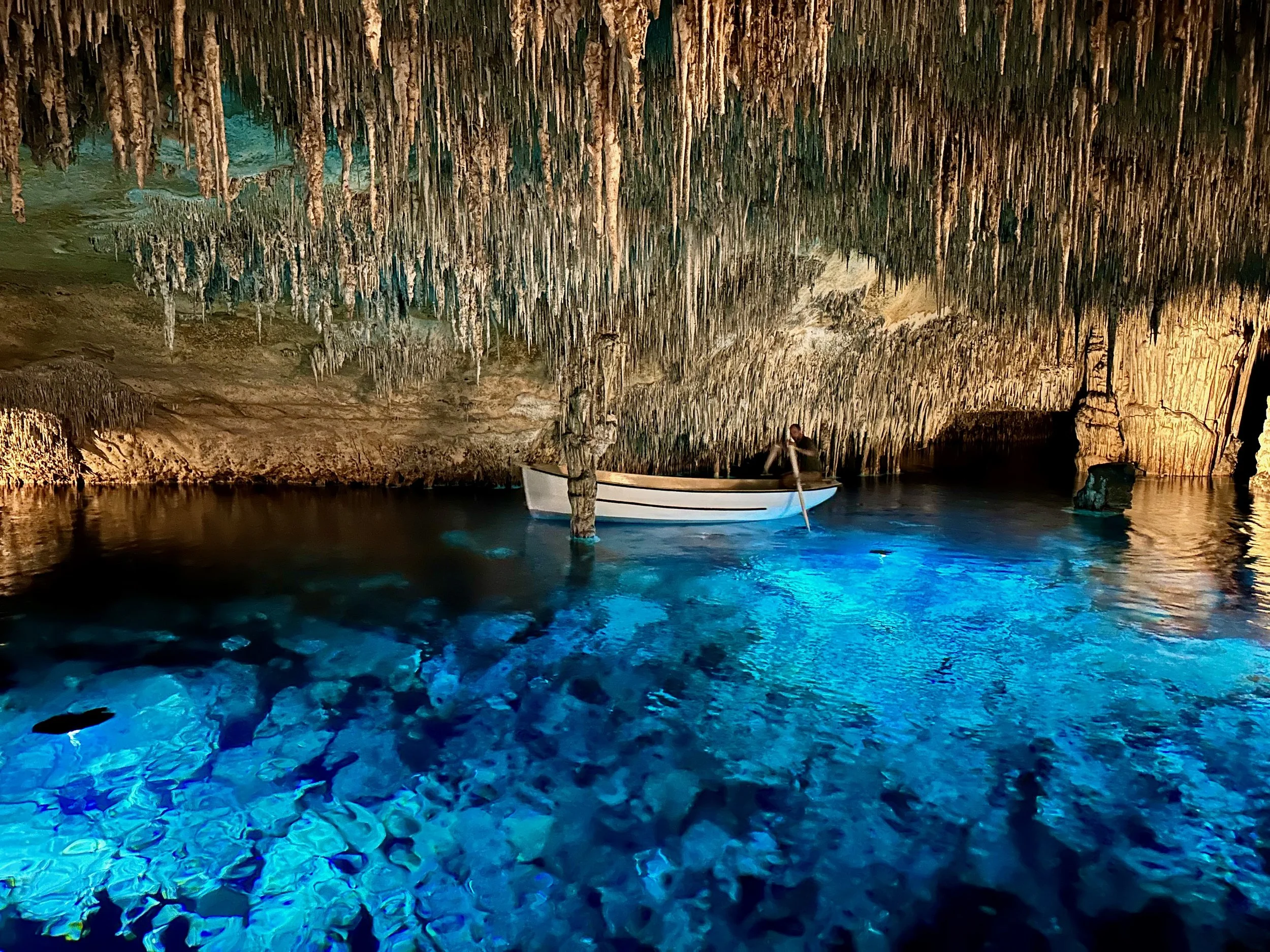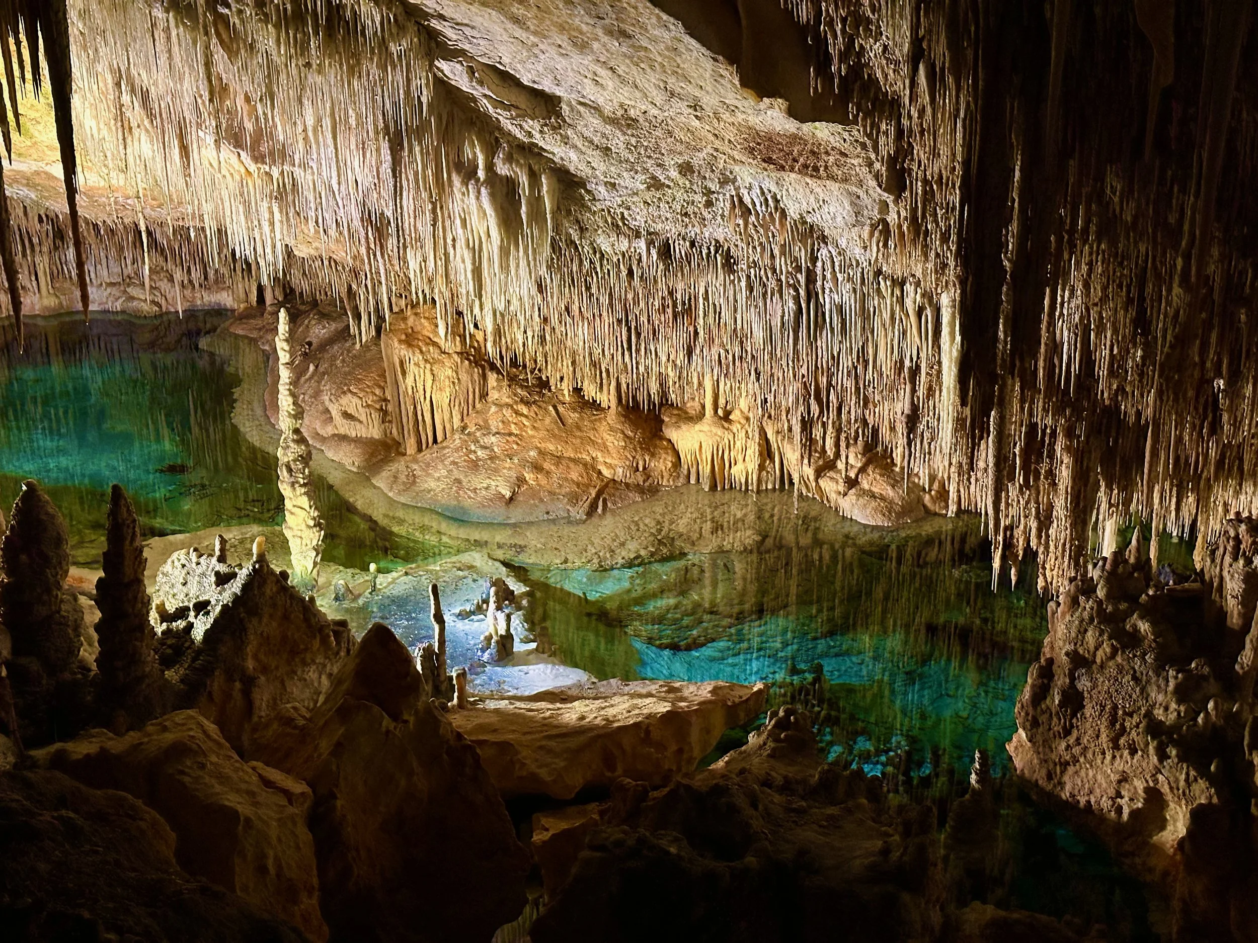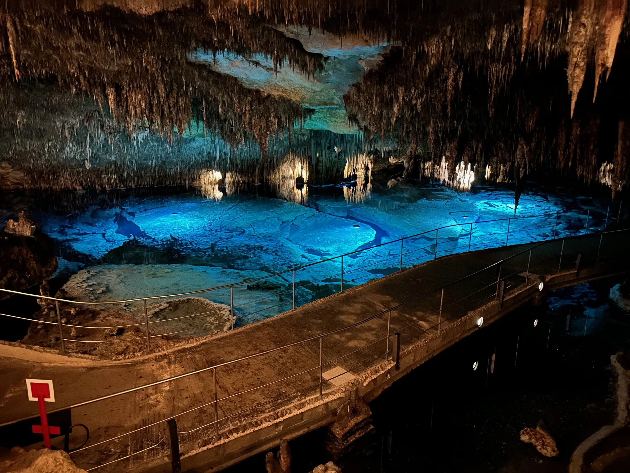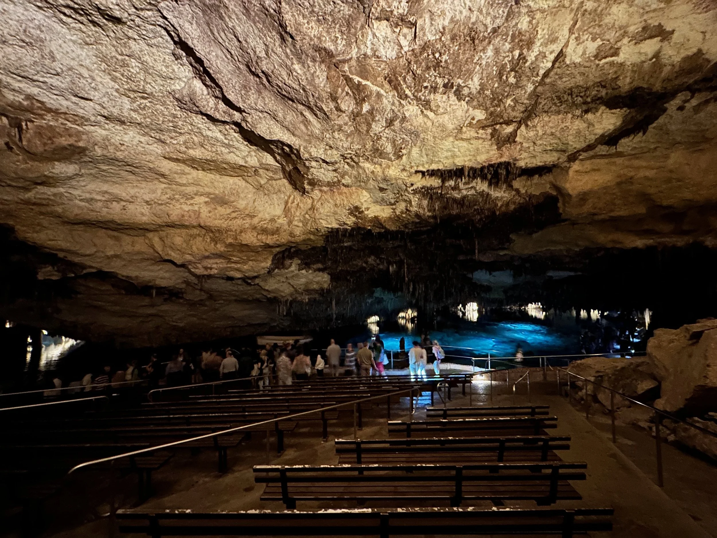 The lake at the bottom of the cave network was extraordinary. Lit by submerged lights, it glowed with beautiful blue and turquoise colours in a mottled appearance, the likes of which we have never experienced before. Add to that the lovely music played by actual musicians and it made for a remarkable experience.