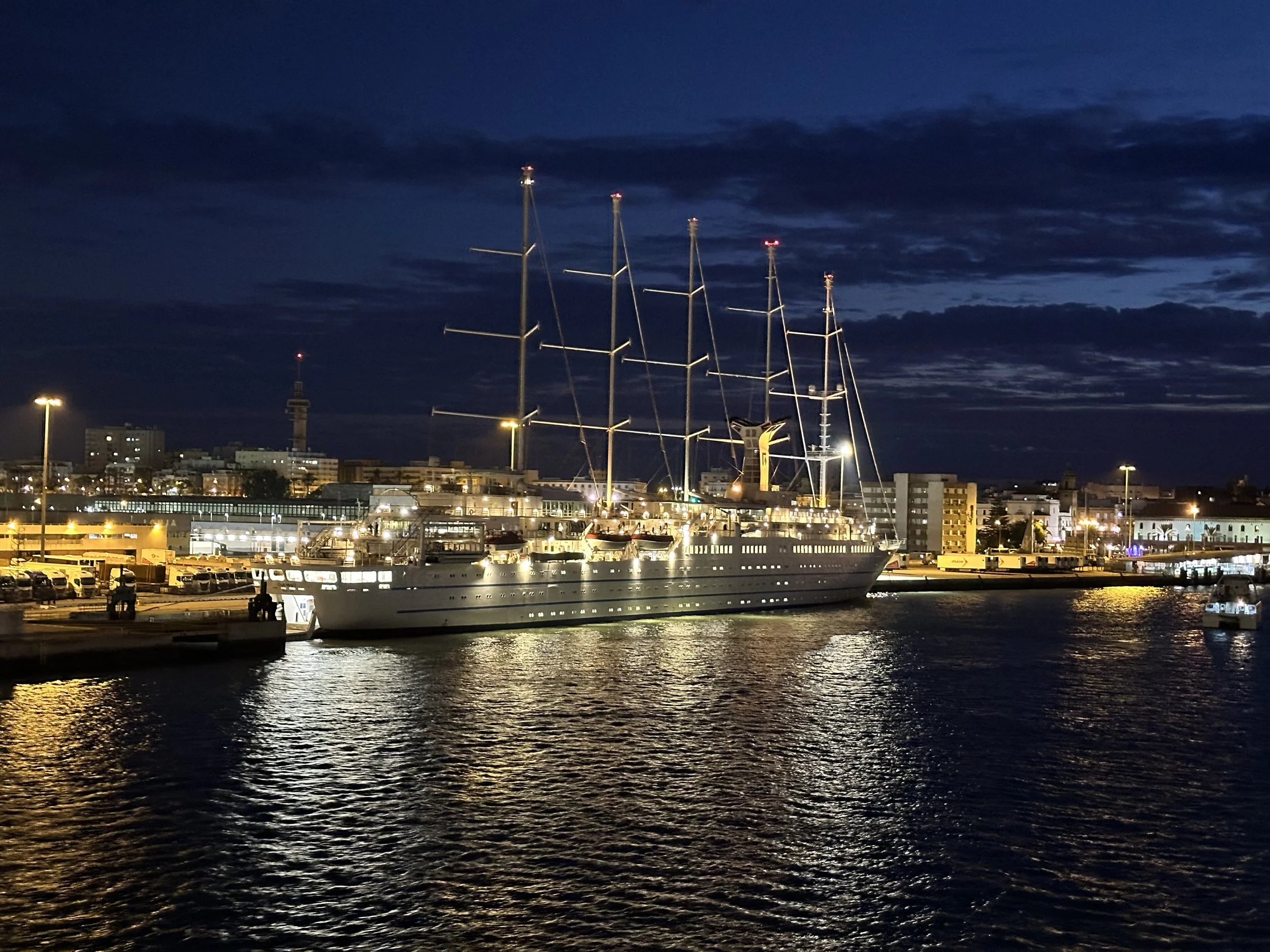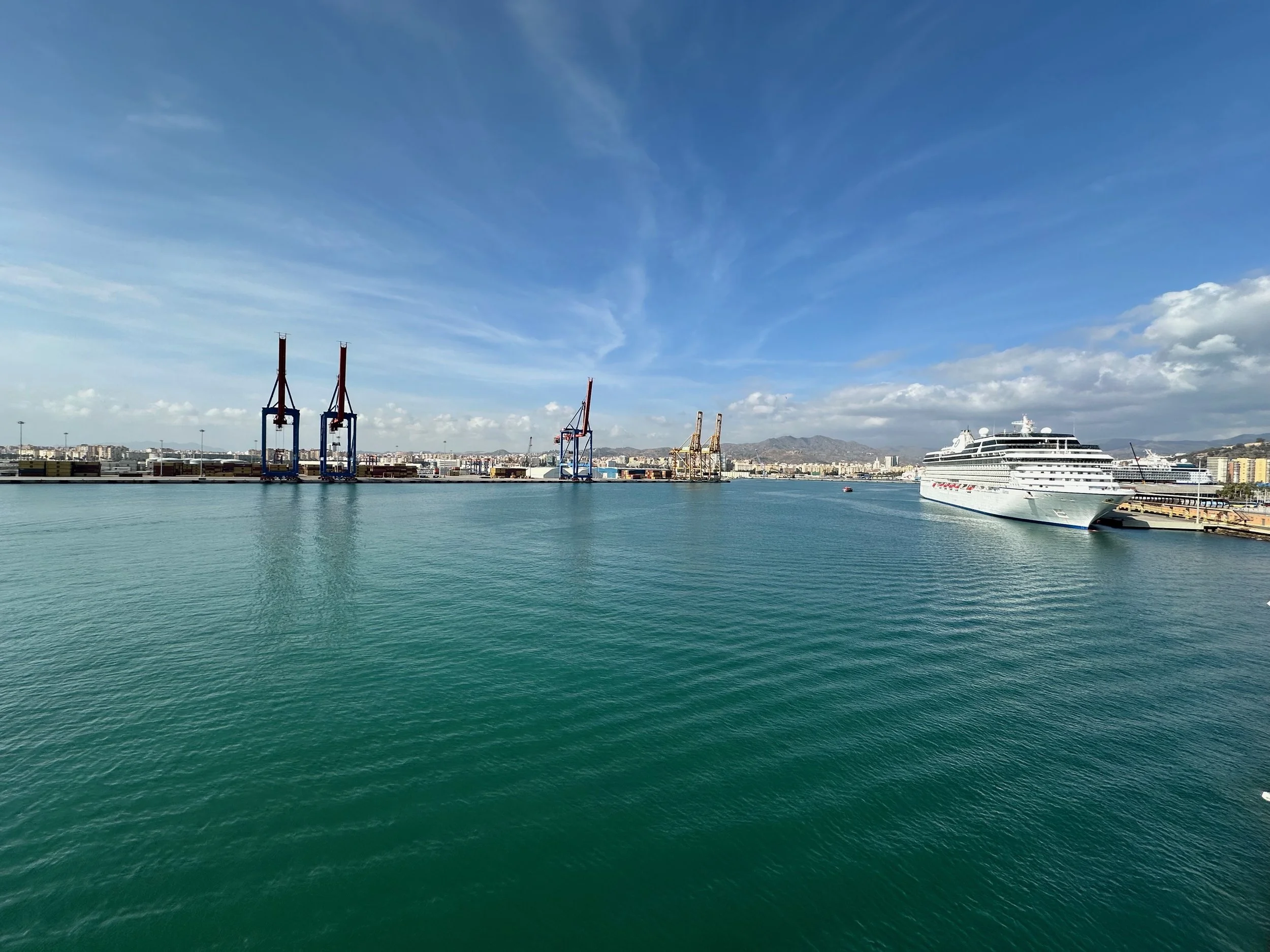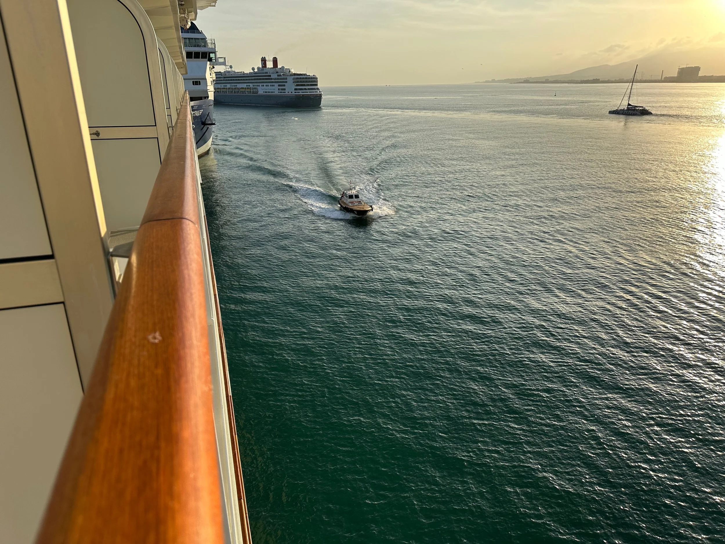Departure from Tangier happened precisely at 6pm just as the sun was starting to set. By the time we were at dinner it was dark, and the ship was already well into the mouth of the Strait of Gibraltar. Next stop, Malaga in southern Spain.