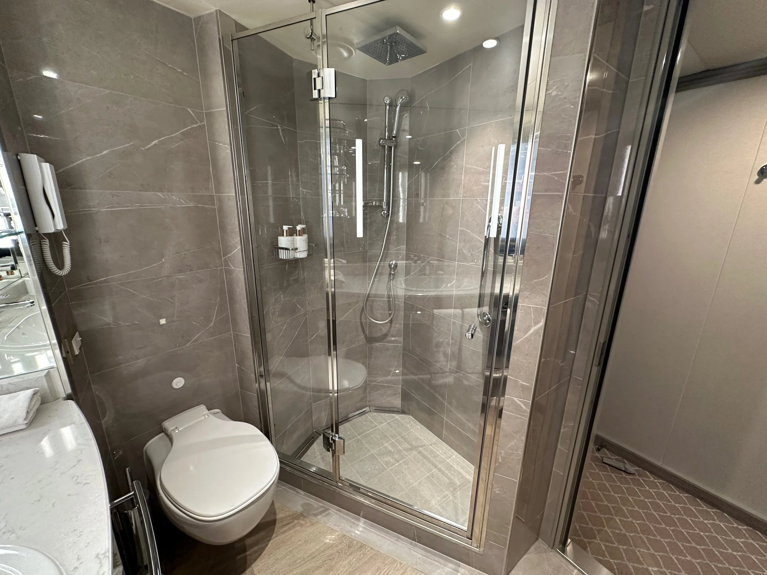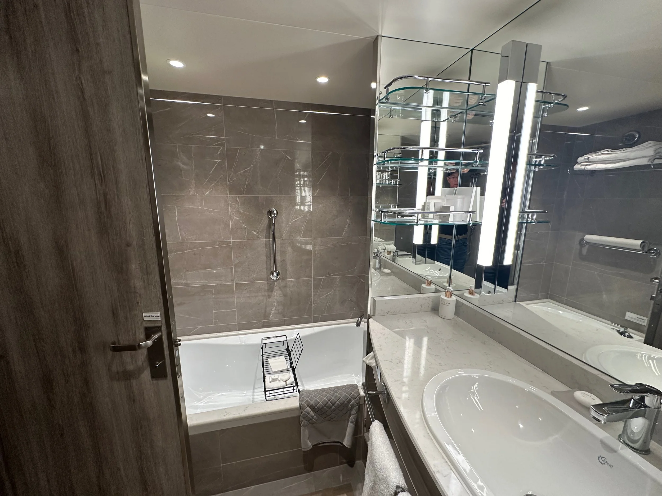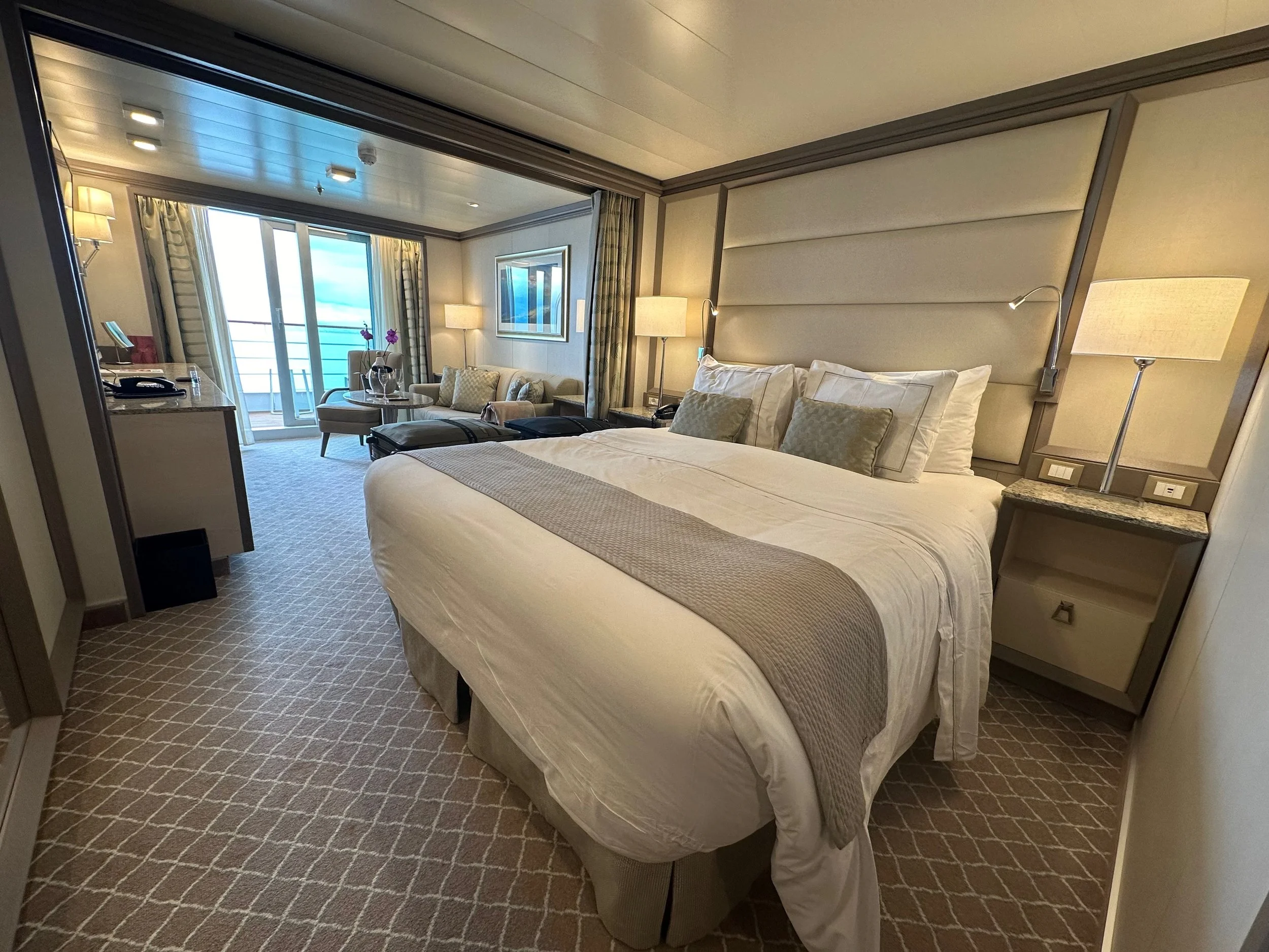 At the cruise terminal it was much like the TSA at an airport where we took our luggage, carry-on and us through a security check where everything was scanned. One complete we were checked onto the ship by the crew taking our passports and presenting each of us with a personalized identity card that we would use to enter our rooms, as well as used when leaving the ship and returning. It’s all very efficient, but does take some time as there are nearly 600 guests to check in.