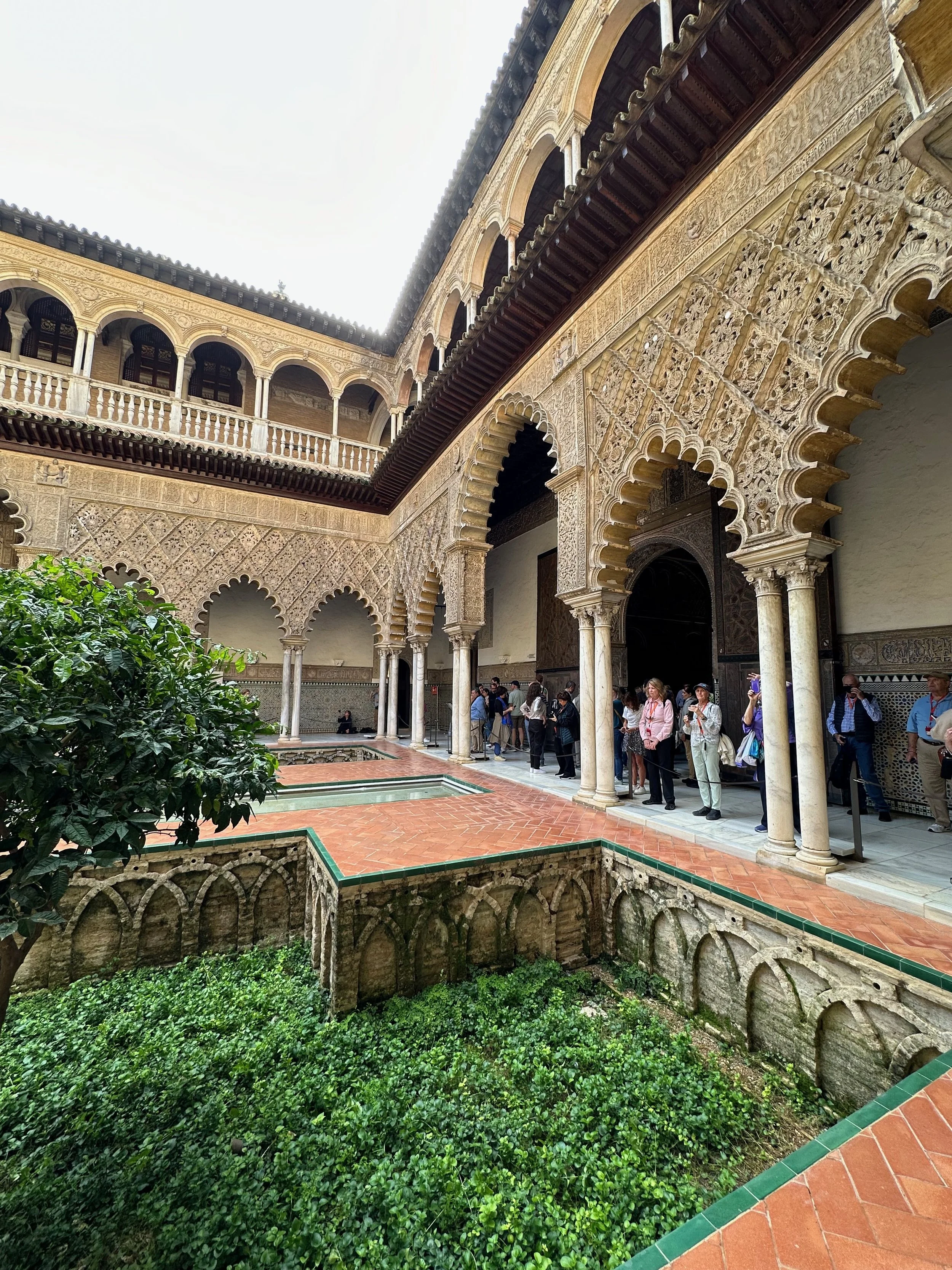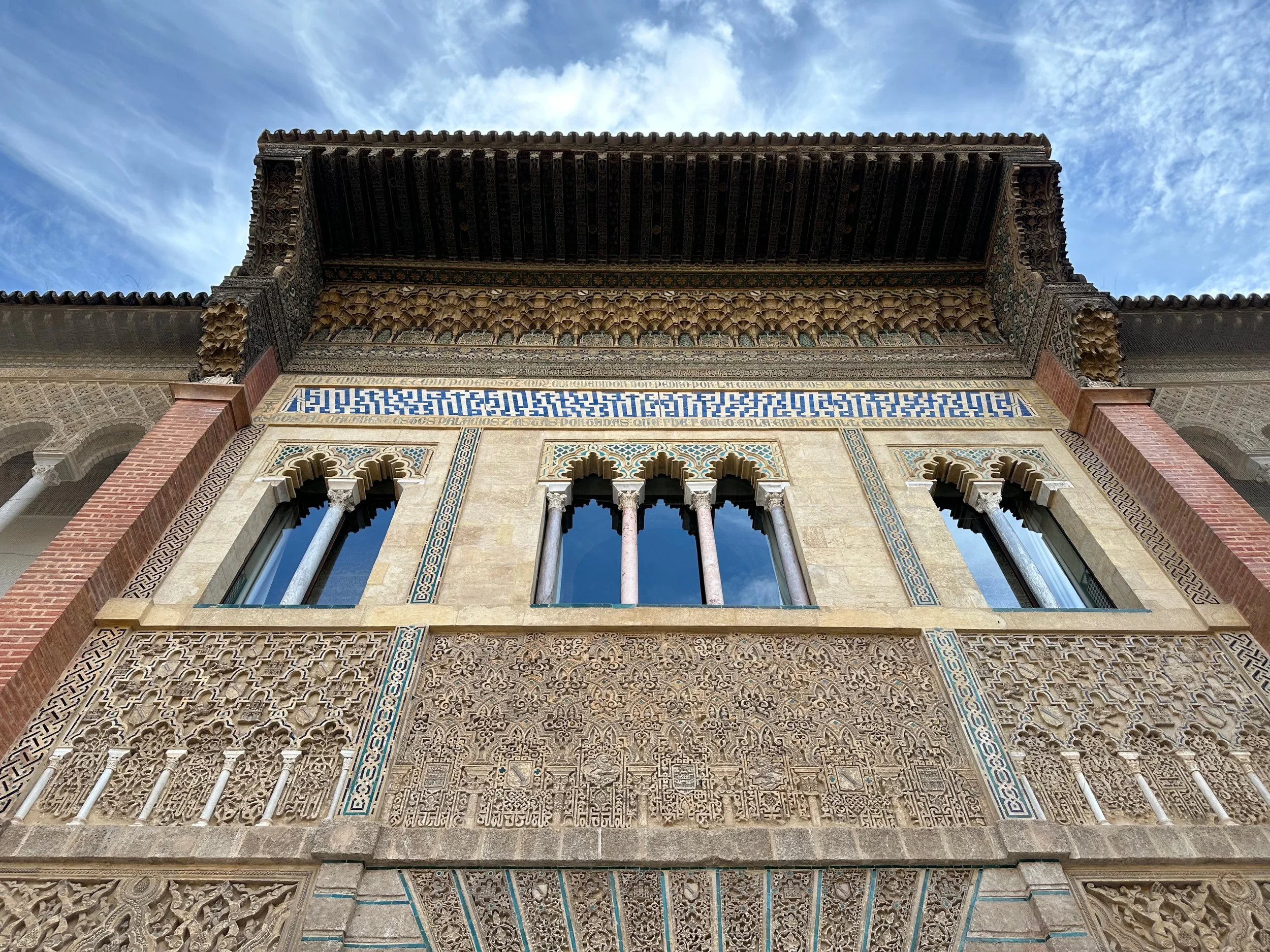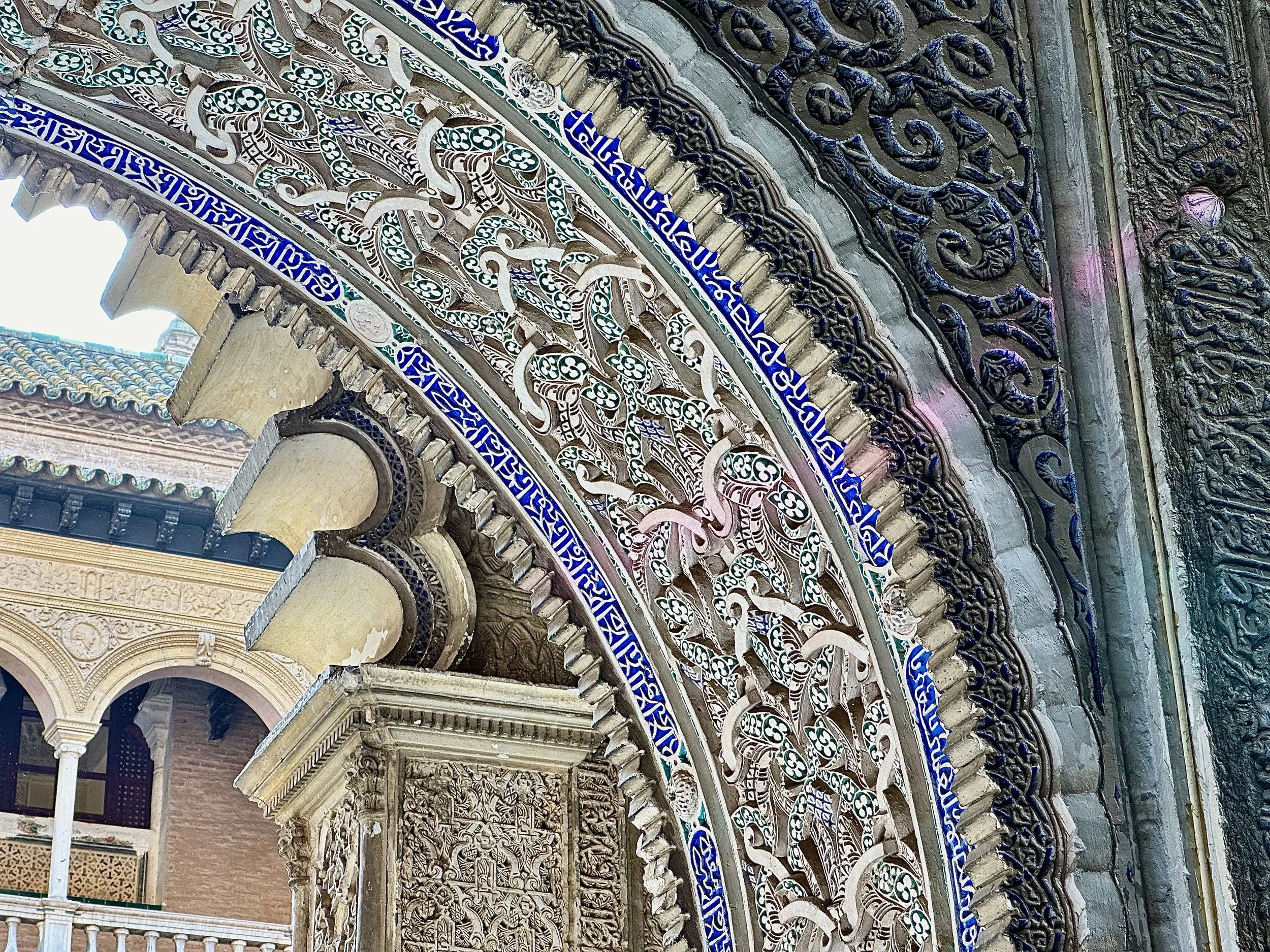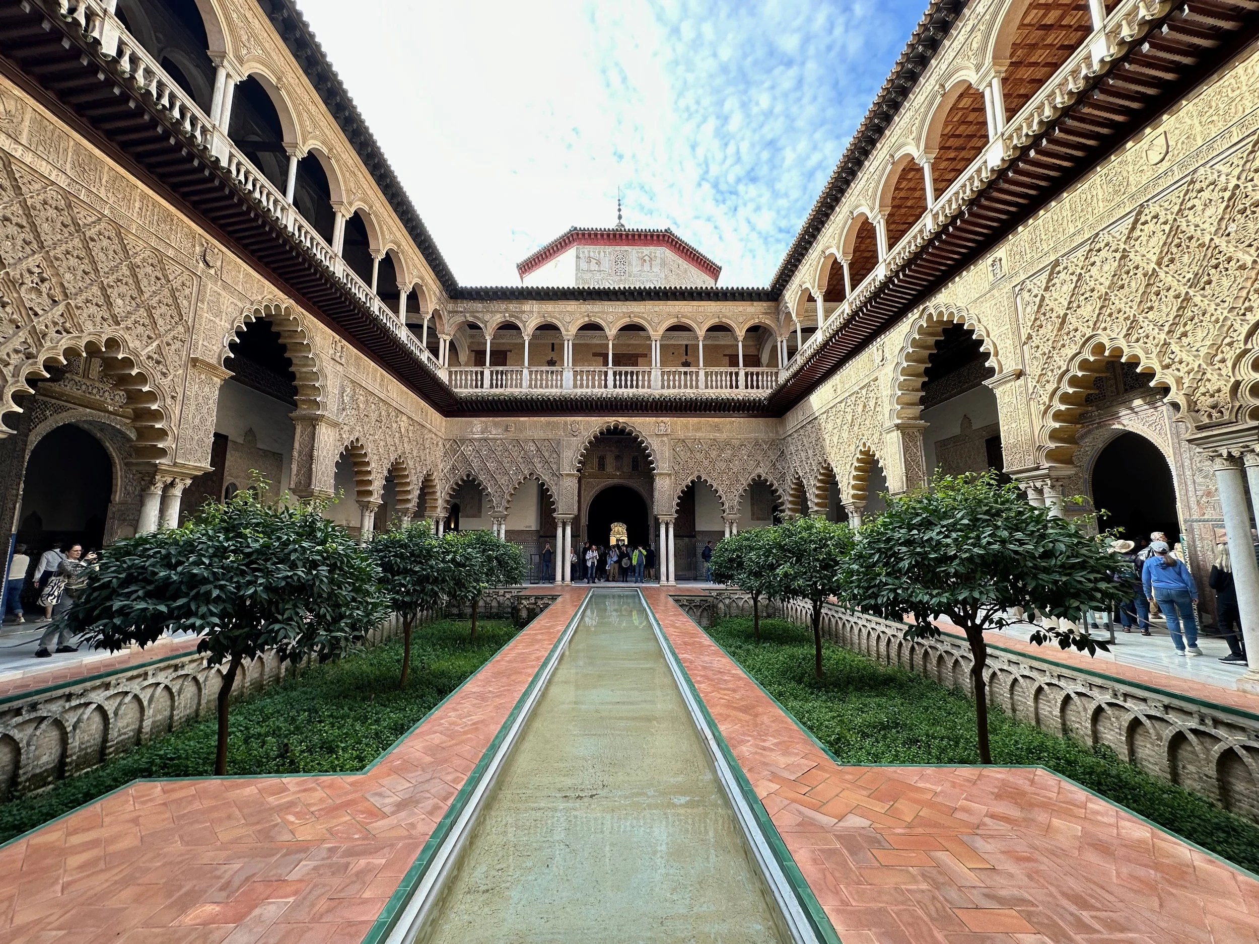 The first landmark for us was the Real Alcazar. It’s the historic royal palace in Seville and one of the official residences of the Spanish royal family. The site was first established in the 10th century during the Islamic era and served as a citadel of the city. Rebuilt numerous times during subsequent dynasties, its storied history can be seen in the different architecture, art and finishing designs present throughout the vast structure. The details achieved by the centuries old artisans seen in the following photos are stunning.