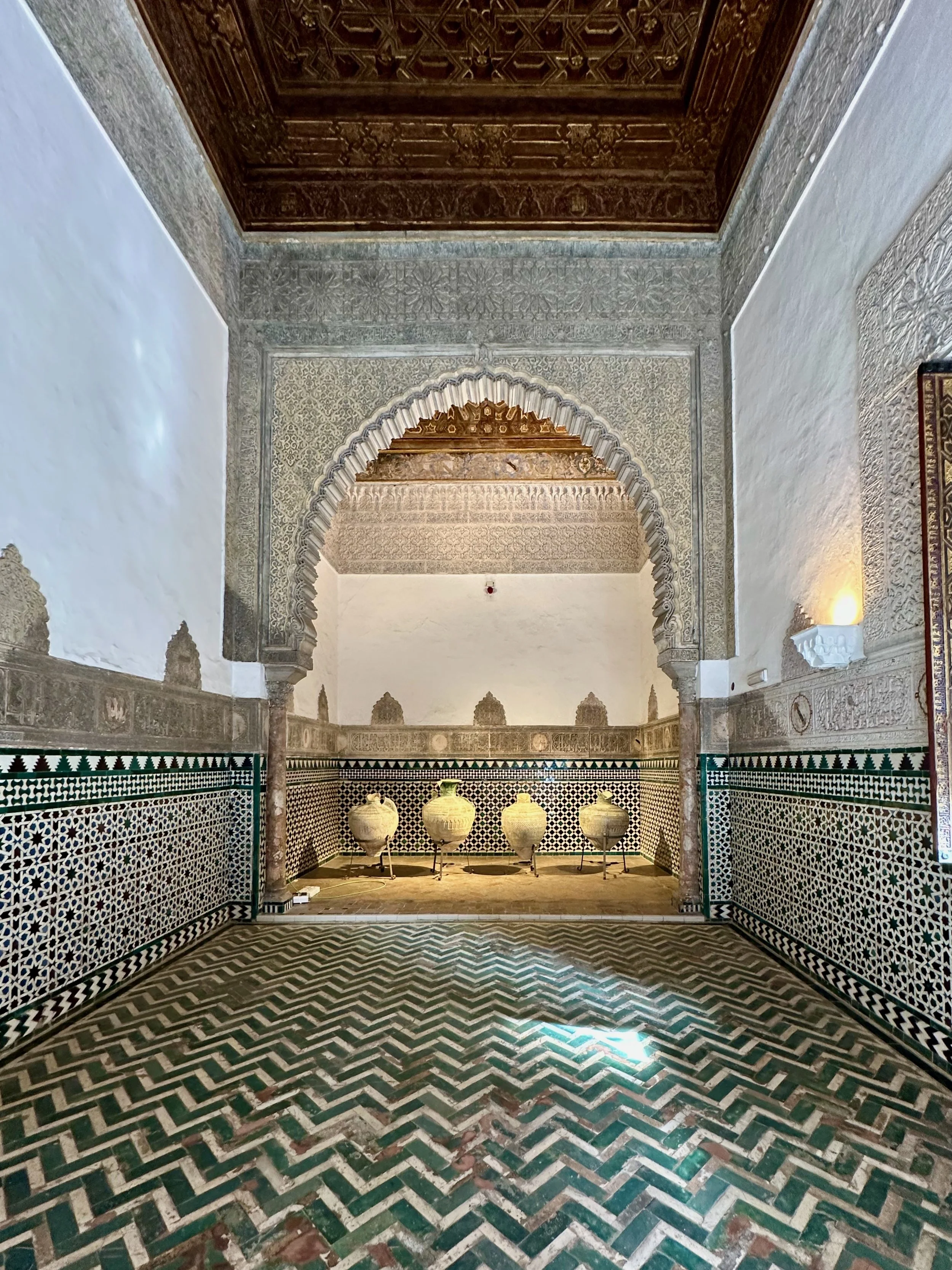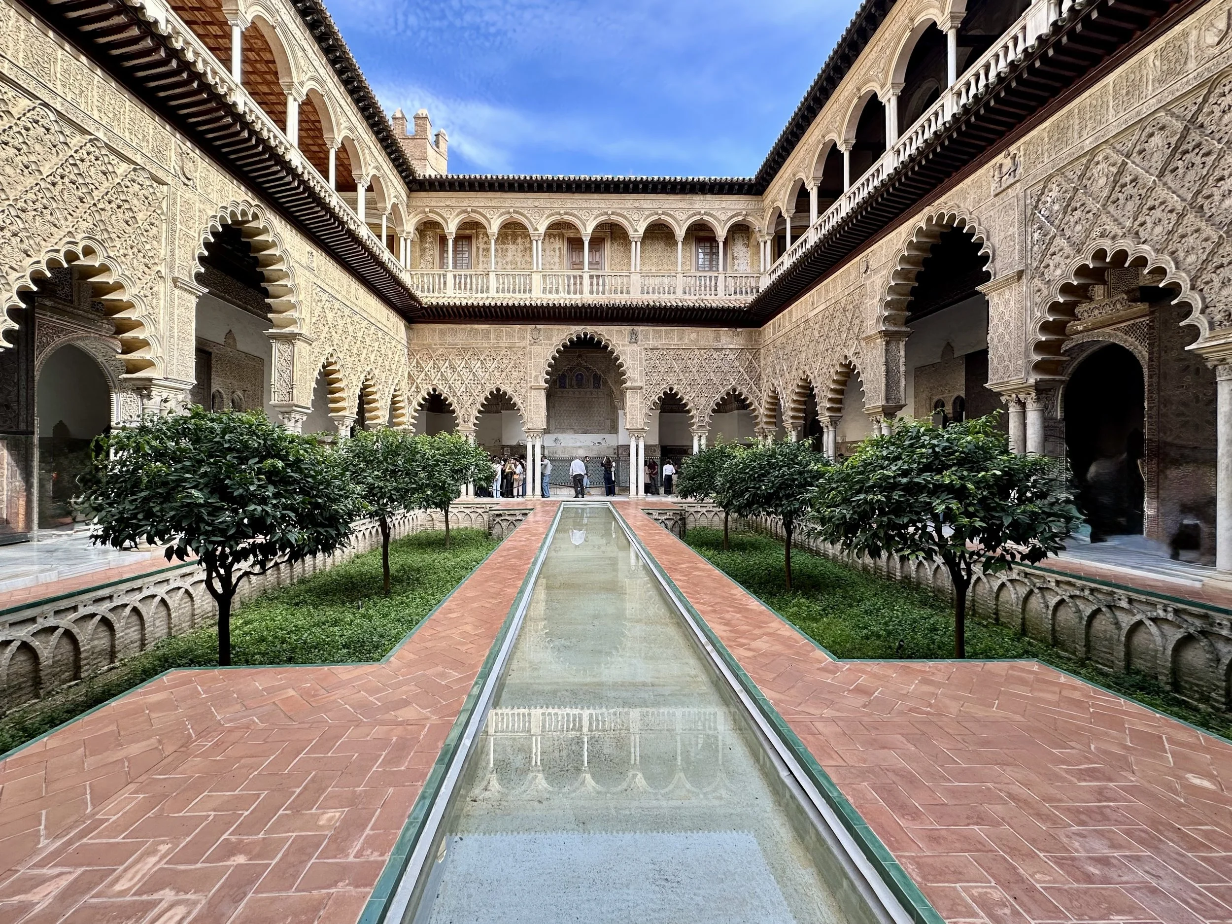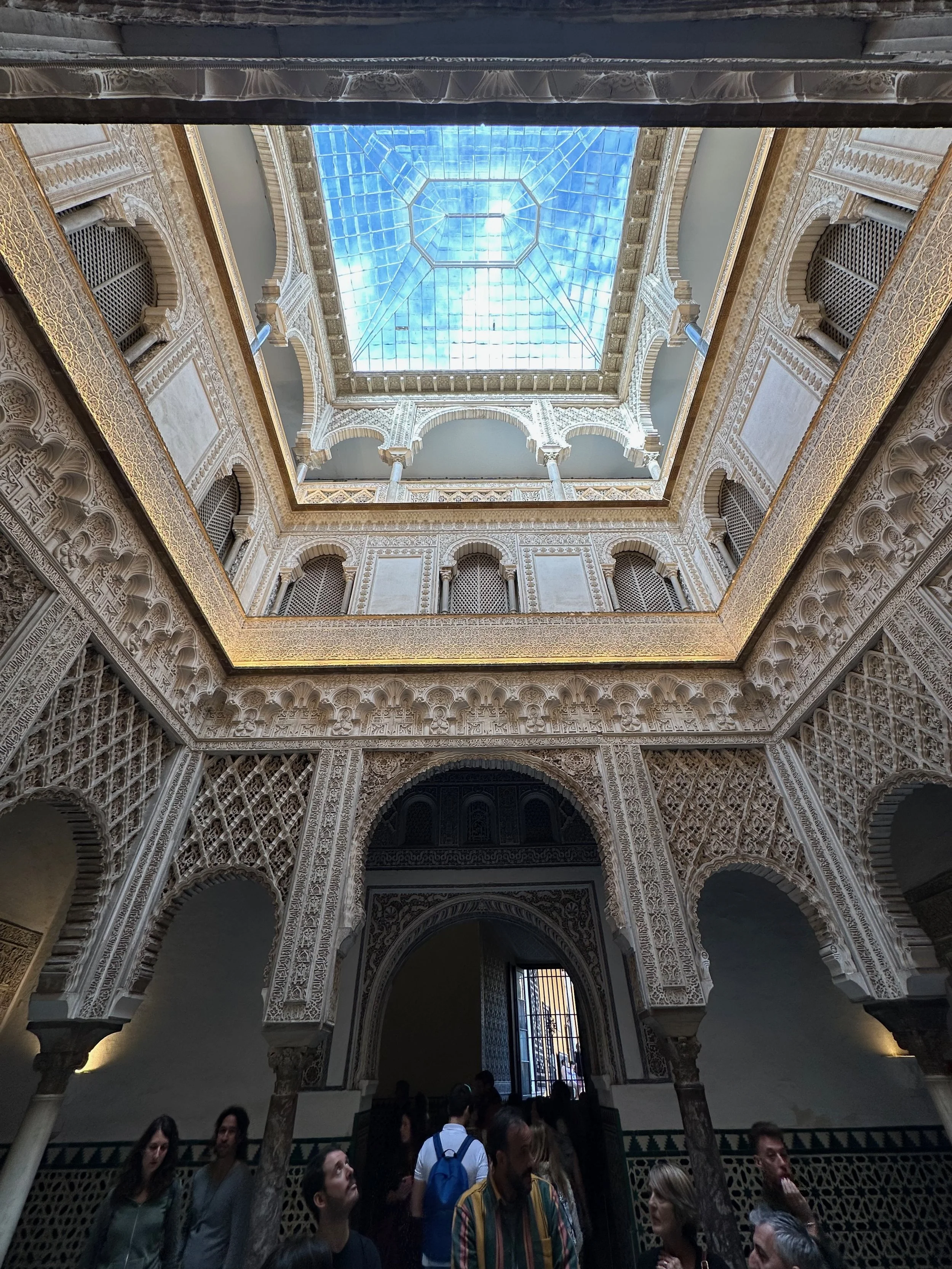 The first landmark for us was the Real Alcazar. It’s the historic royal palace in Seville and one of the official residences of the Spanish royal family. The site was first established in the 10th century during the Islamic era and served as a citadel of the city. Rebuilt numerous times during subsequent dynasties, its storied history can be seen in the different architecture, art and finishing designs present throughout the vast structure. The details achieved by the centuries old artisans seen in the following photos are stunning.