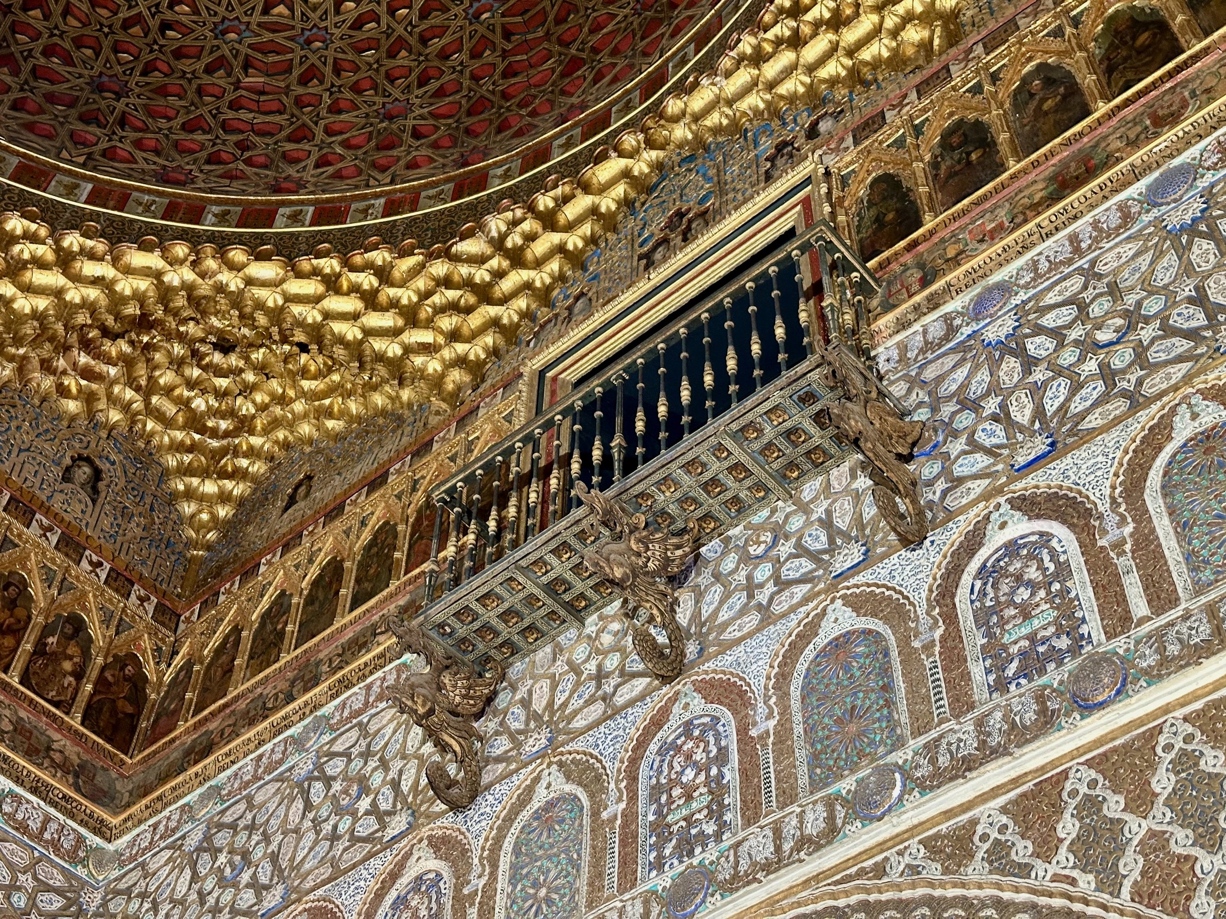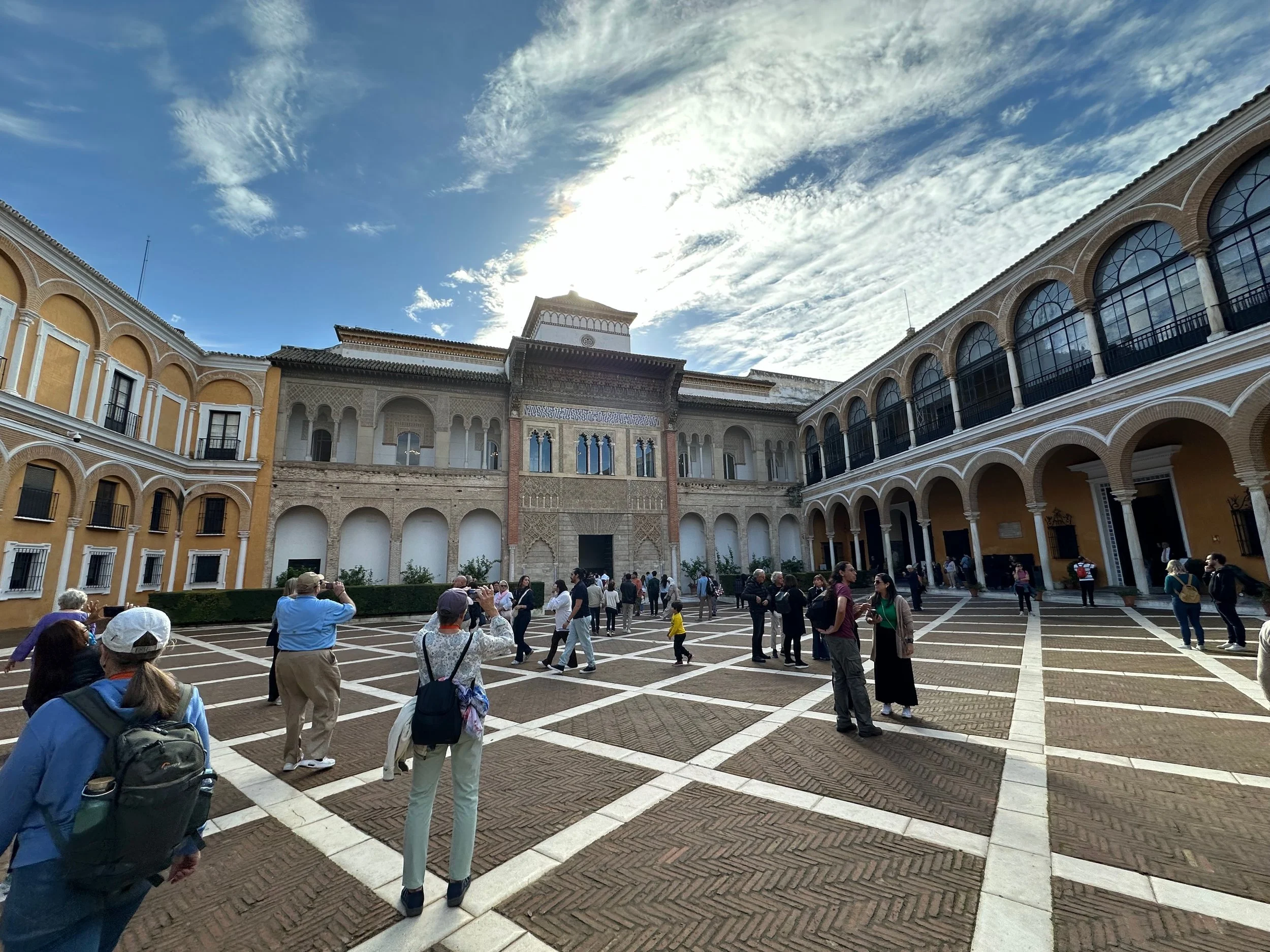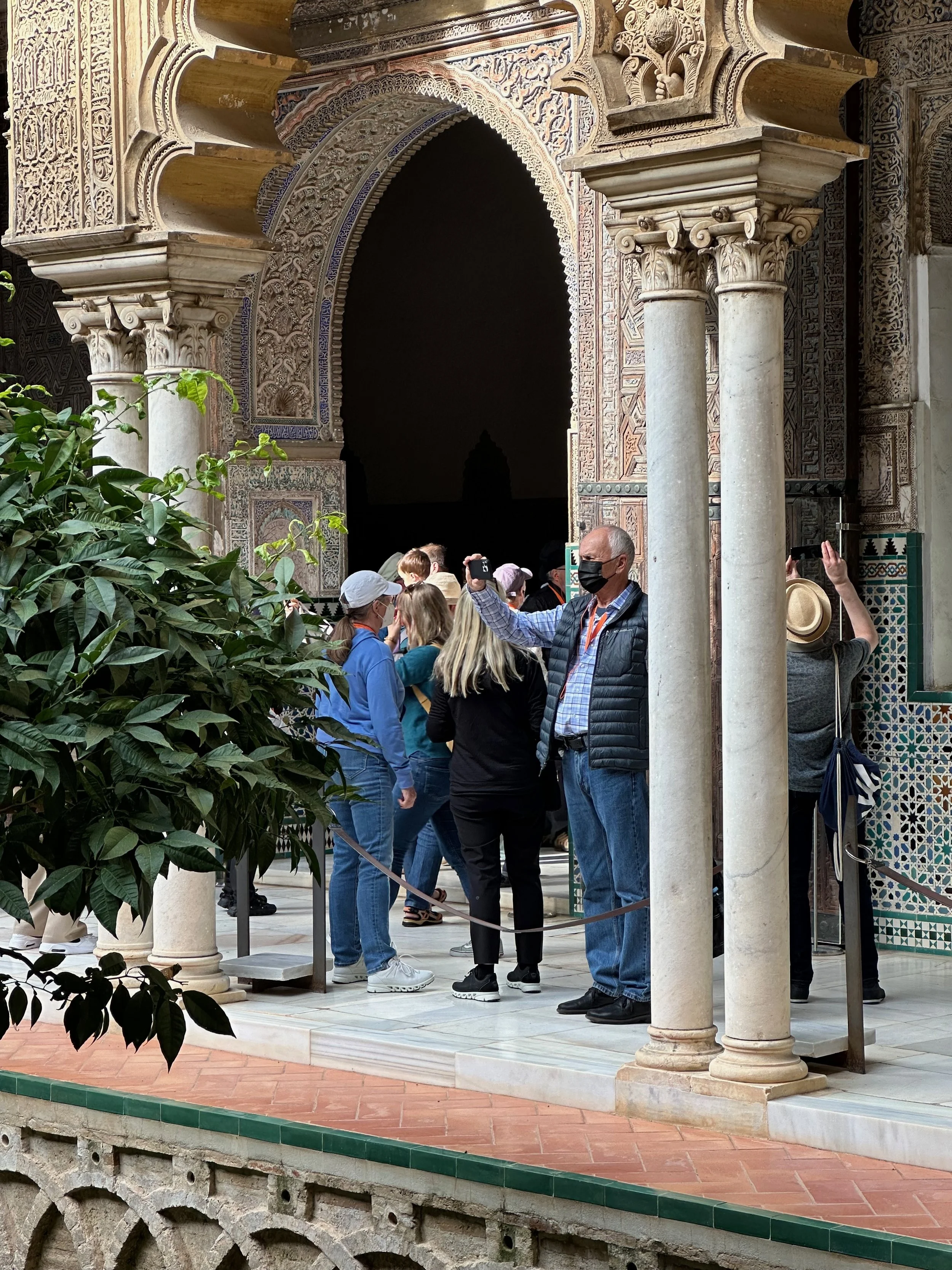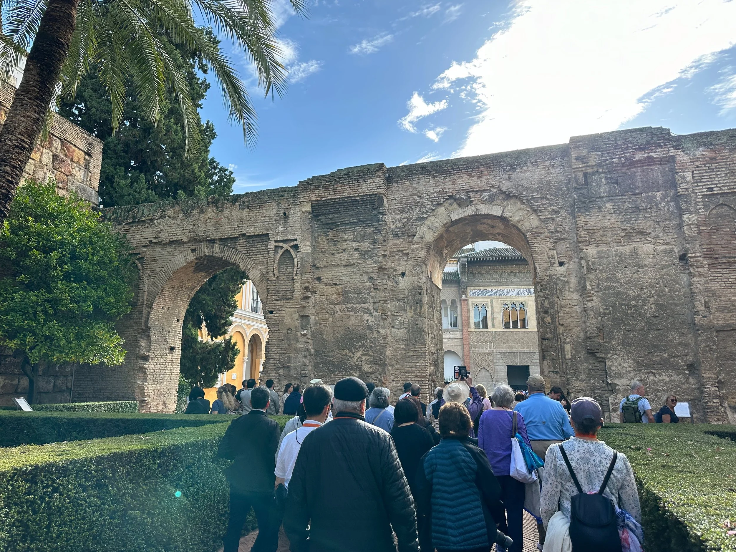 The first landmark for us was the Real Alcazar. It’s the historic royal palace in Seville and one of the official residences of the Spanish royal family. The site was first established in the 10th century during the Islamic era and served as a citadel of the city. Rebuilt numerous times during subsequent dynasties, its storied history can be seen in the different architecture, art and finishing designs present throughout the vast structure. The details achieved by the centuries old artisans seen in the following photos are stunning.