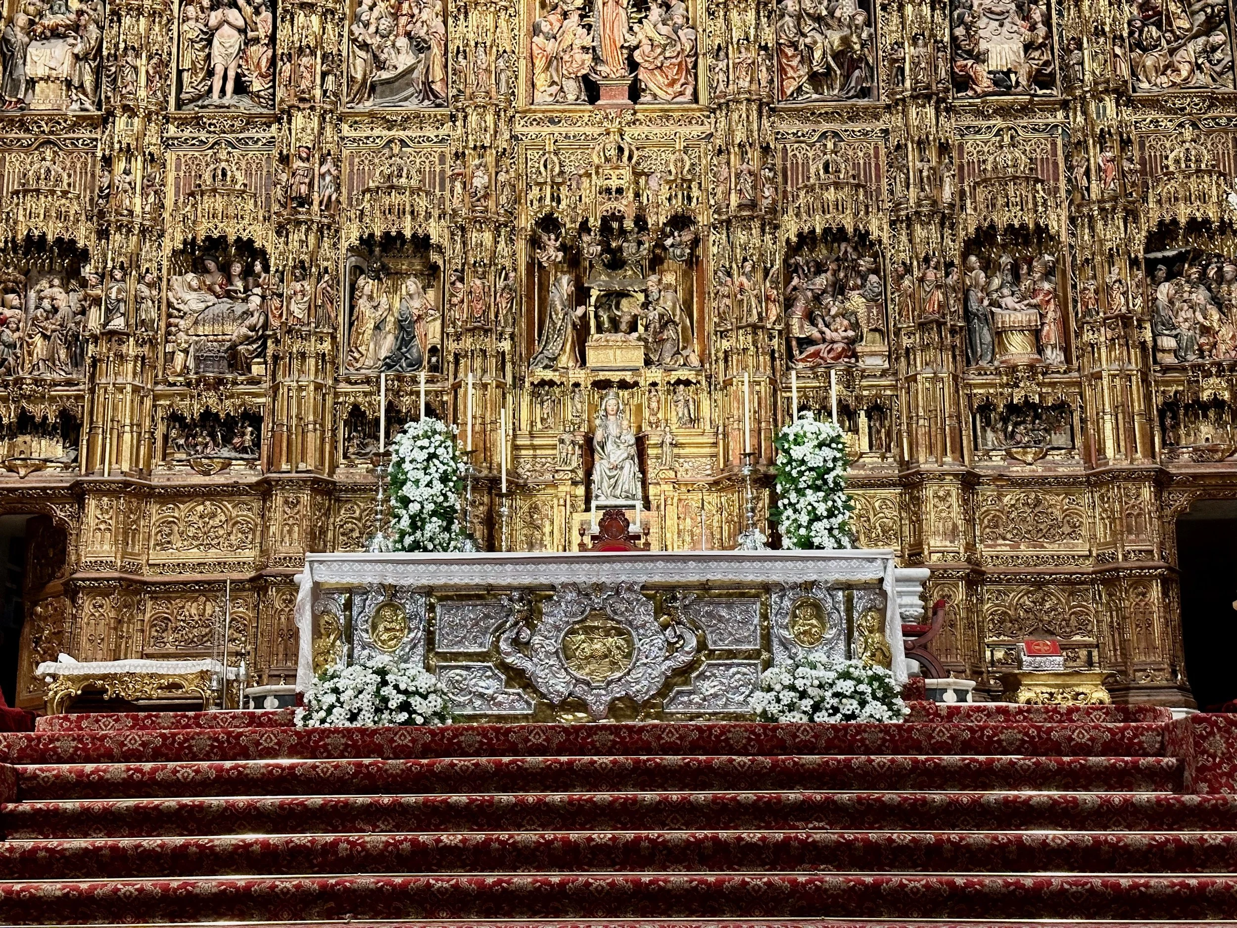 Once the back doors to the cathedral were opened, all of us that had been standing for an hour outside were finally able to file in. Yes, the wait was worth it for the unbelievable extravagance of wealth that had been spent inside the cathedral, money that we’re sure could have gone to better use in helping the poor living in the region. But no, the funds had to be spend for the glory of God. That, or the egos of those high up in the echelons of the religion. The following photos speak for themselves. All we can say is…wow!