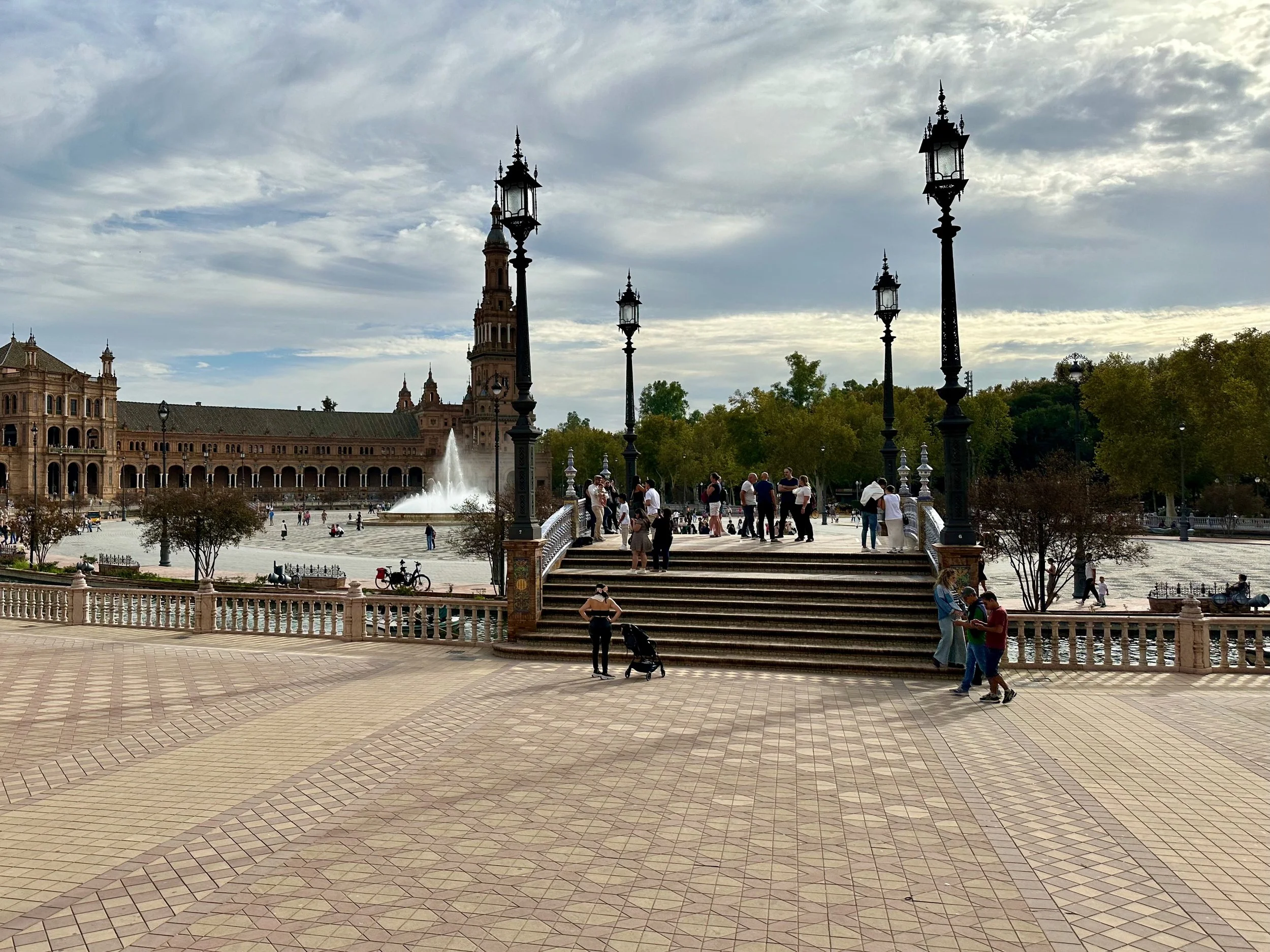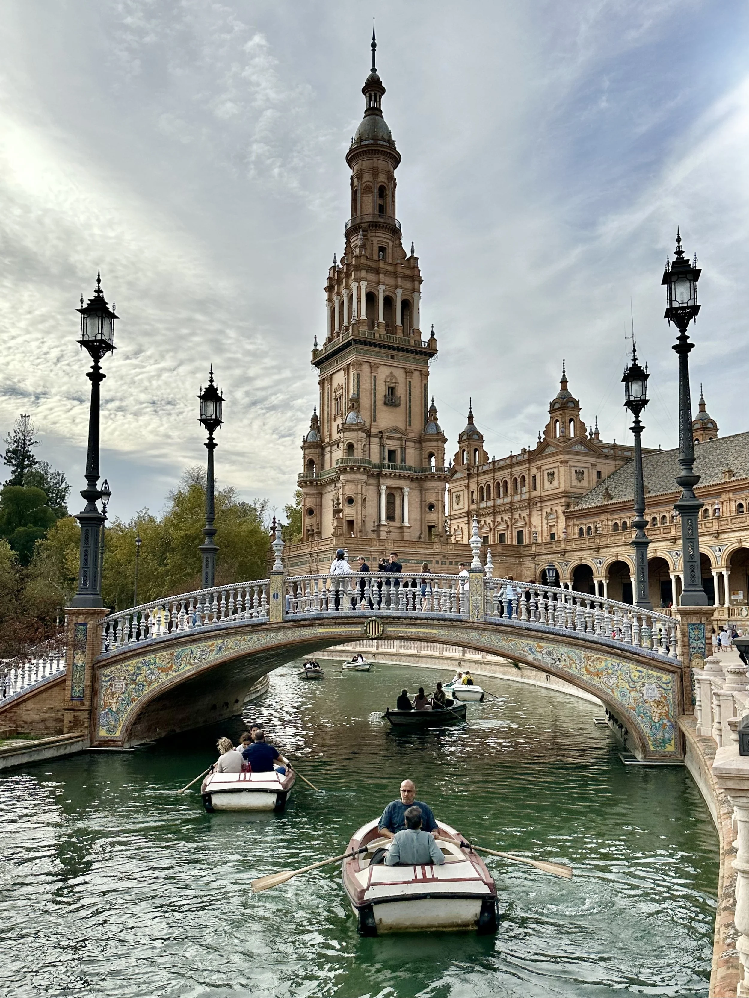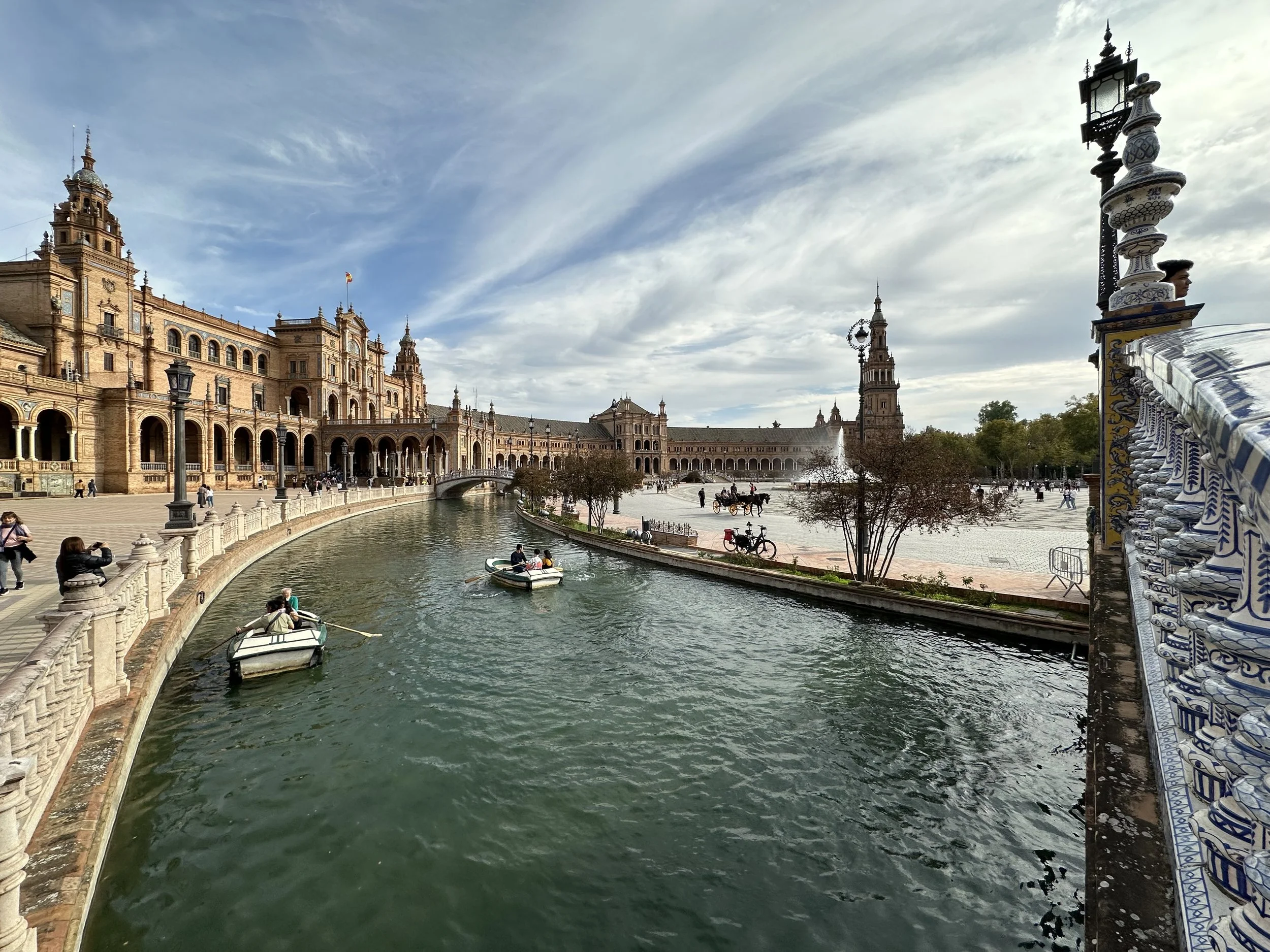 The last stop for the day was at the Plaza de España, a venue of several buildings designed and built in and around the Maria-Luisa Park for the Ibero-American exhibition of 1929. As with many European designs, the structures surround a giant courtyard which includes fountains and a waterway where you can actually rent a boat to paddle around the central courtyard island. This event would have been something like Vancouver’s Expo86.
