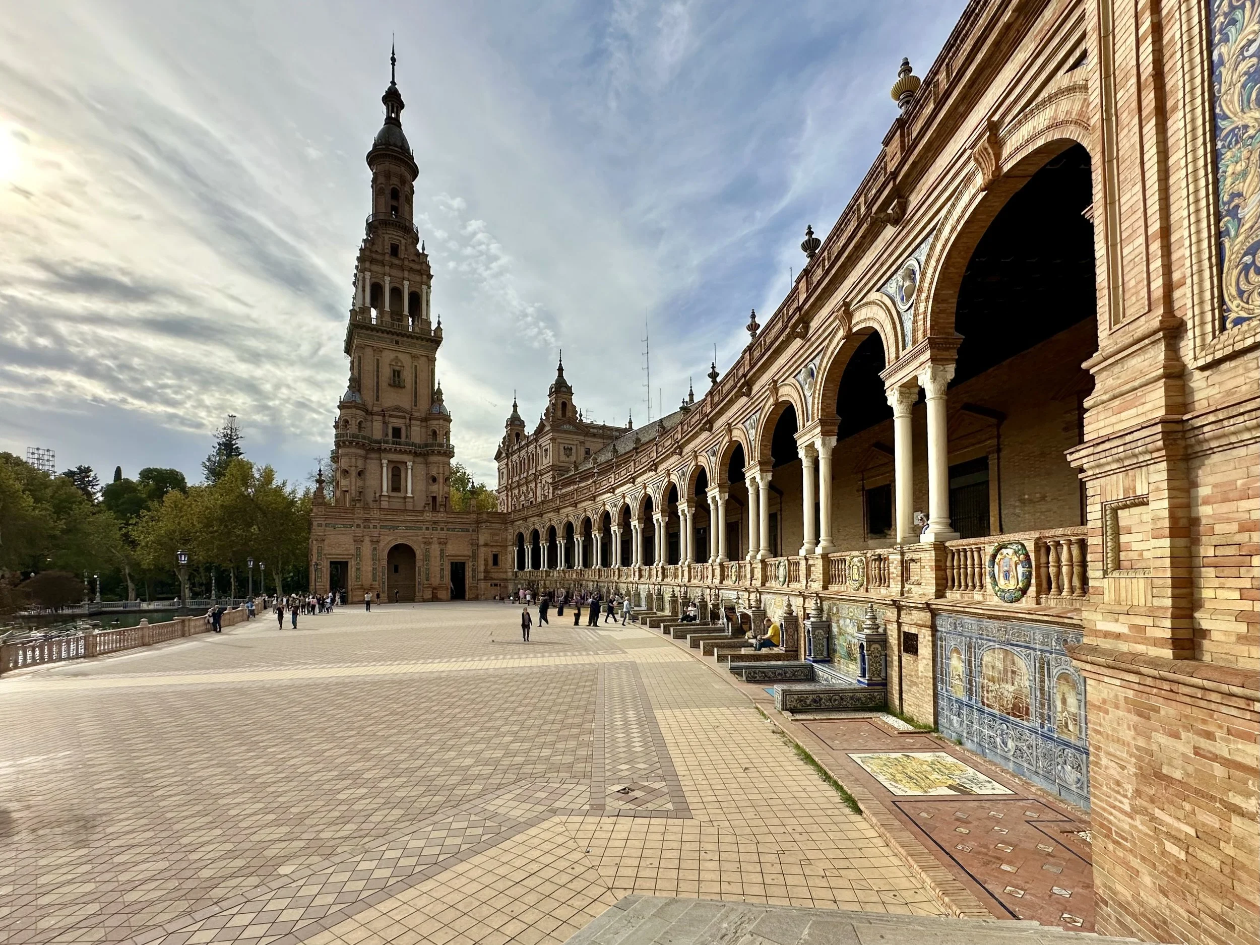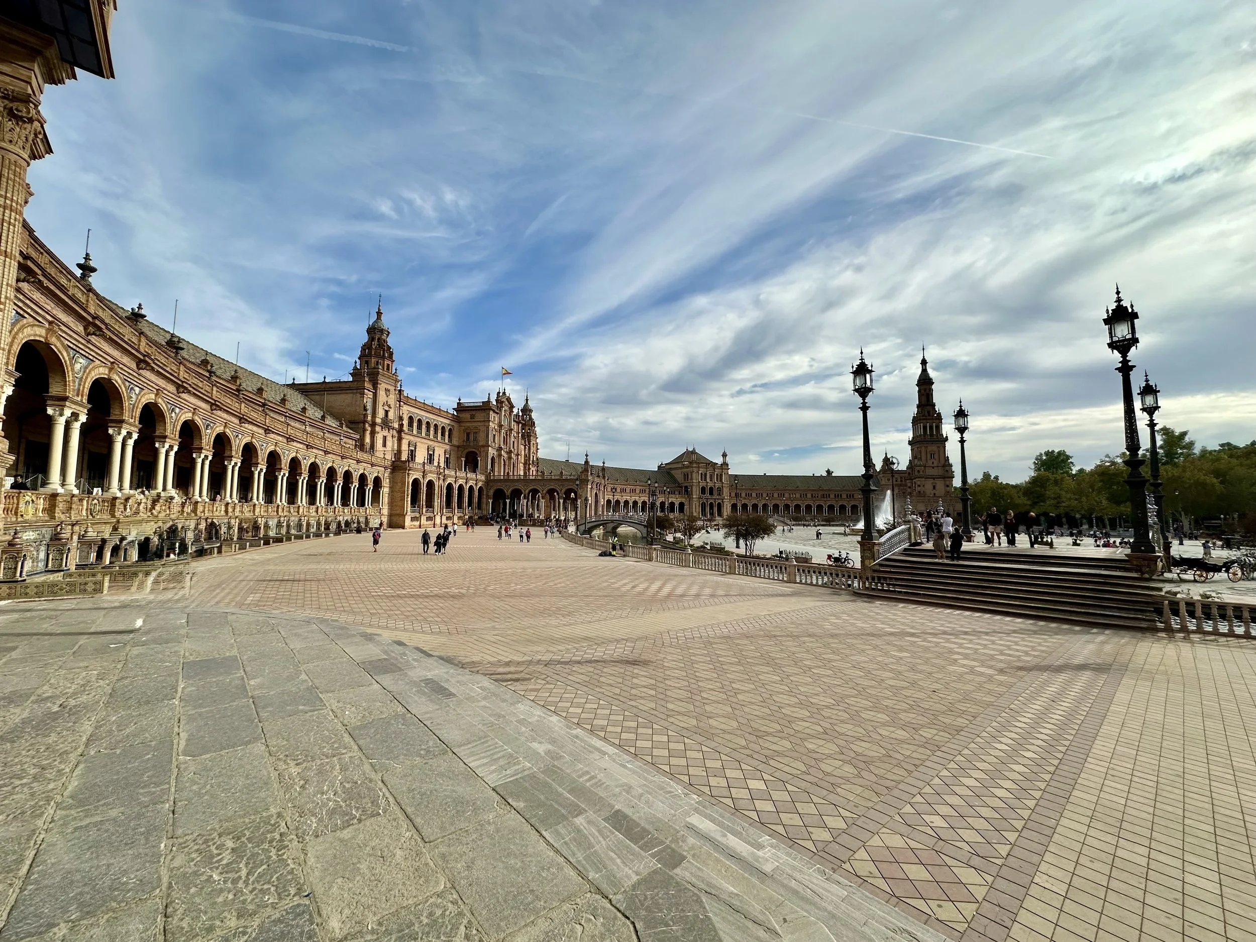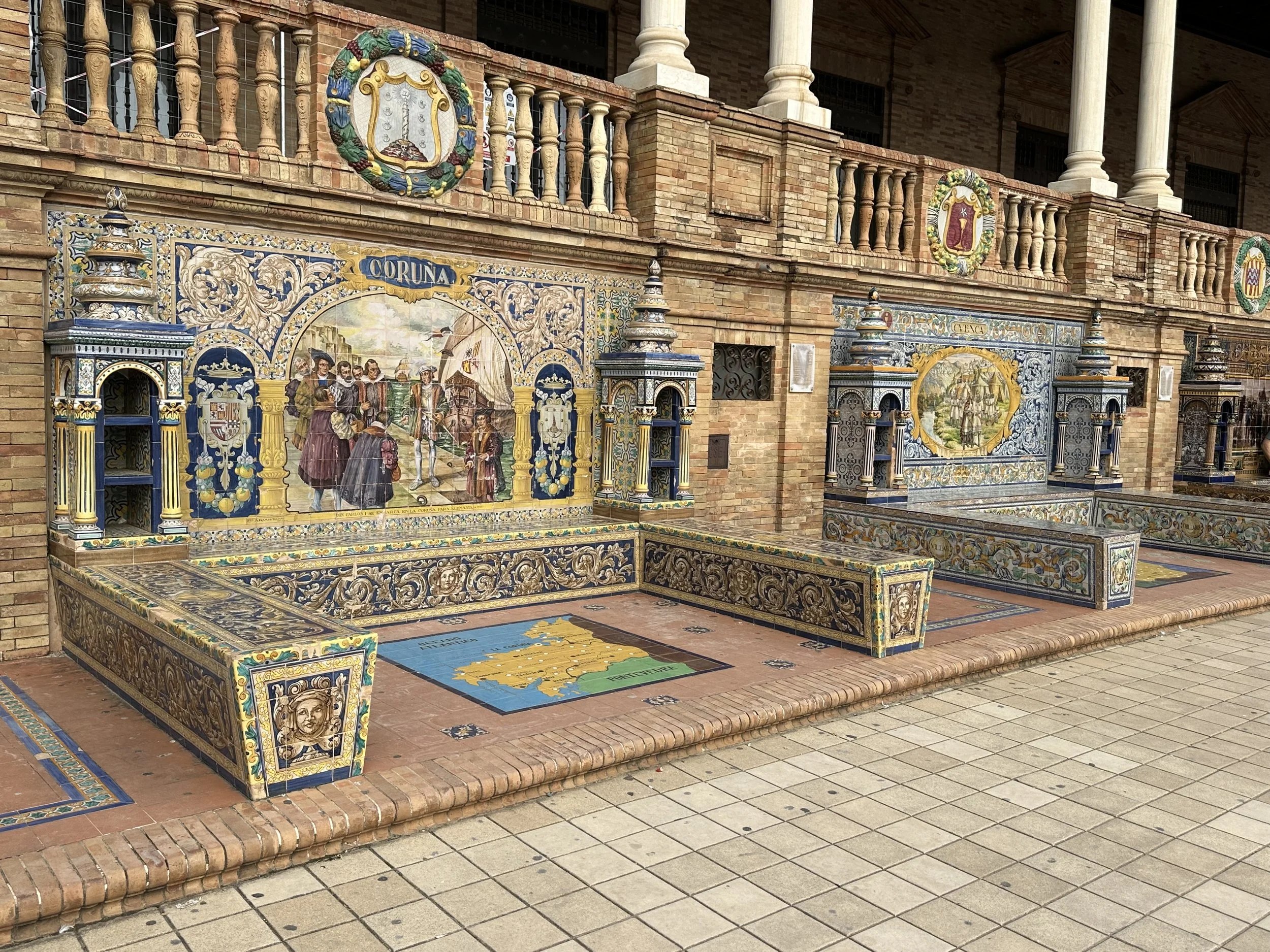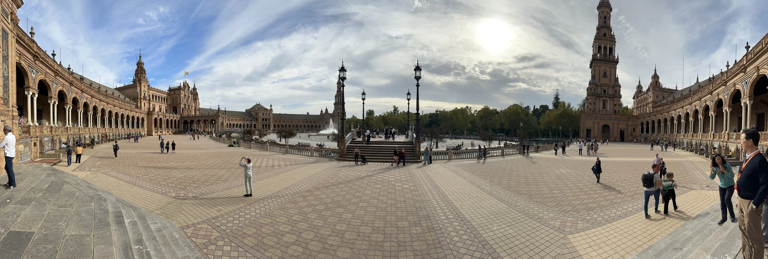 The last stop for the day was at the Plaza de España, a venue of several buildings designed and built in and around the Maria-Luisa Park for the Ibero-American exhibition of 1929. As with many European designs, the structures surround a giant courtyard which includes fountains and a waterway where you can actually rent a boat to paddle around the central courtyard island. This event would have been something like Vancouver’s Expo86.