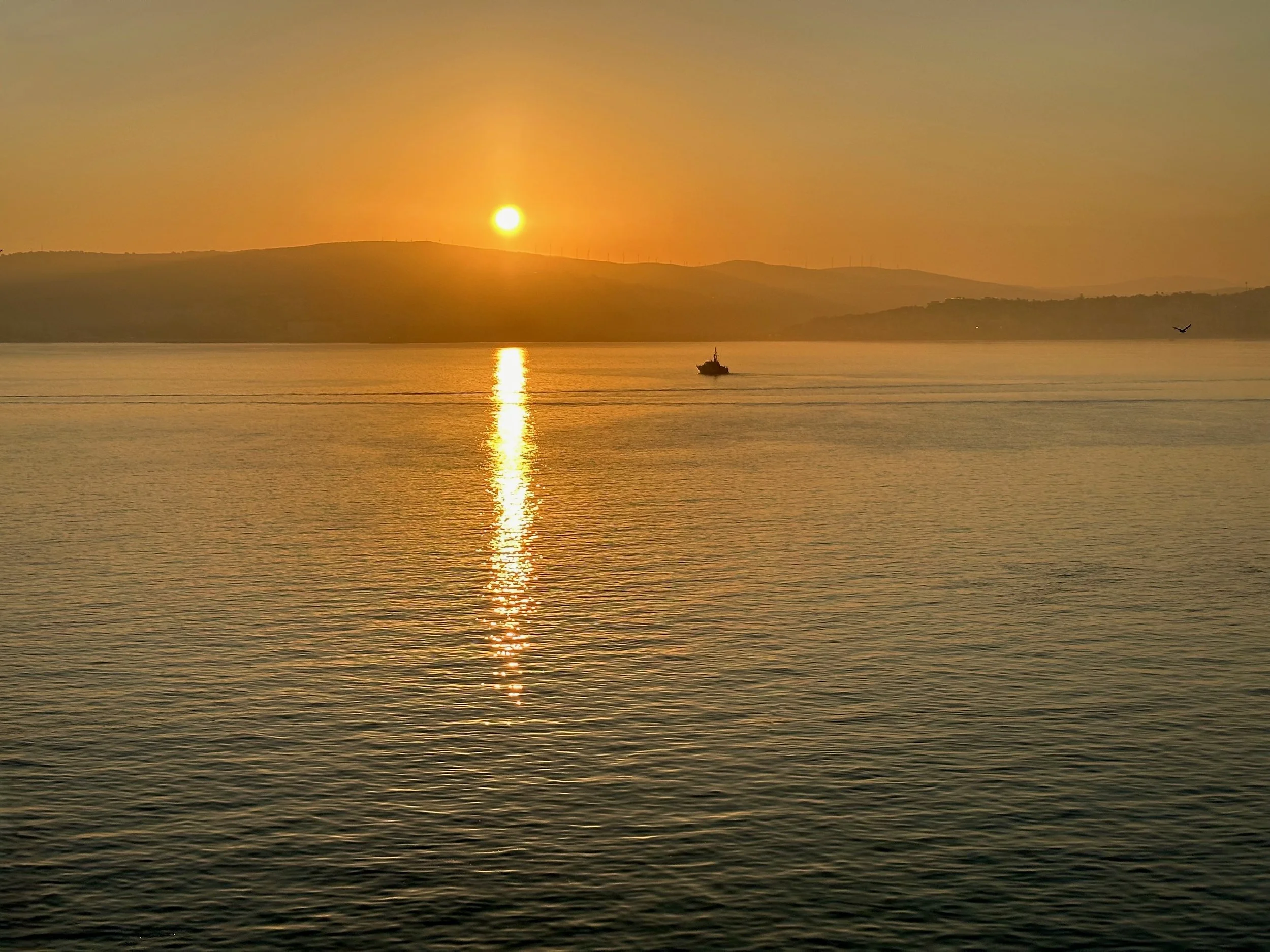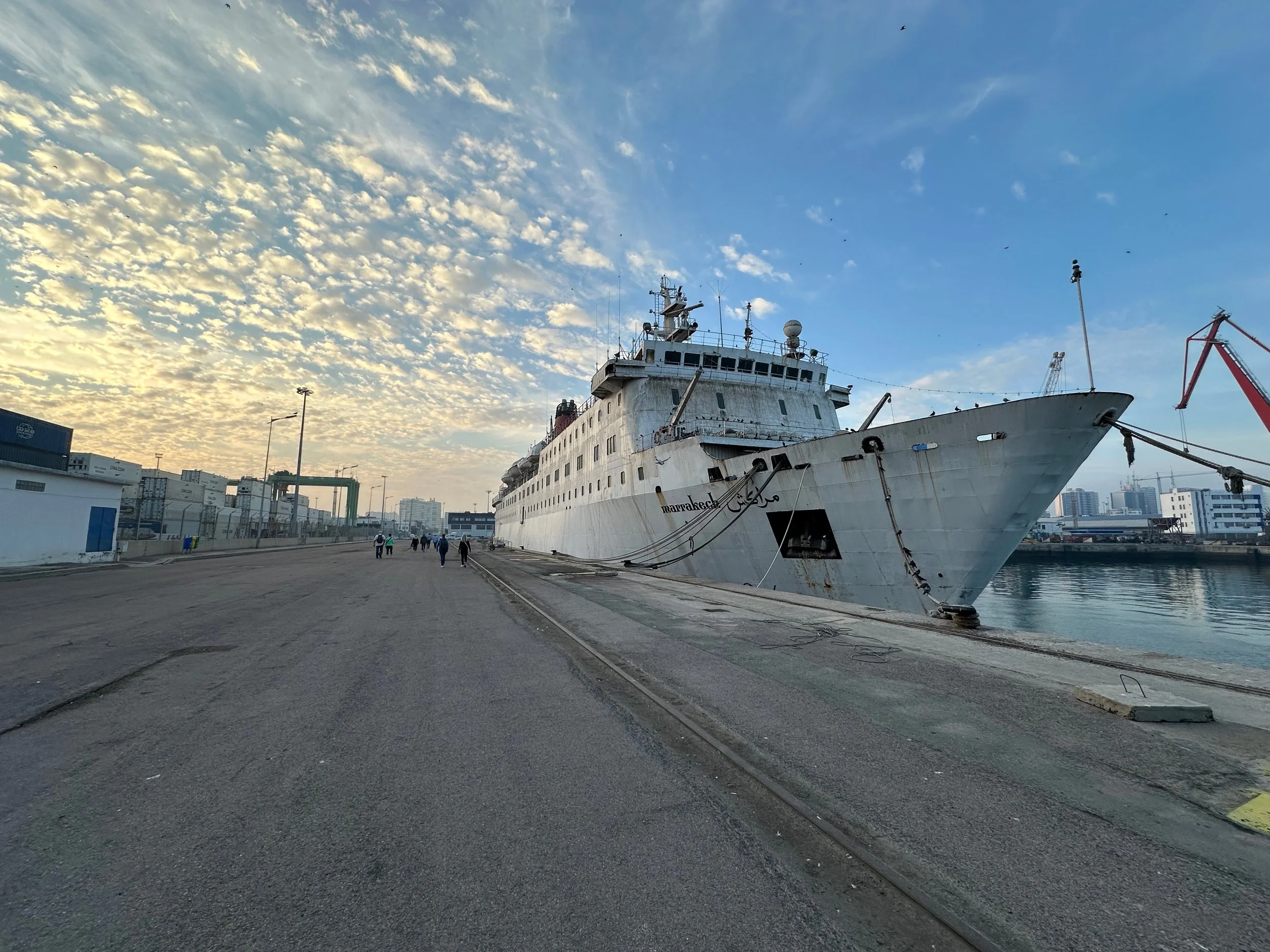Entering the Tangier harbour with the eight o’clock sunrise.