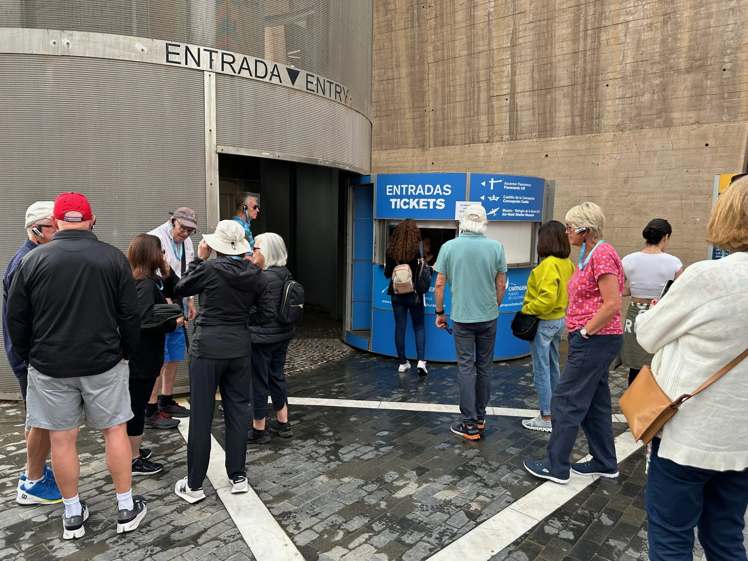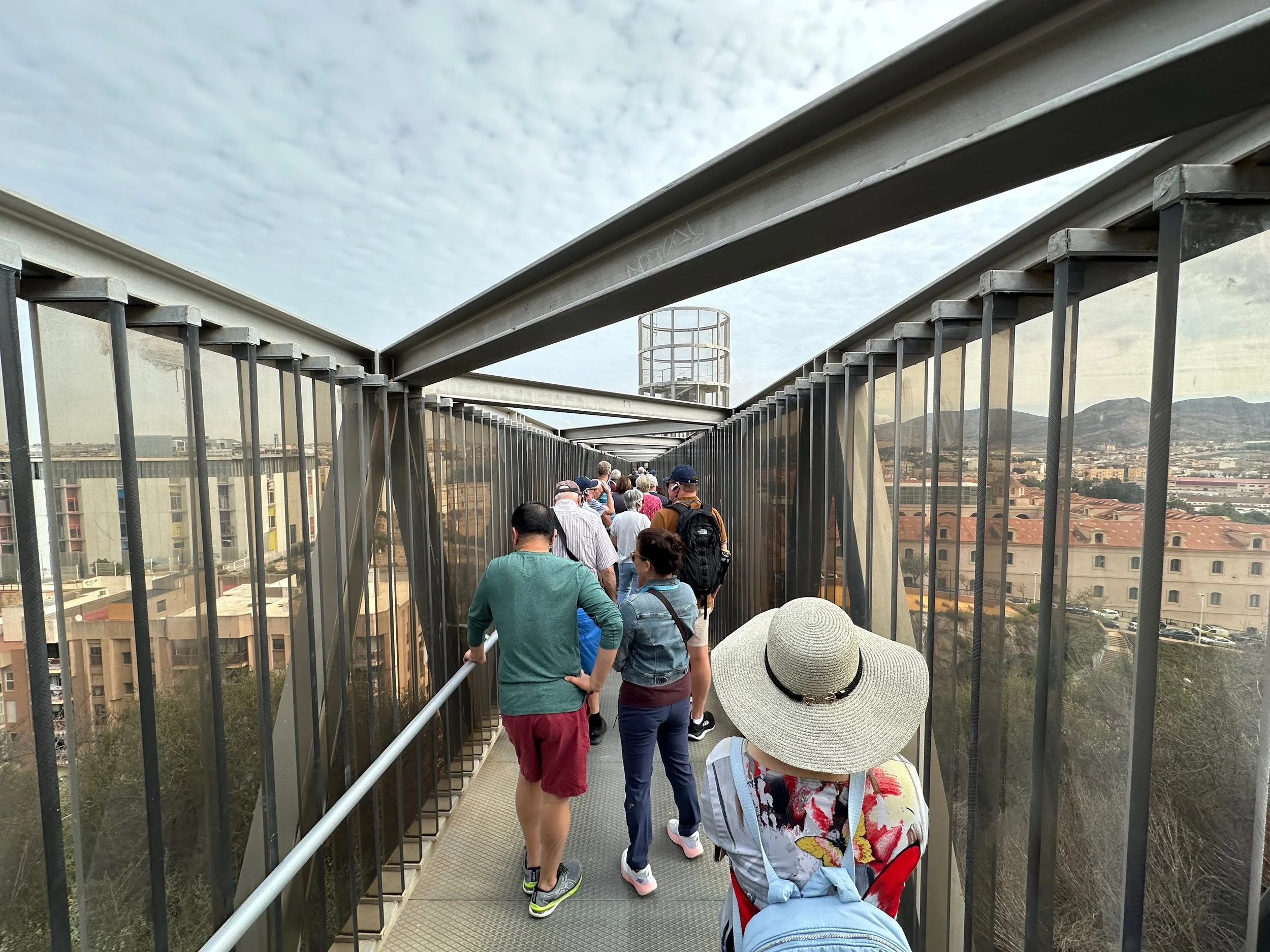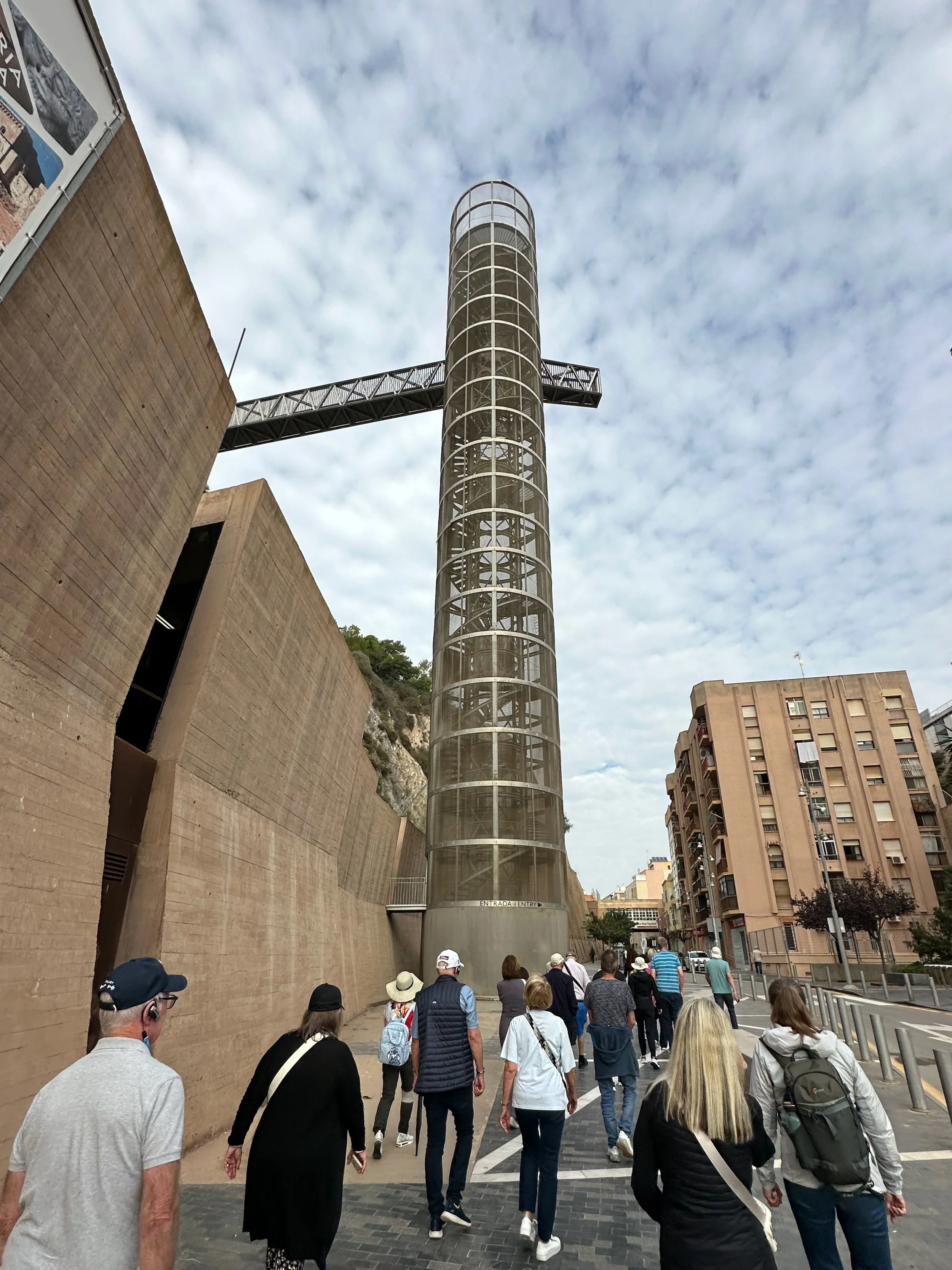 Coming back out of the shelter museum we waited in turn to enter the lift that would take us up onto the top of the mountain where our next stop in the excursion took place. Since the elevator was a tall freestanding, transparent cylinder, the top of which being connected to the hillside via a steel gantry, it would not be a place for those bothered by heights.