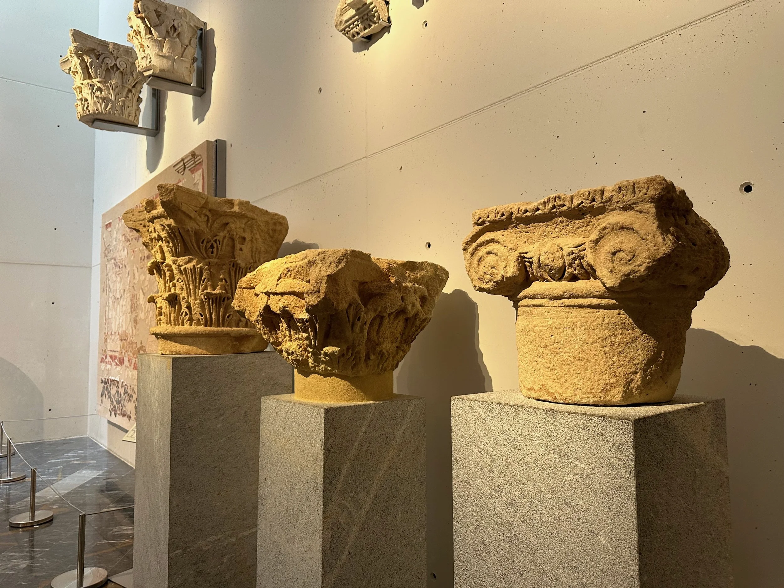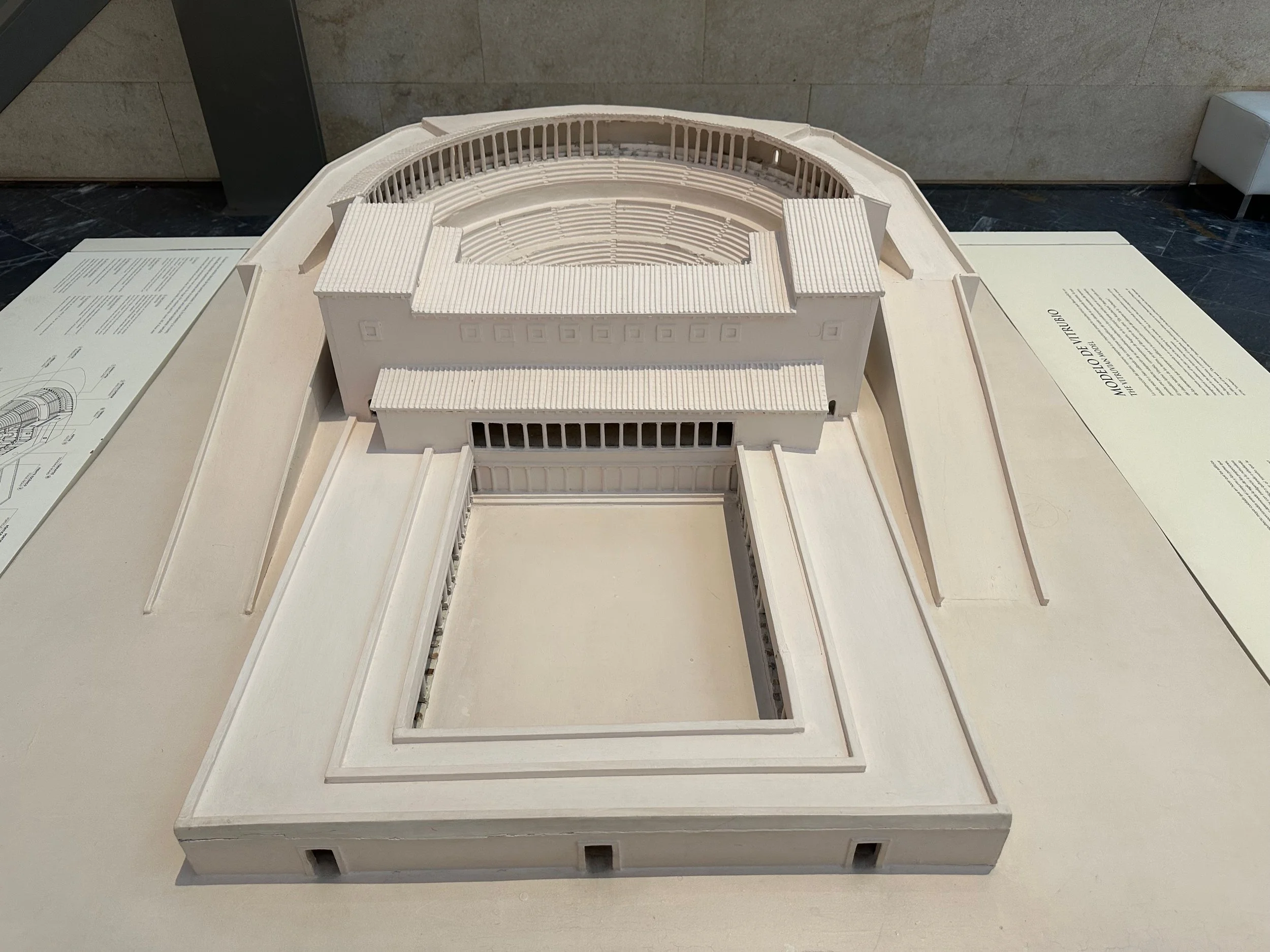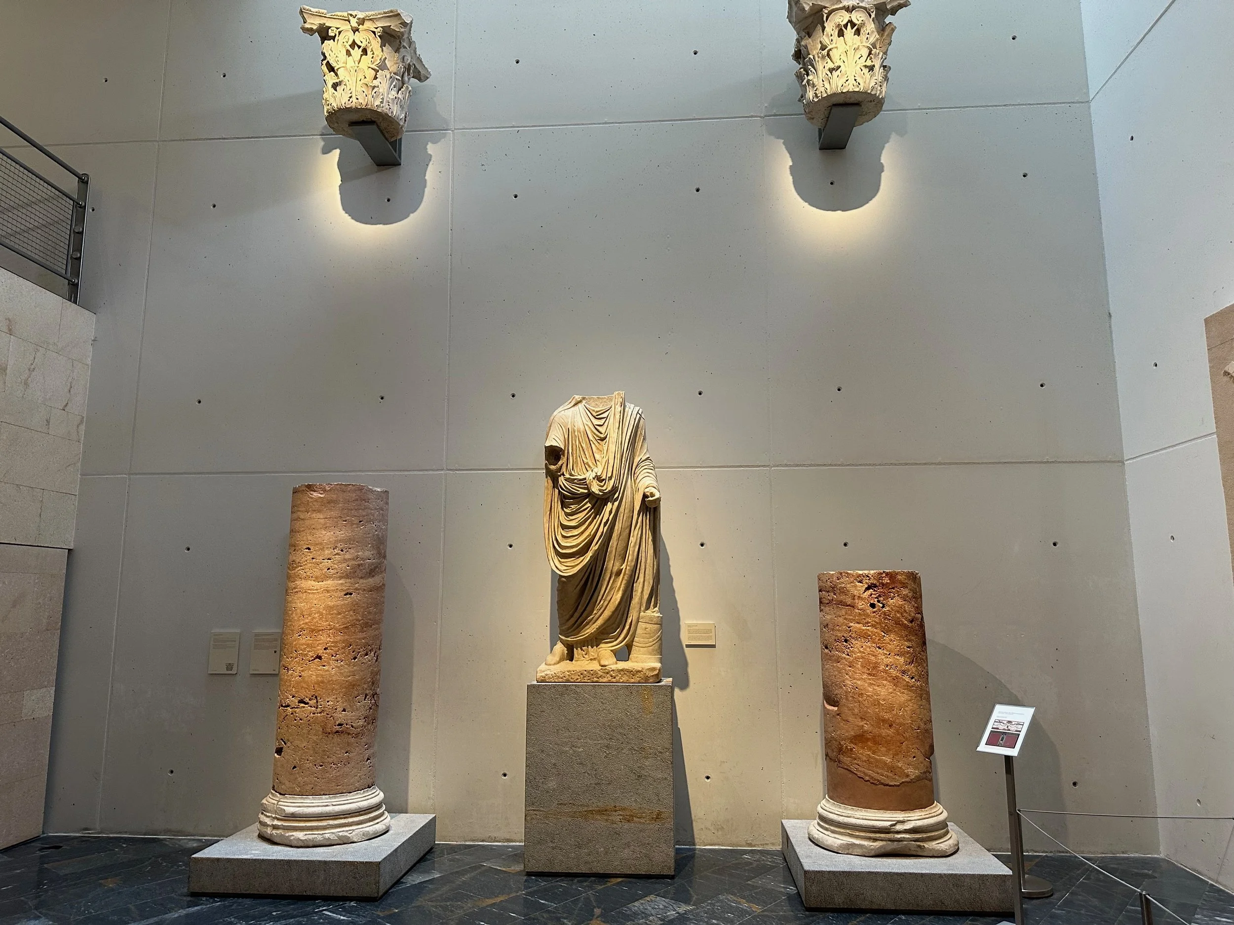 With our investigation of the castle top complete, we made our way back to the cylindrical elevator for our return to ground level and the waiting bus. Unfortunately there was no several busloads of people all trying to do the same thing, and we had to wait for what felt like an hour to all of us down, eight people at a time. We would have been faster had we just walked down the road that allowed cars up onto the mountain. Once down and on the bus we were taken to the centre of town for the last stop which was a museum and ruin of an ancient amphitheatre. The first of two we’d see on this trip.
