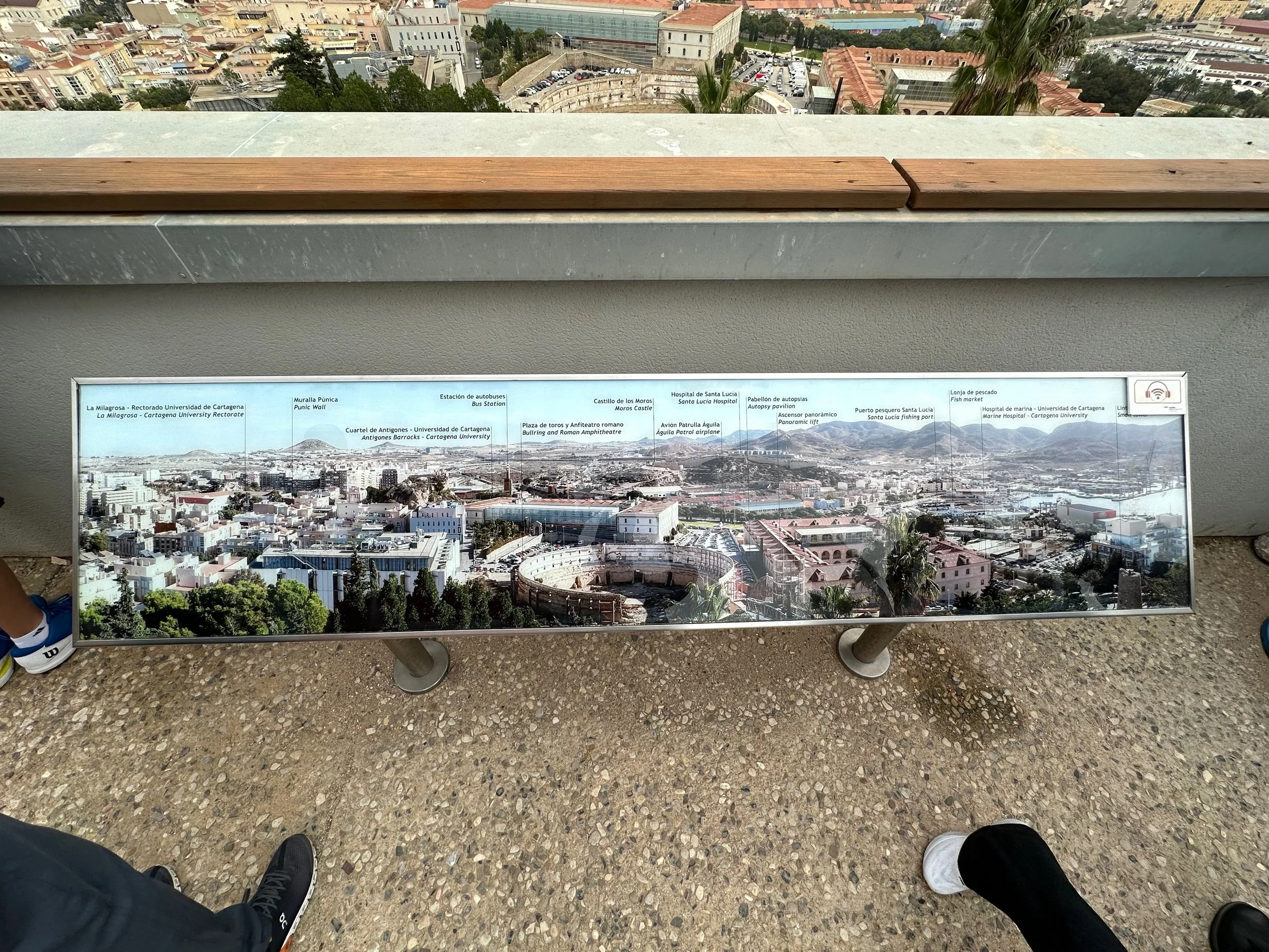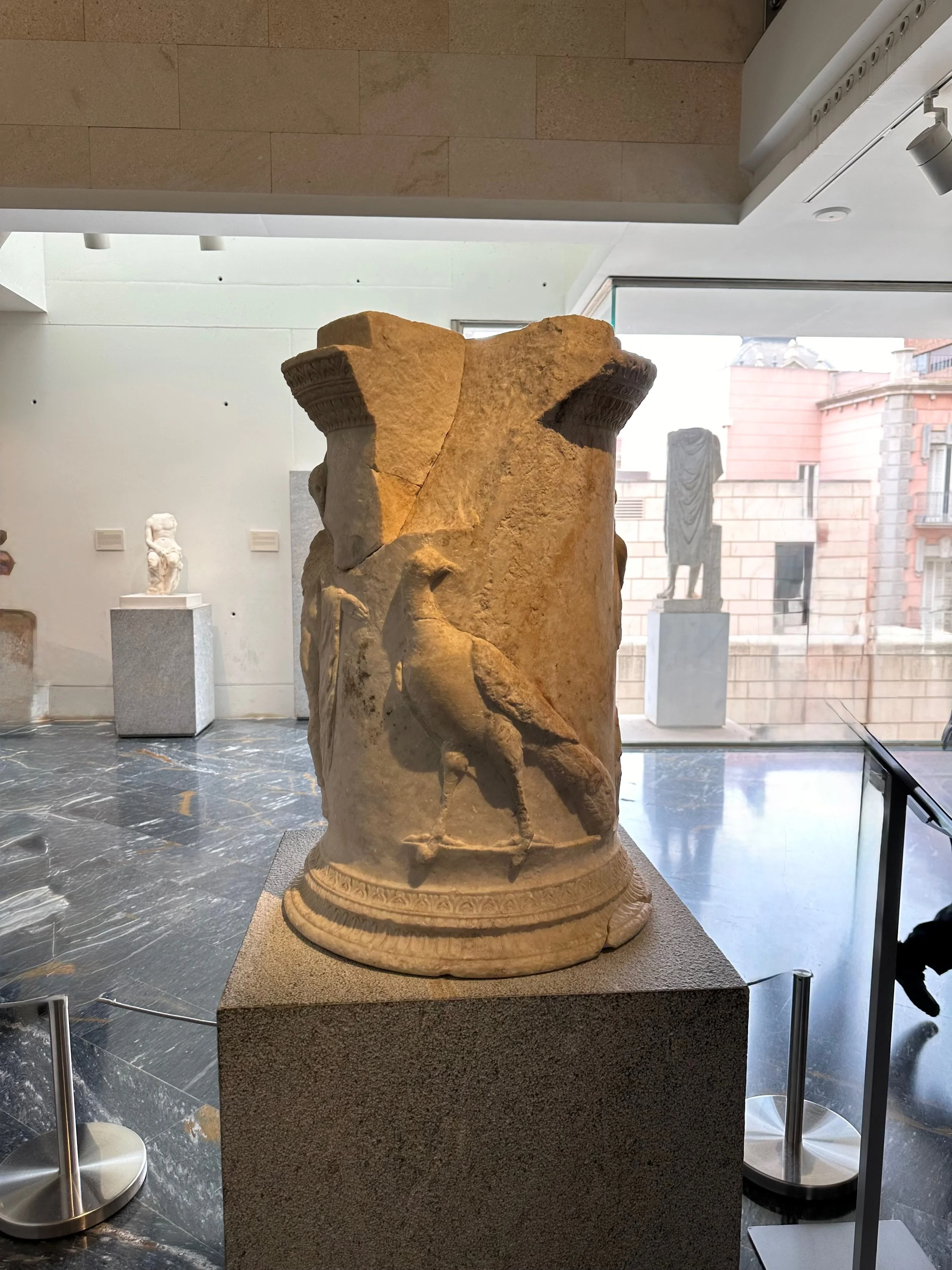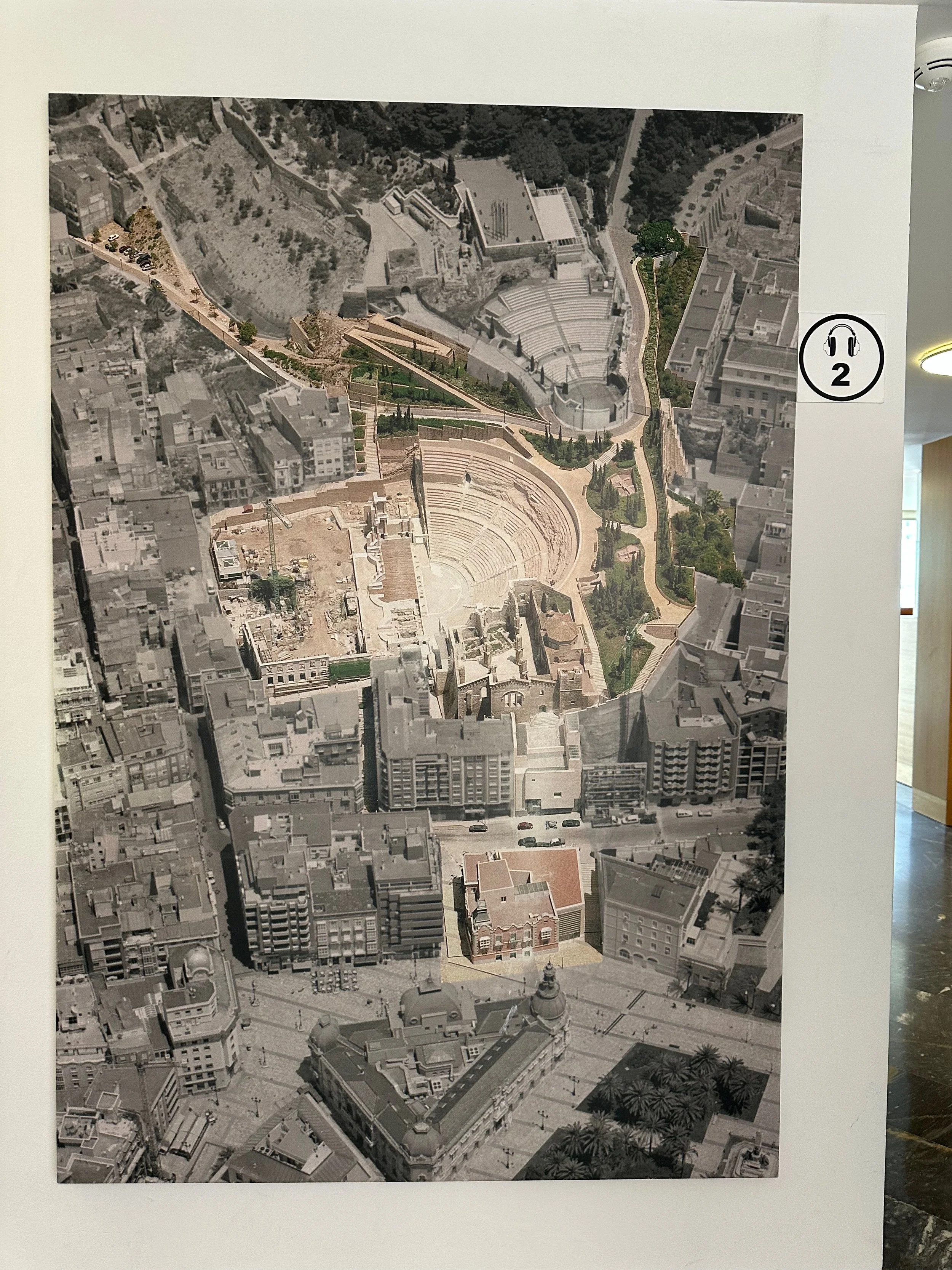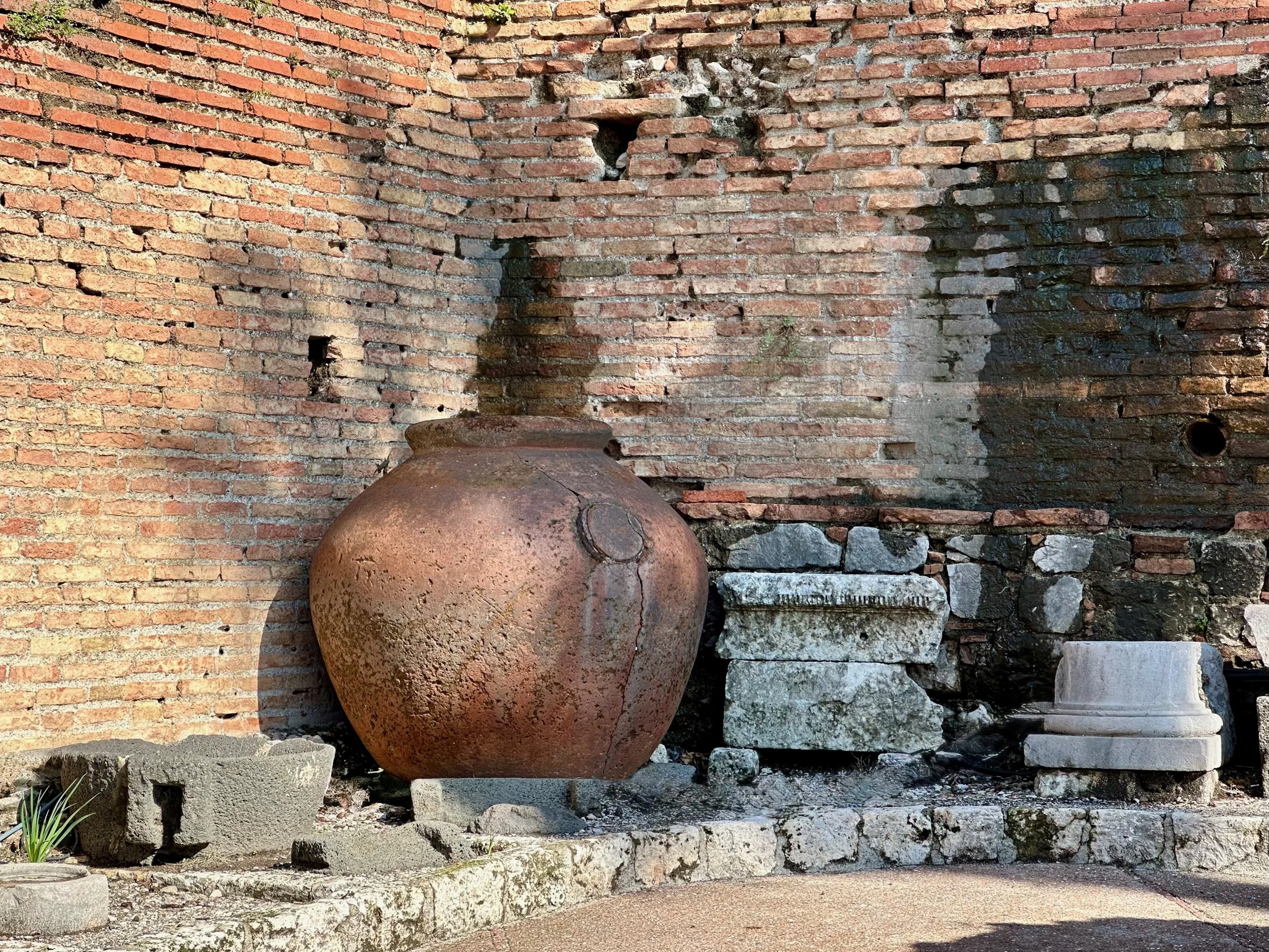 With our investigation of the castle top complete, we made our way back to the cylindrical elevator for our return to ground level and the waiting bus. Unfortunately there was no several busloads of people all trying to do the same thing, and we had to wait for what felt like an hour to all of us down, eight people at a time. We would have been faster had we just walked down the road that allowed cars up onto the mountain. Once down and on the bus we were taken to the centre of town for the last stop which was a museum and ruin of an ancient amphitheatre. The first of two we’d see on this trip.