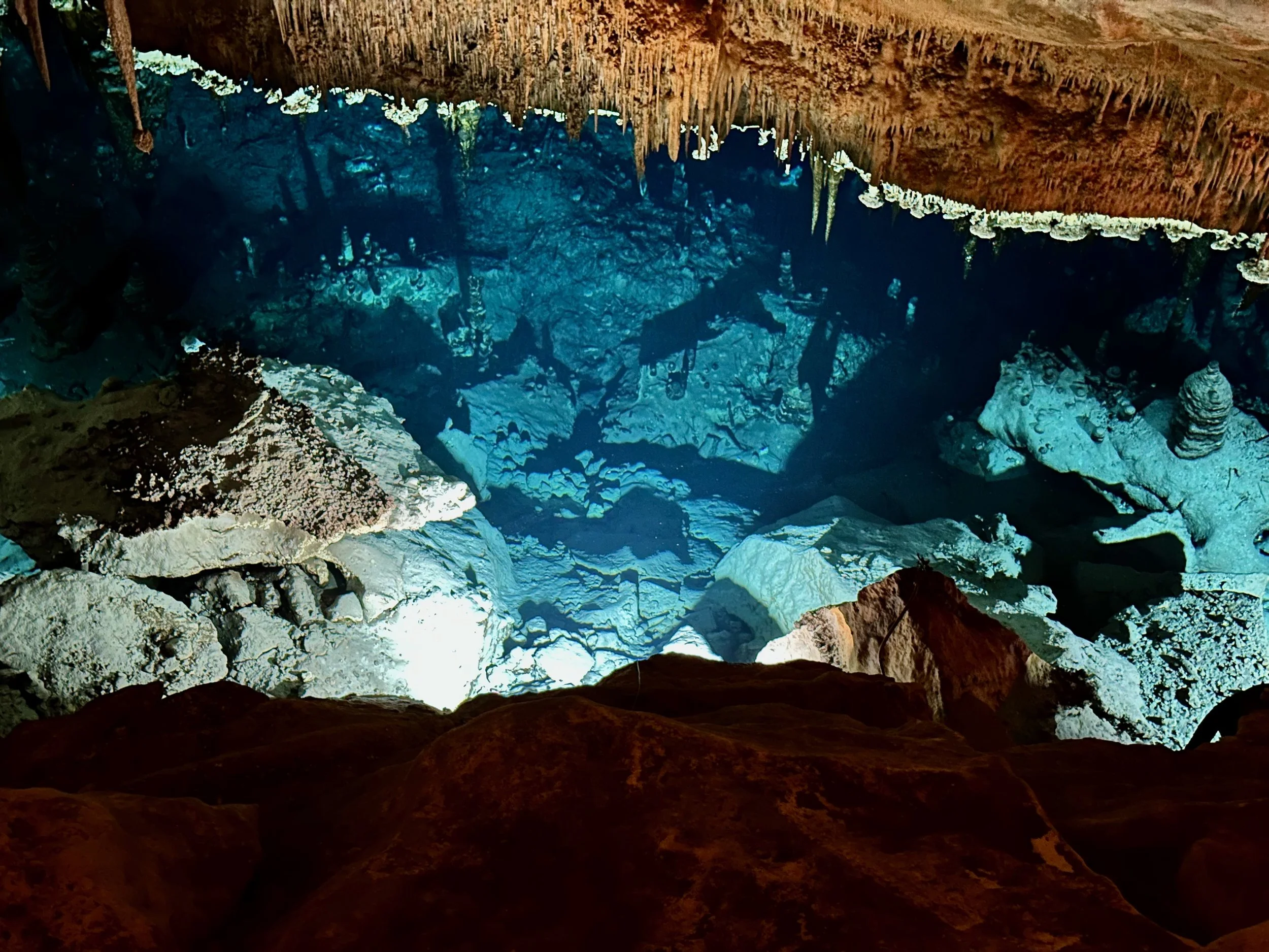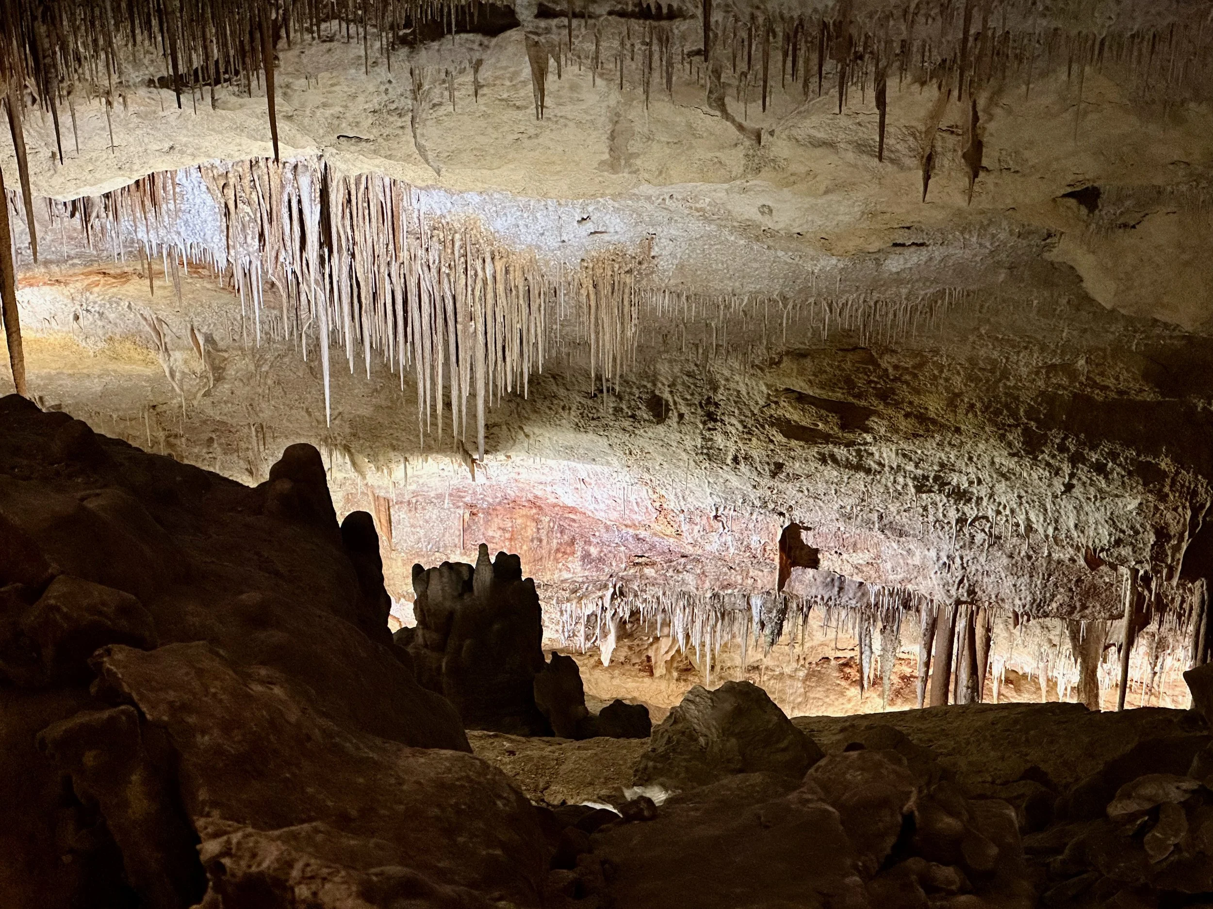 We arrived from Cartagena around 10:30, and by the time the ship was docked and we were ready to board the bus, it was 12:30pm. The trip cross island was accomplished using the main highway, but even at that, took almost two hours. At the other end we went directly to the caves. They only accept a certain number of visitors each day, and they are broken into groups that enter the caves at specific times. This was to control the wear and tear on the underground infrastructure, but there was another reason for it. At the very bottom of the cave network there was a beautiful underground lake, and that lake had an area beside it set up with seating like a theatre. Each group entering the cave met the seating capacity for the guests, the purpose of which was to enjoy an underground music recital, the musicians for which floated by in several rowboats. The acoustics of the cave enhanced the music to an extraordinary degree.