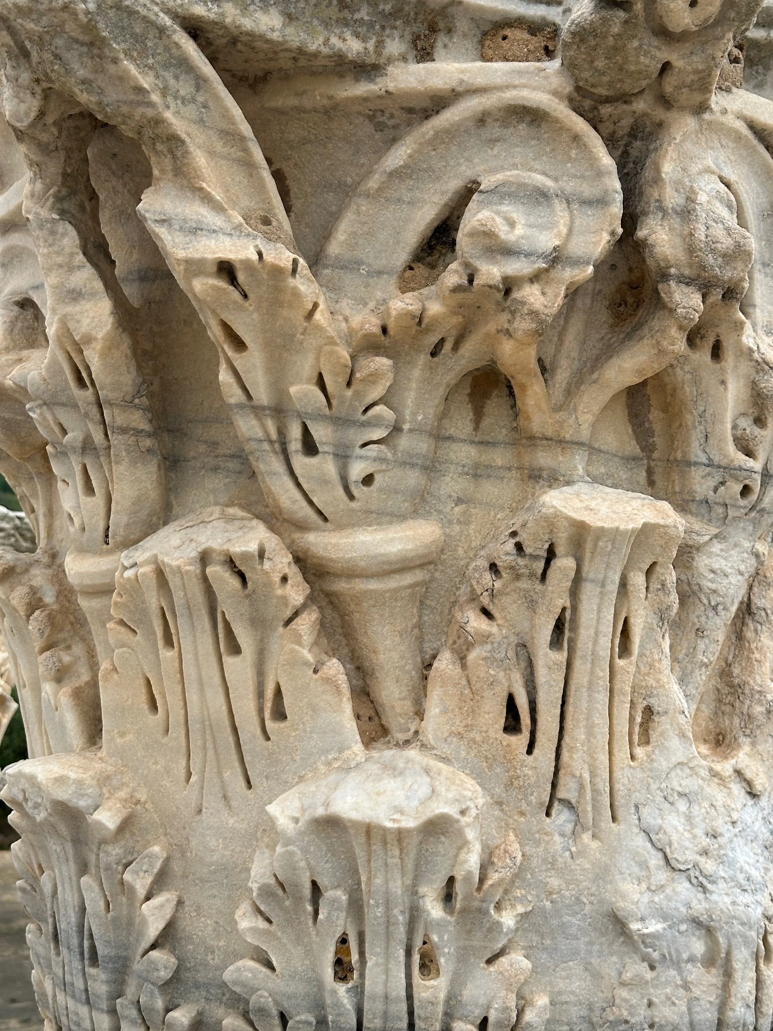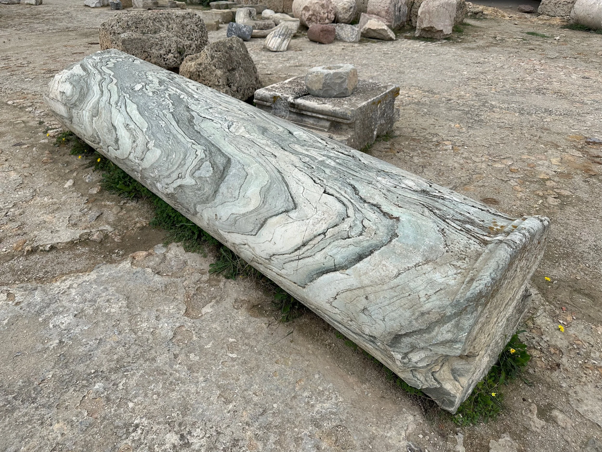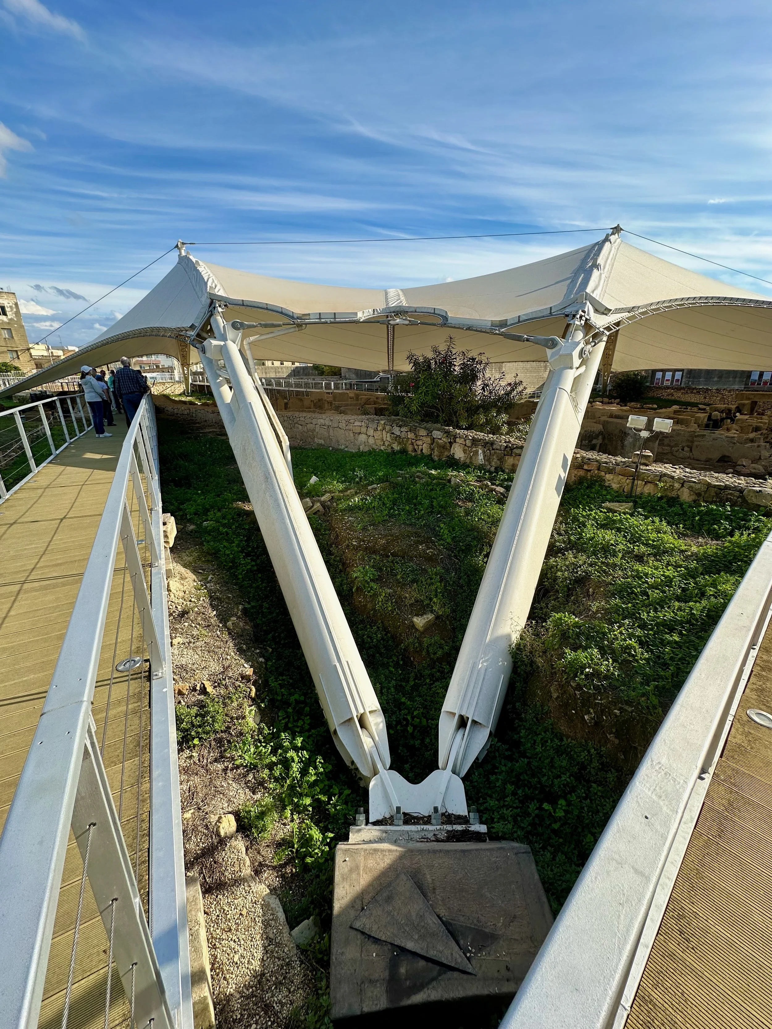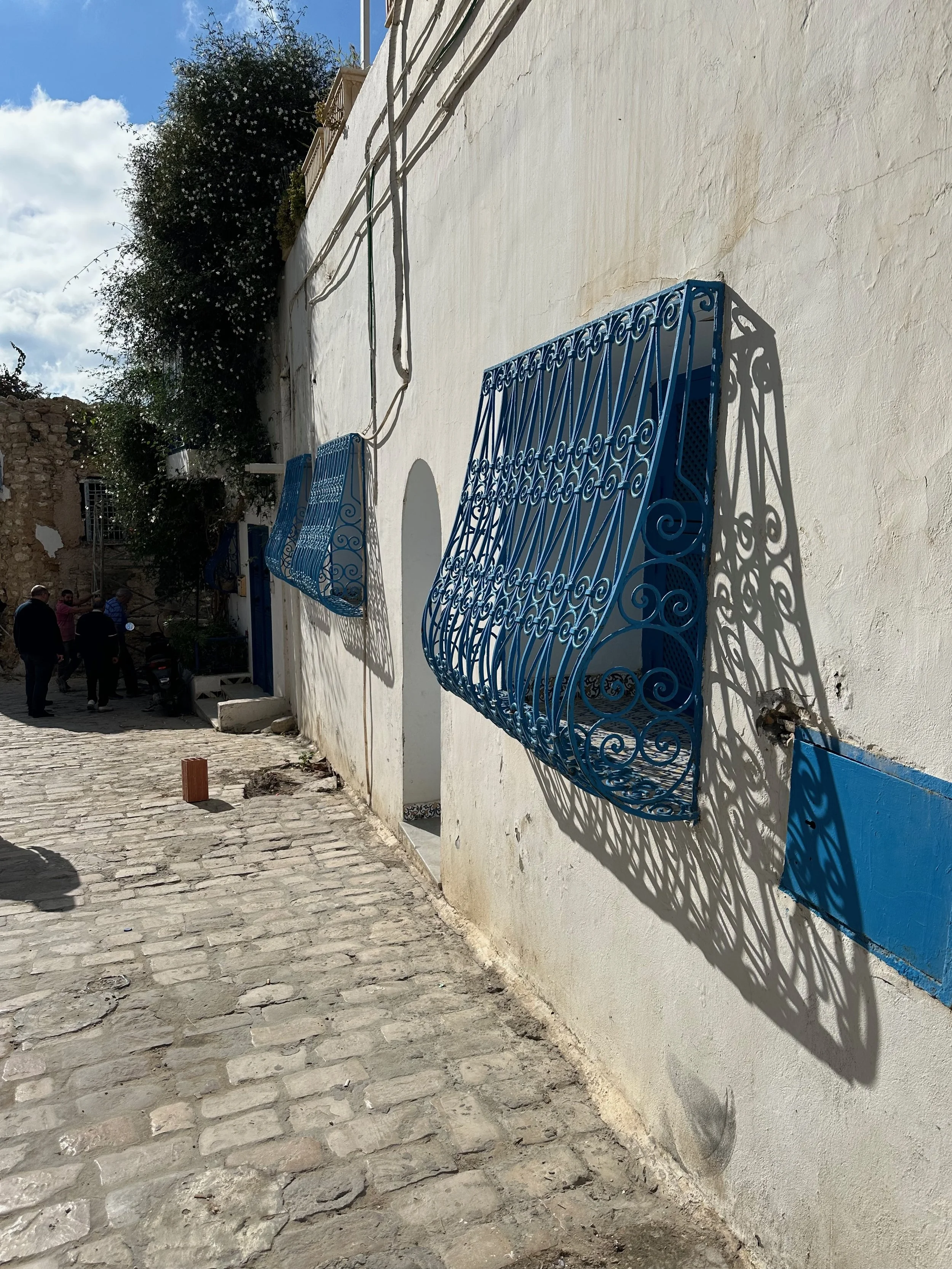 The day started by warming up with stops of some archeological and religious interest such as a field depository of ancient carved wall stones, the Mosquée Malik ibn Anas Carthage, and the Cisterns of La Malga, an ancient facility for storing and routing water for the early Carthaginians. From there we went to a hillside town for shopping, carefully orchestrated by the guide so we ended up in his buddy’s store claiming all the items were “government guaranteed”, and finally to a hilltop for views of the Mediterranean before backtracking to the Baths of Antonin.