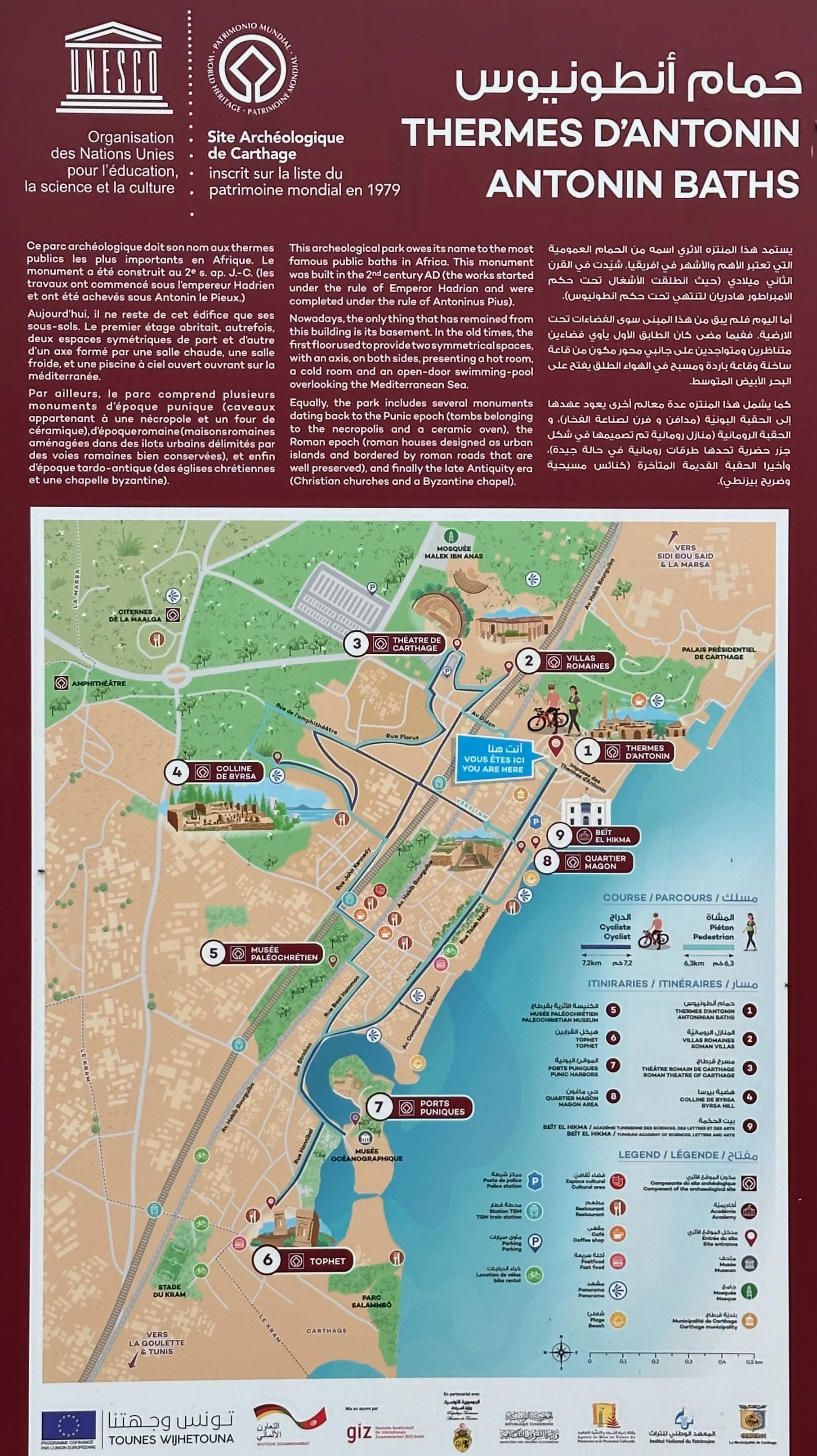 Our visit would expose us to some ancient relics, infrastructure and most importantly, the ancient Roman Baths of Antonin. It’s one of the three largest such baths in the Roman Empire, and part of the Archaeological site of Carthage, a Unesco World Heritage Site. What sets this bath apart from all the other Roman baths is how it had to be constructed. Because of the soft Mediterranean soil, the usual basement infrastructures of other baths could not be built here. Instead they had to build everything above ground on massive foundations, which makes the Baths of Antonin the tallest Roman bath structures in the world.