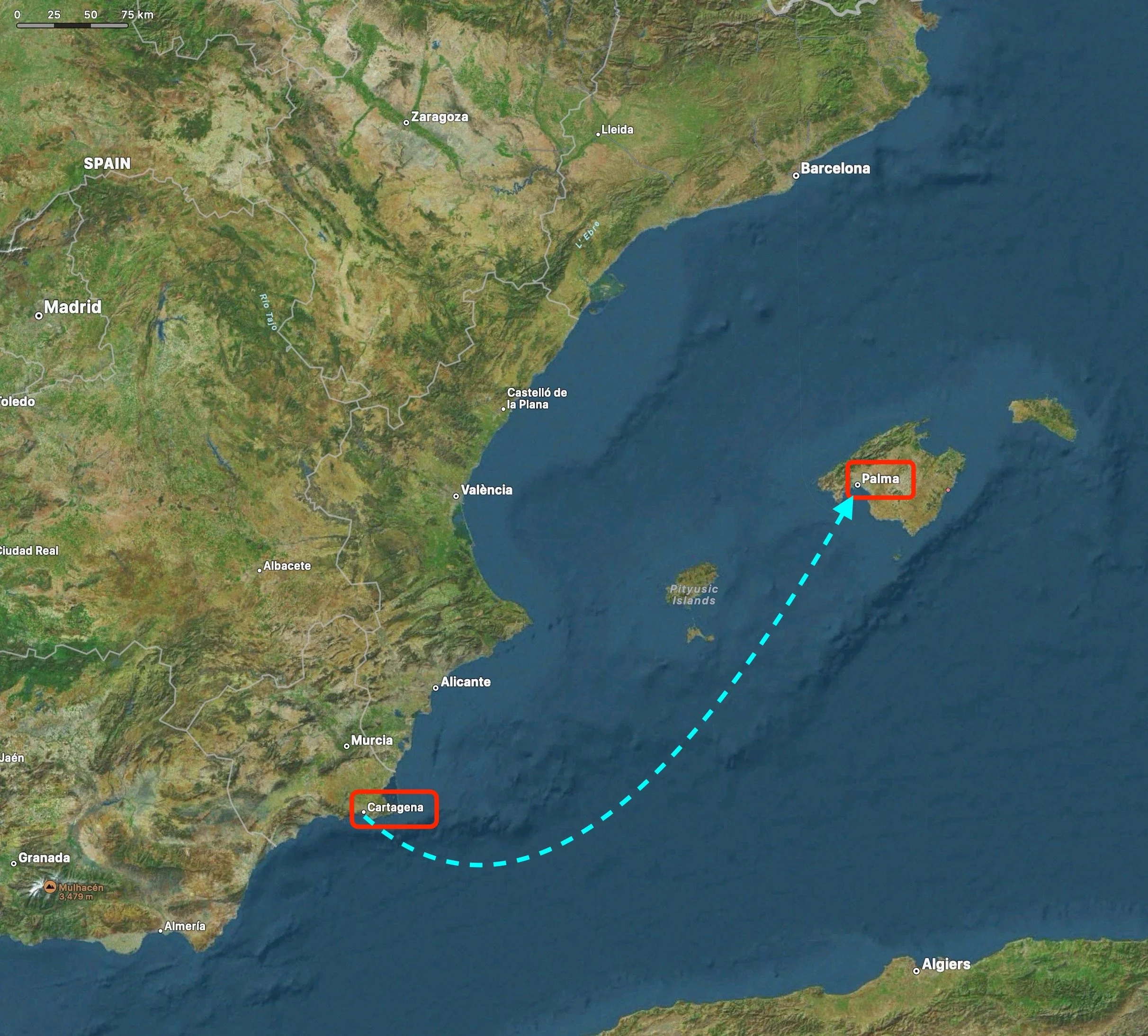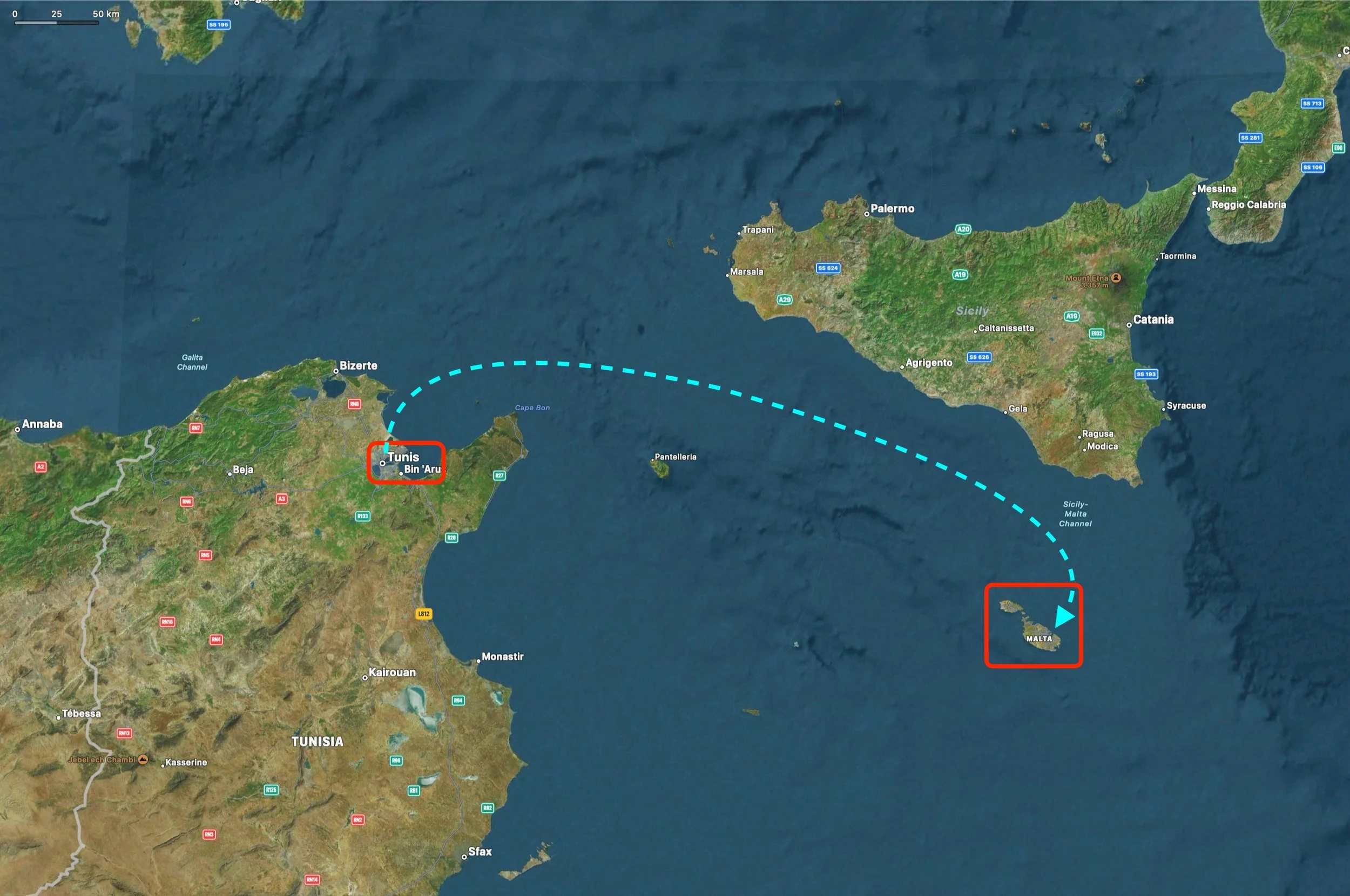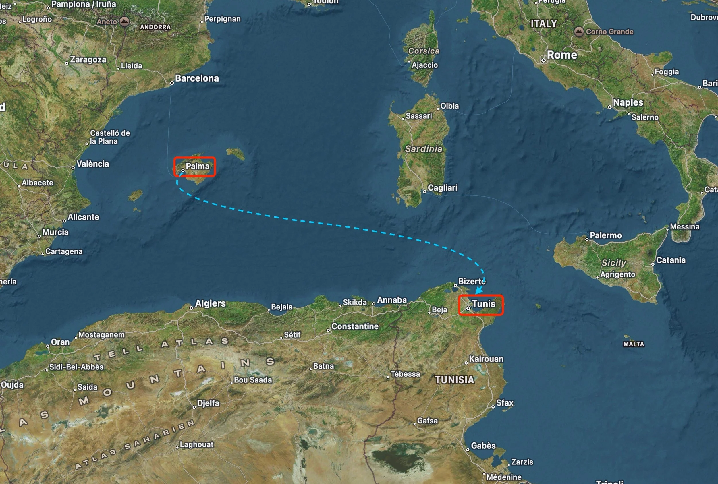 A day and a half at sea to reach Tunisia.