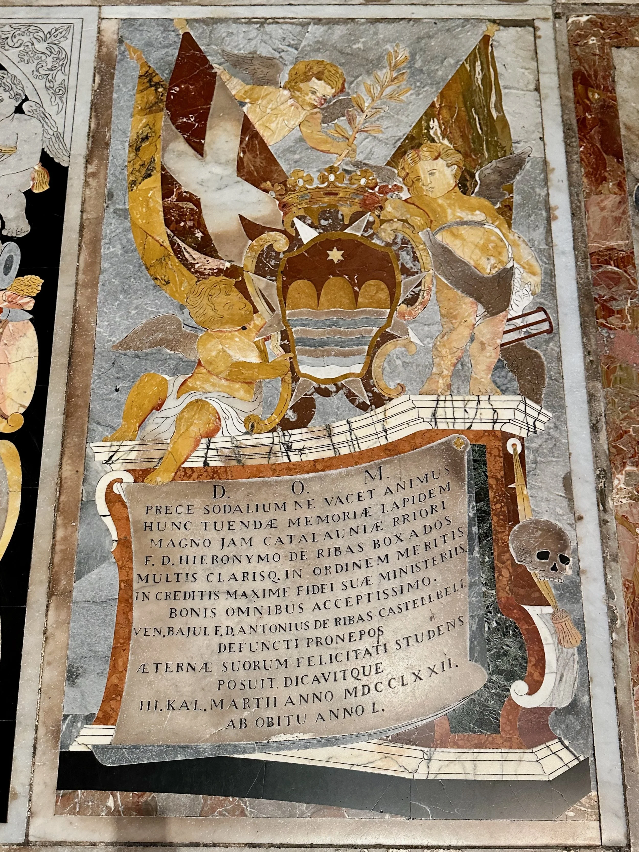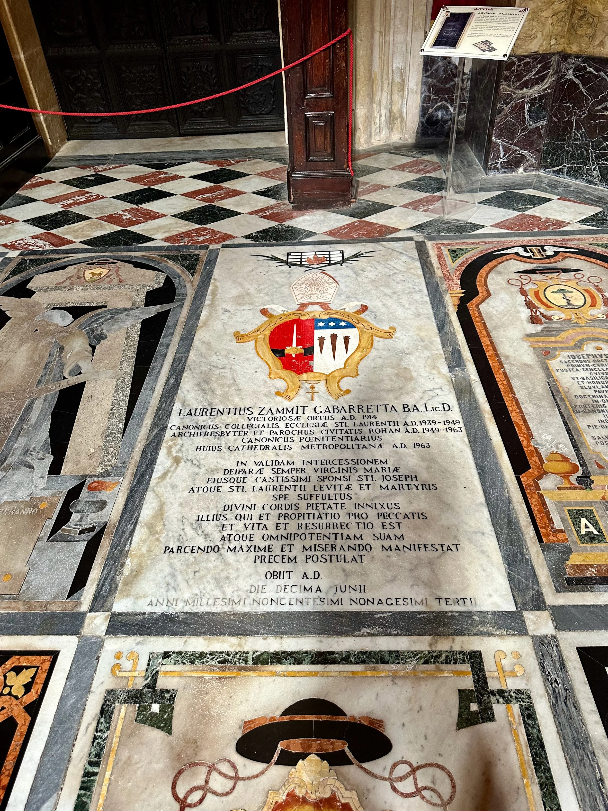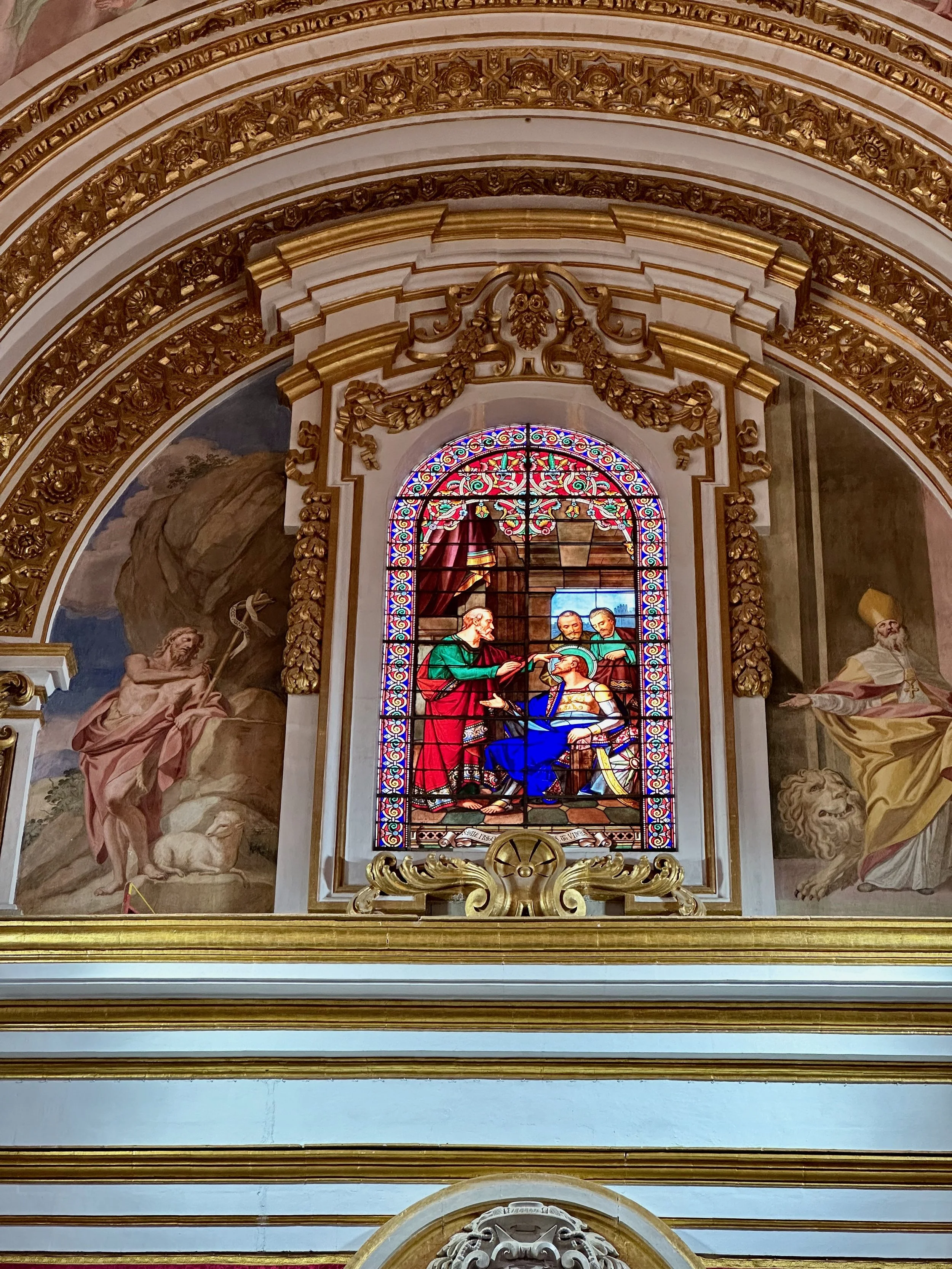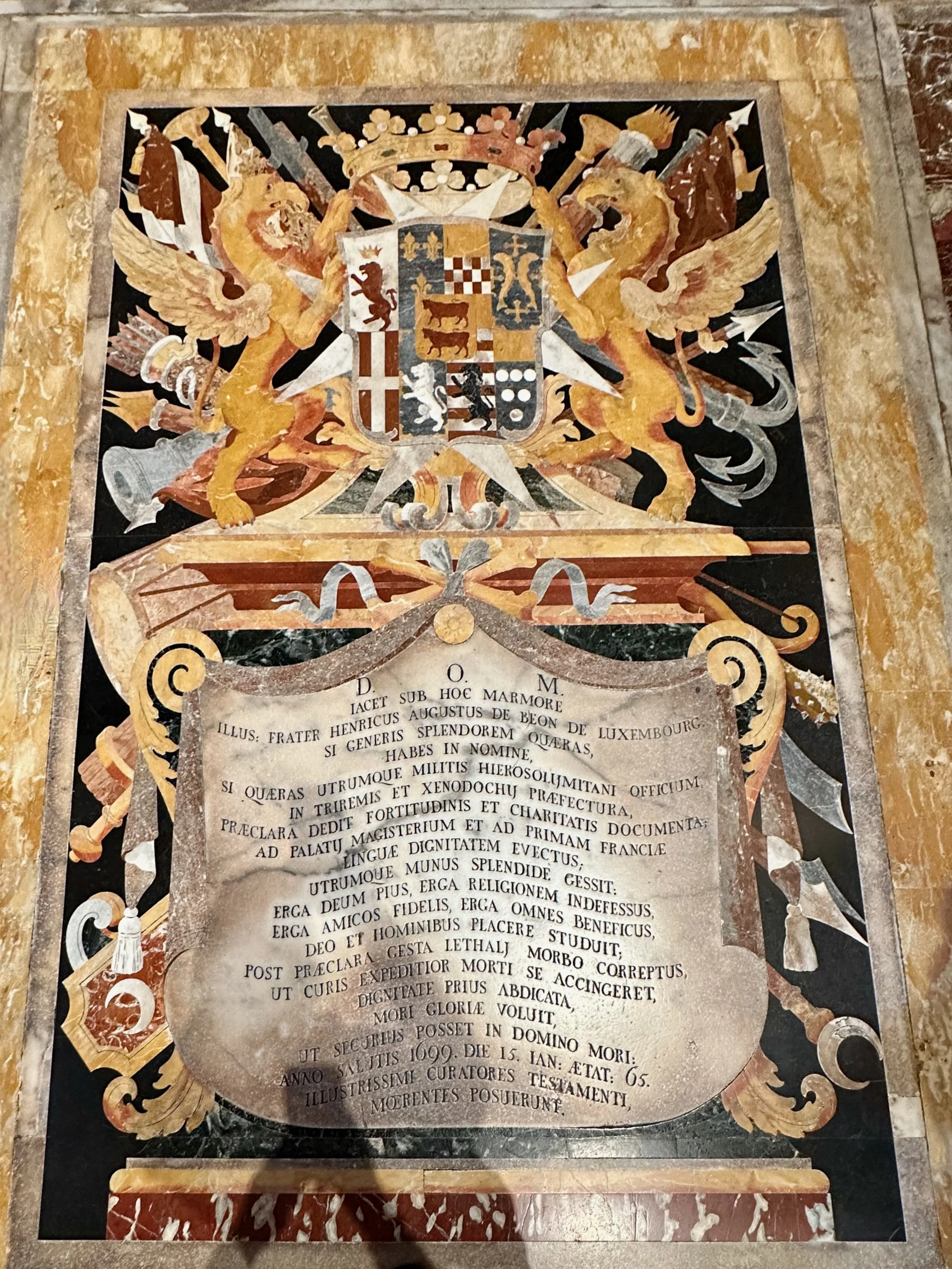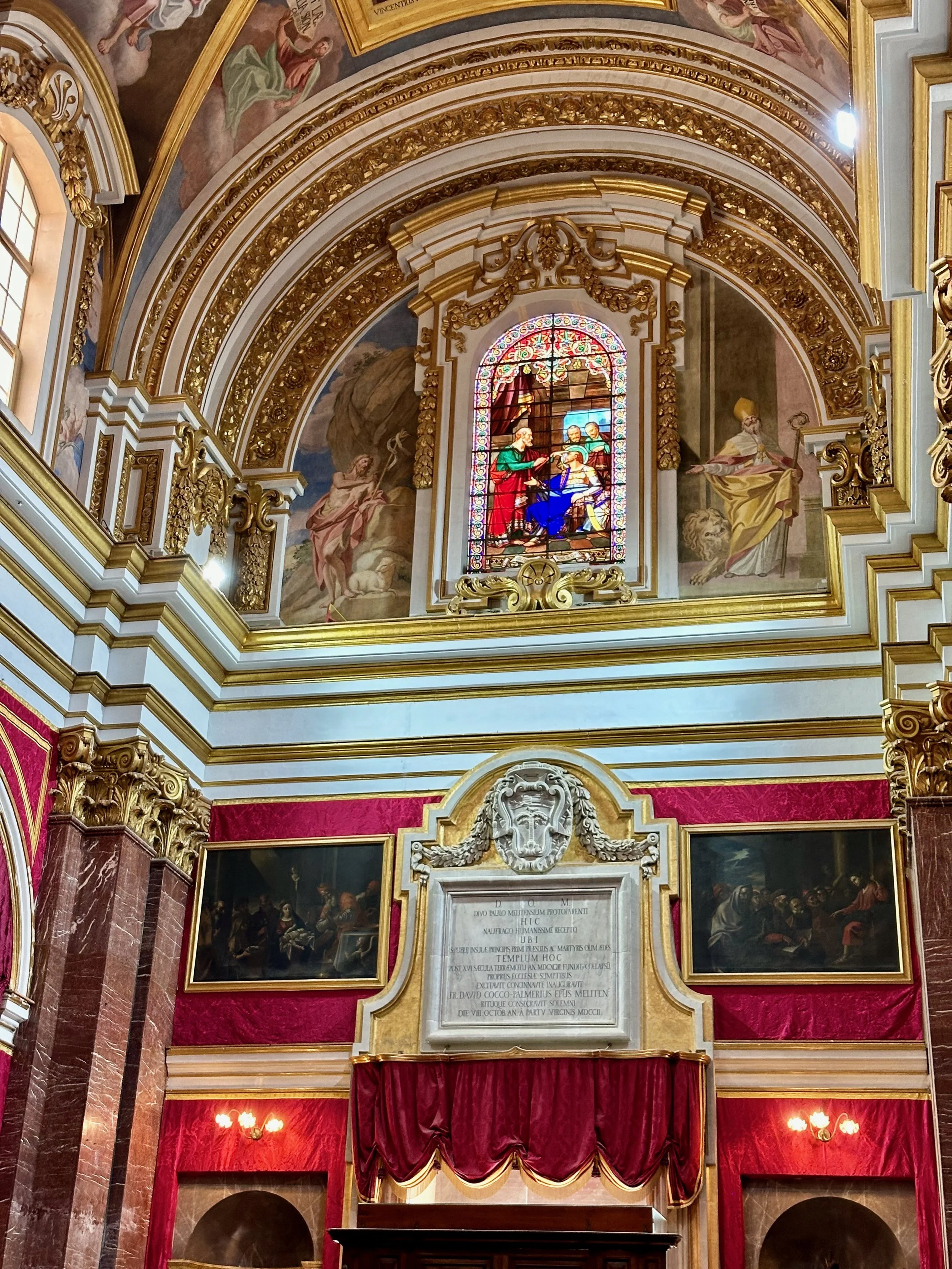 The interior of the cathedral doesn’t have a single unadorned surface. Not the walls, floors or ceiling. If they aren’t covered with intricate carvings gilded in gold, then they are smooth marble or painted with incredible frescos depicting all manner of historical or divine scenes. Even floor space where tomb covers are possible is covered with exquisite hand woven carpet. Certainly the Order of St. John was immensely profitable to be able to afford such a landmark.