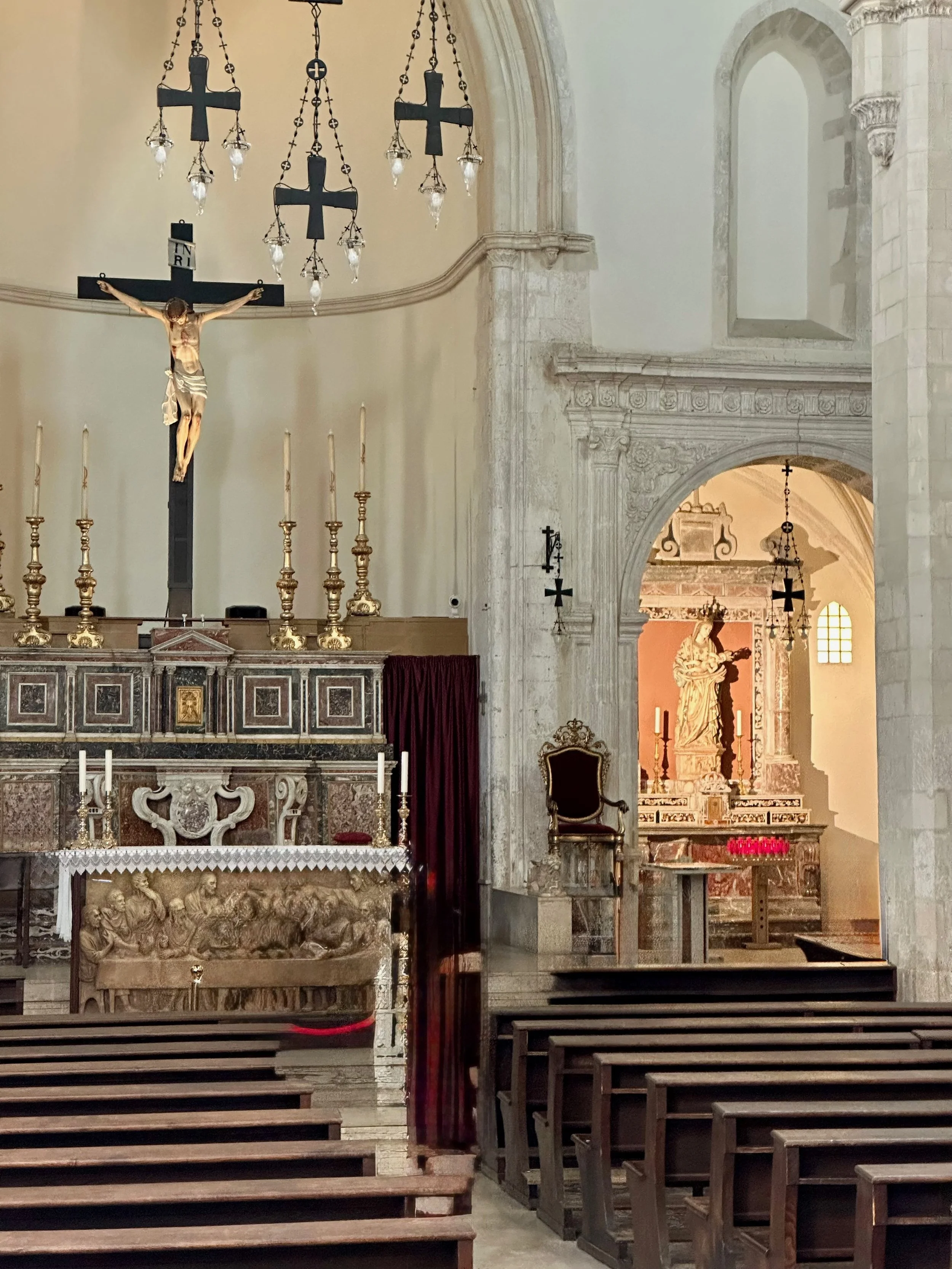 As a very devout society, there are a multitude of churches of all sizes in every community. The one here in Mdina is a mid-sized version with enough grandeur to impress, but not enough to make one have depressing thoughts about mis-spent wealth. Our visit was short, since it was at the end of our Mdina time limit. But it was enough for the requisite photos and genuine contemplation.