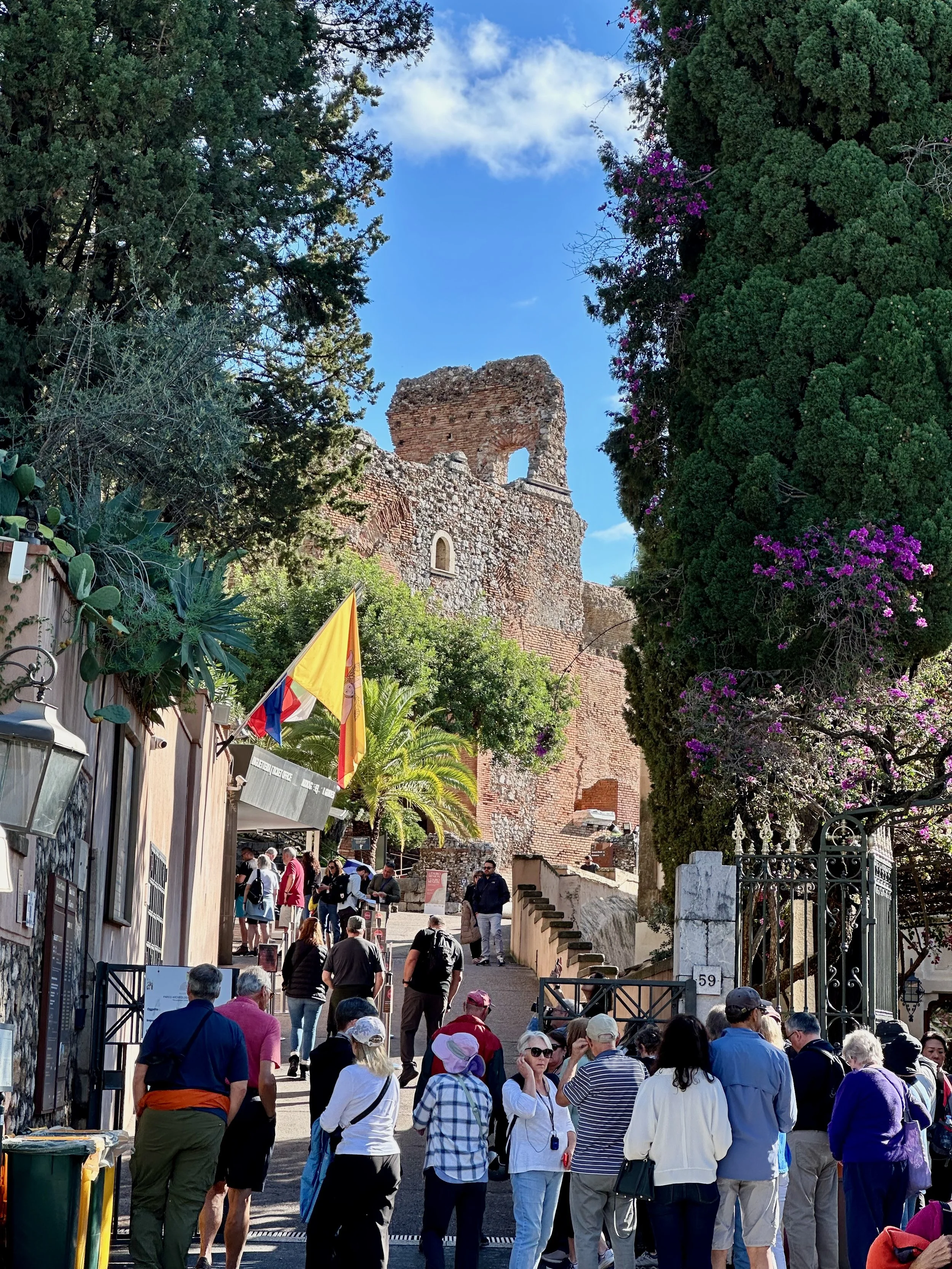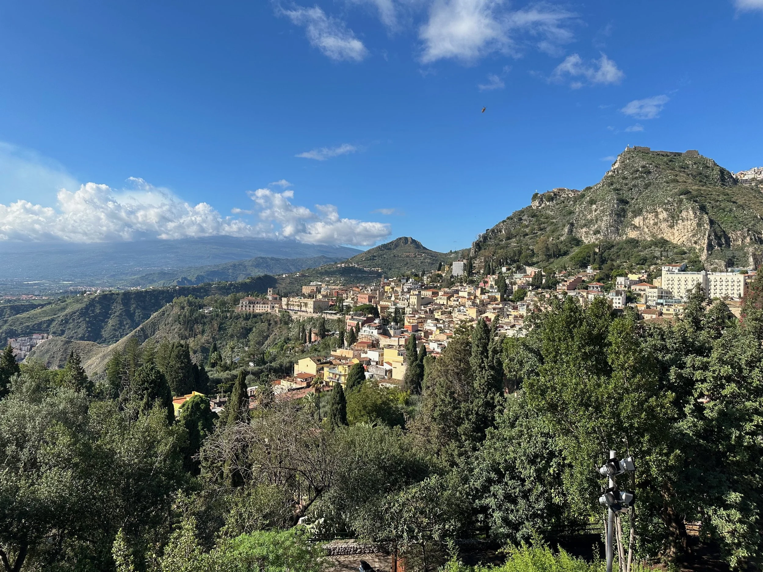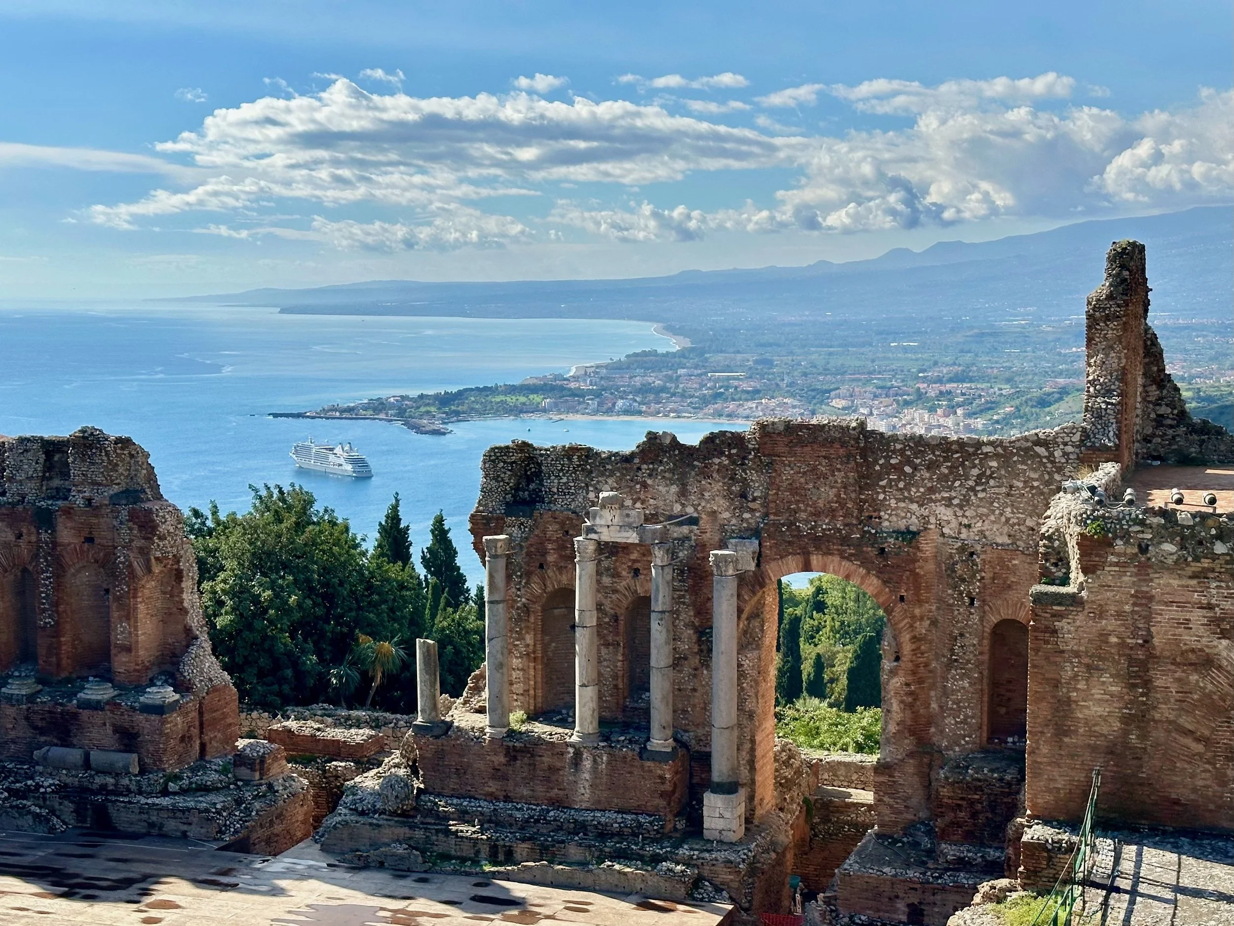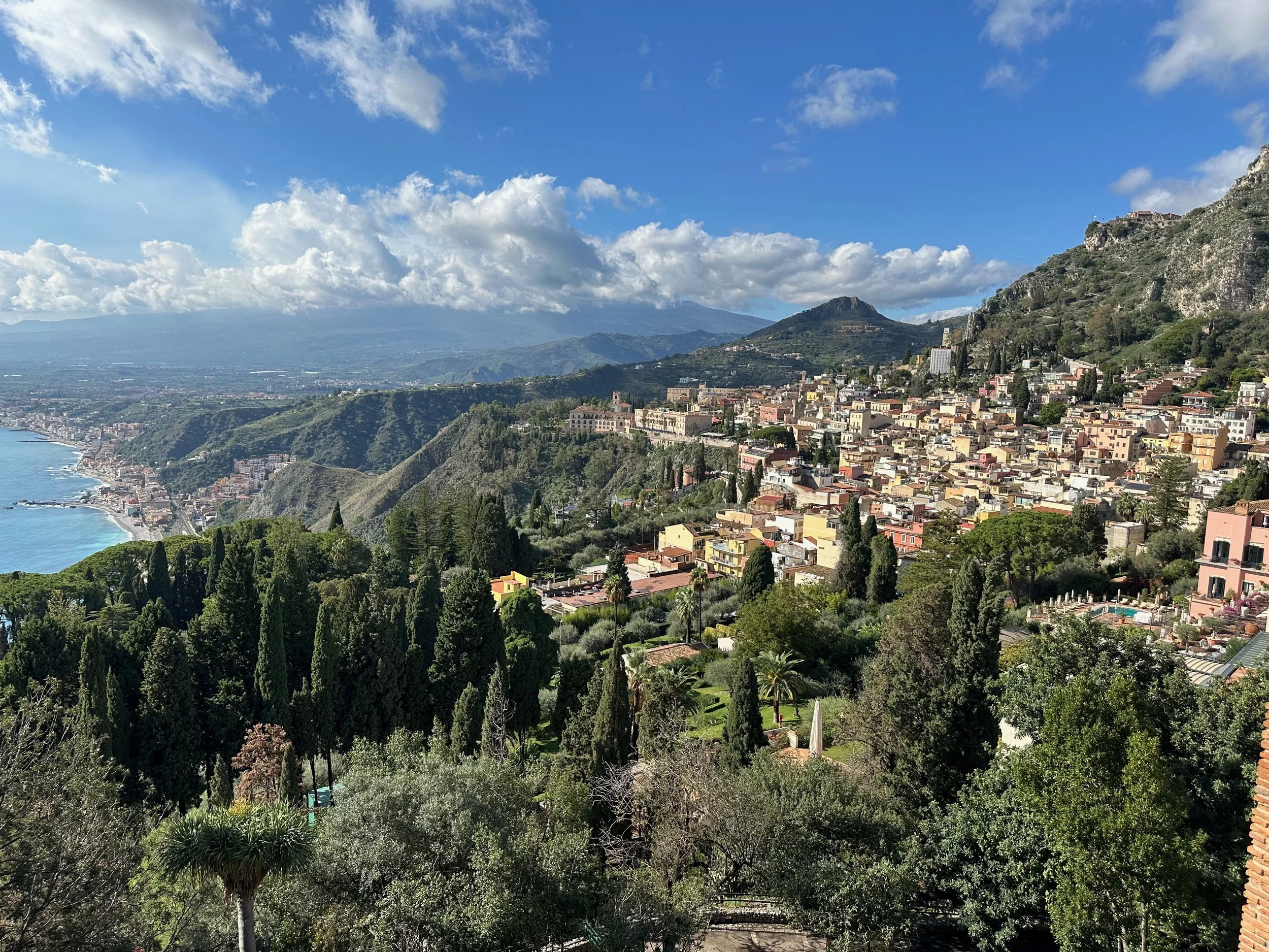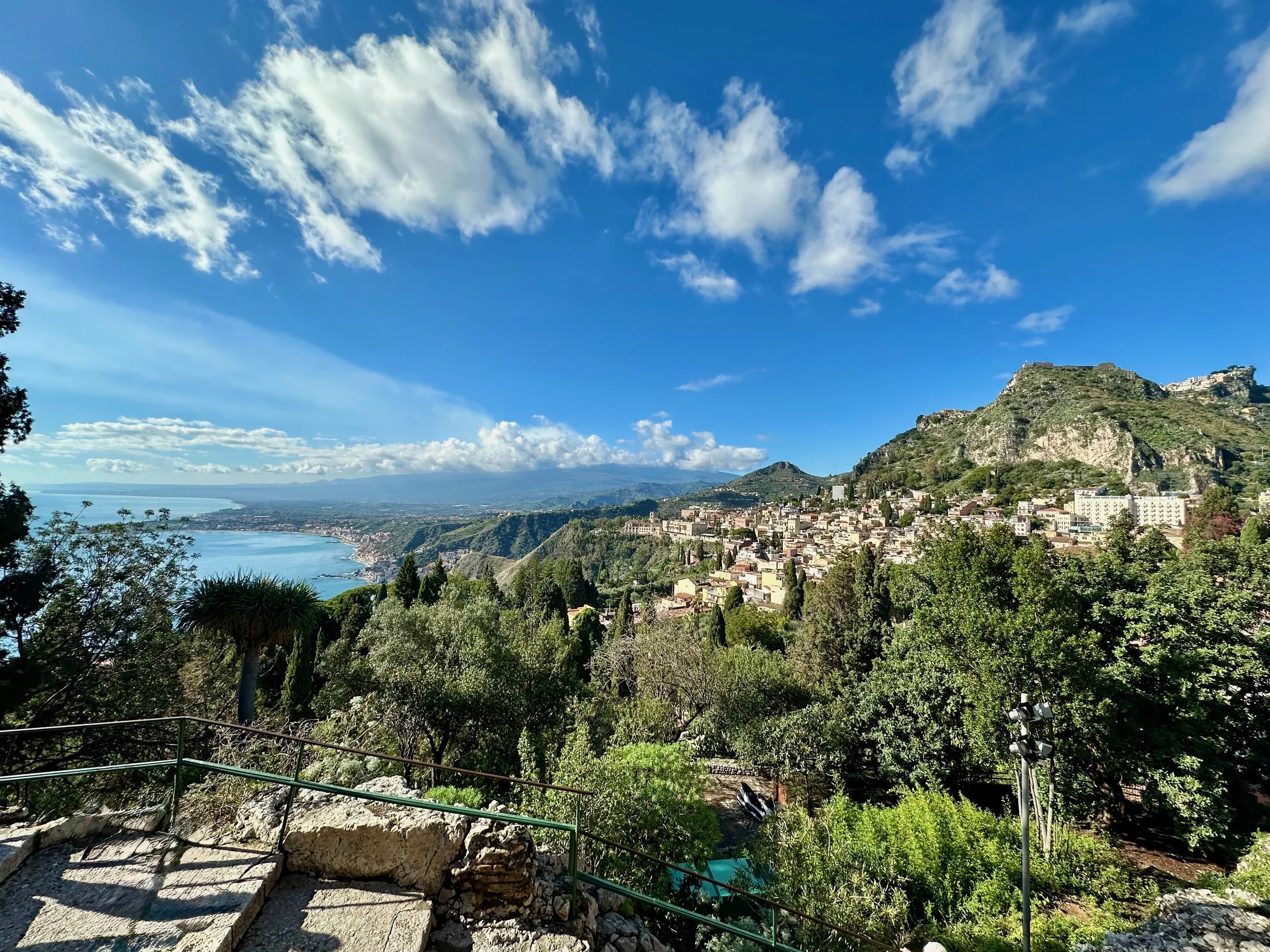 Our first visit to Sicily, and indeed Italy as a whole, would see us land not far from Mt. Etna. Our target town, Taormina, was up on the hill with a view that stretched for miles in all directions. It turned out to be an incredible location, with ancient beauty radiating from every building.
