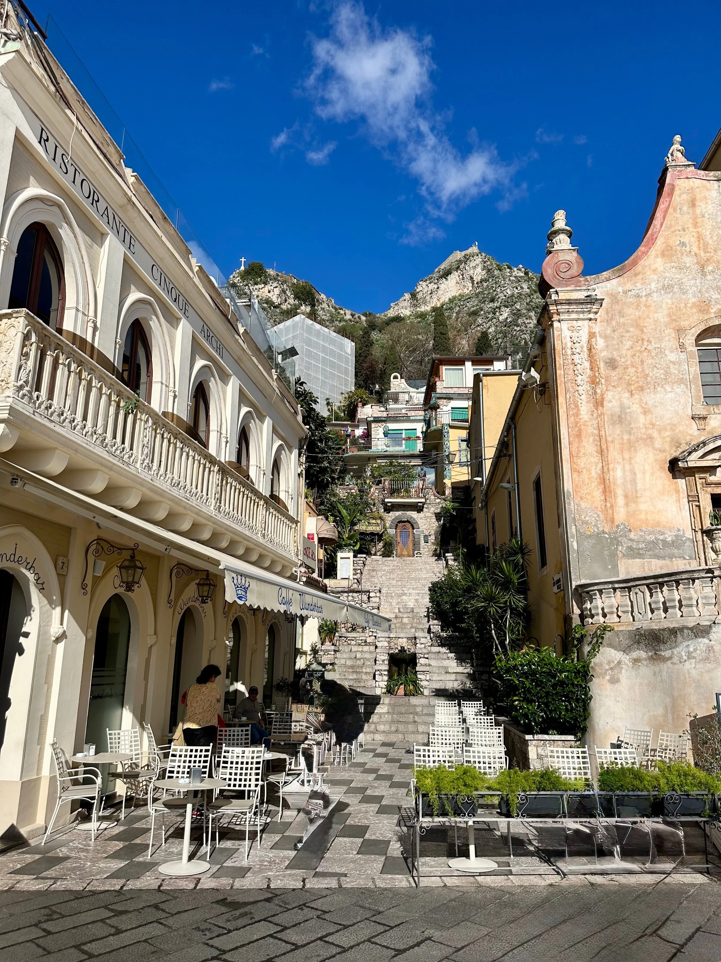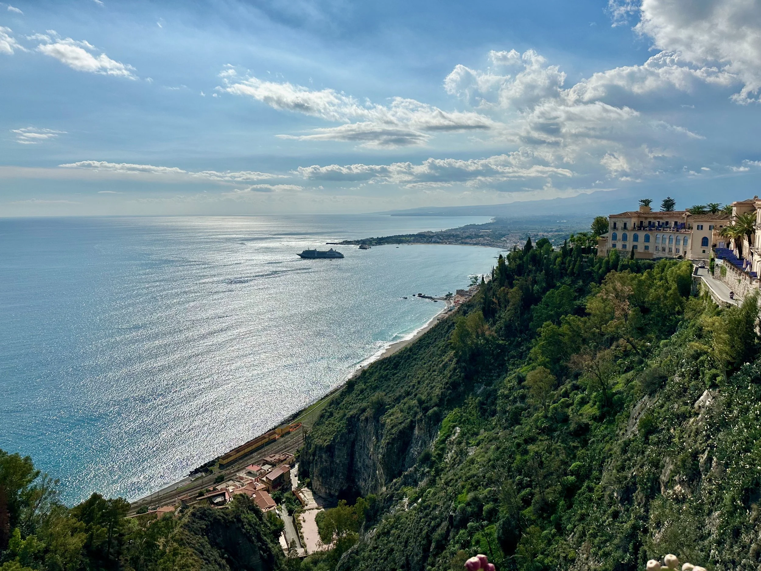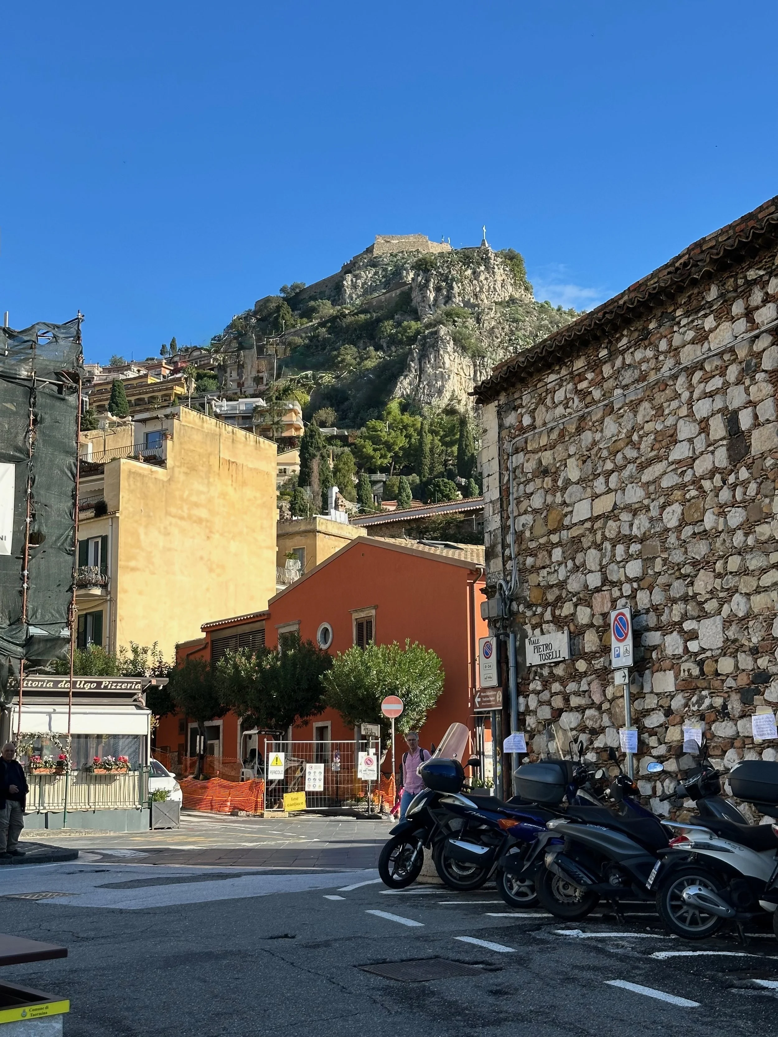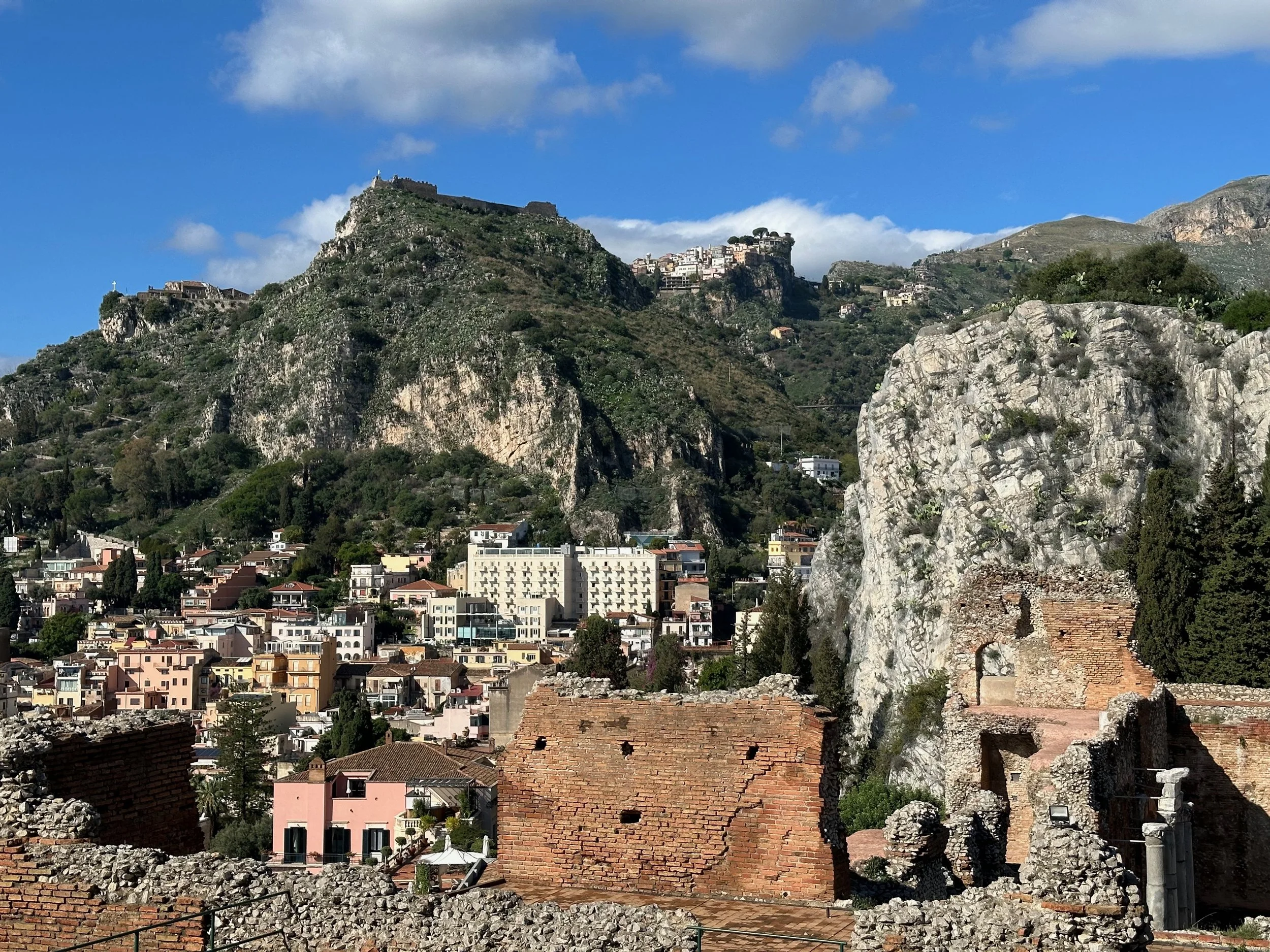 Our first visit to Sicily, and indeed Italy as a whole, would see us land not far from Mt. Etna. Our target town, Taormina, was up on the hill with a view that stretched for miles in all directions. It turned out to be an incredible location, with ancient beauty radiating from every building.