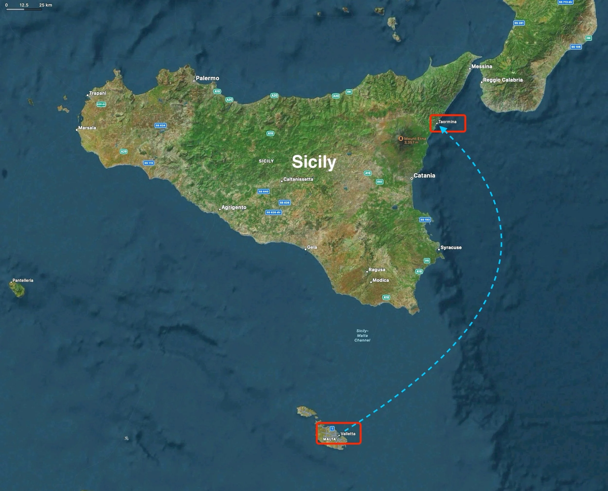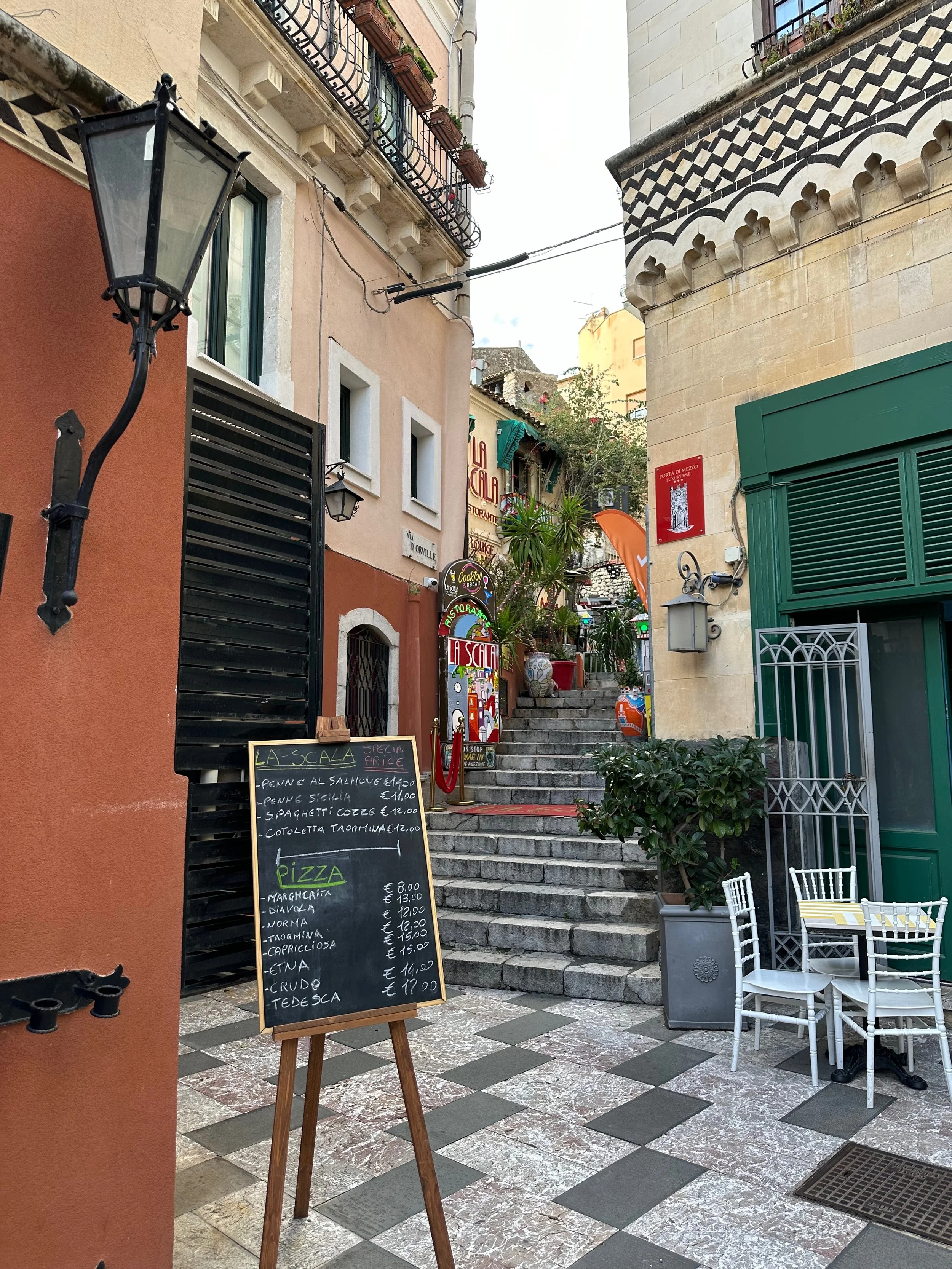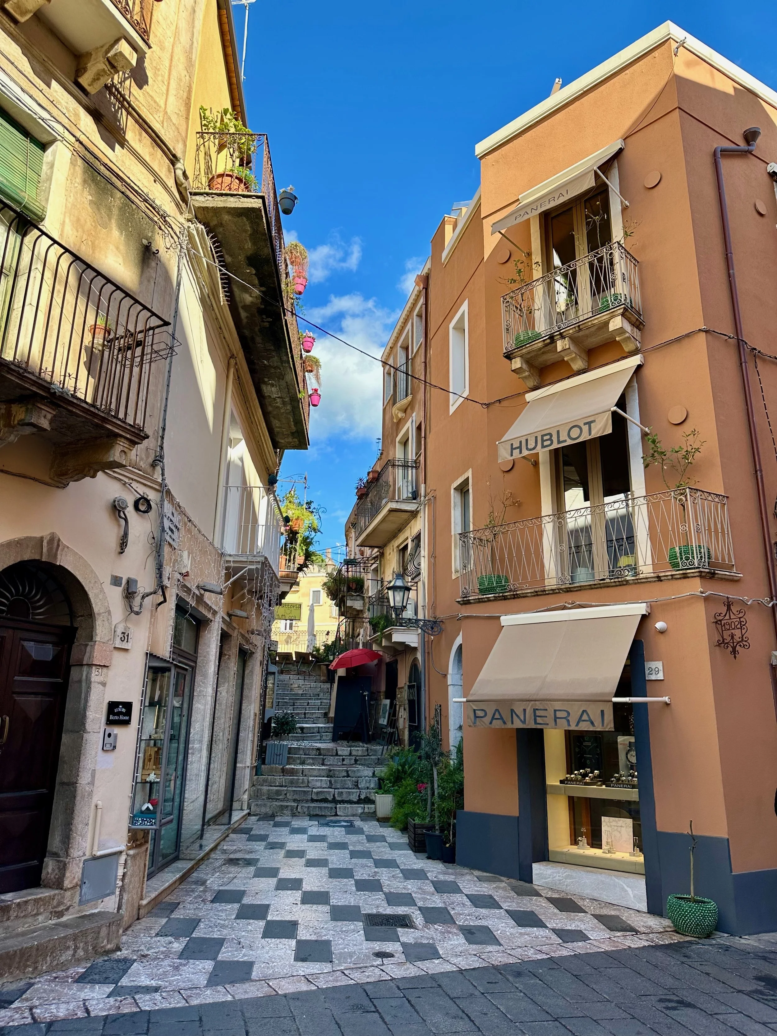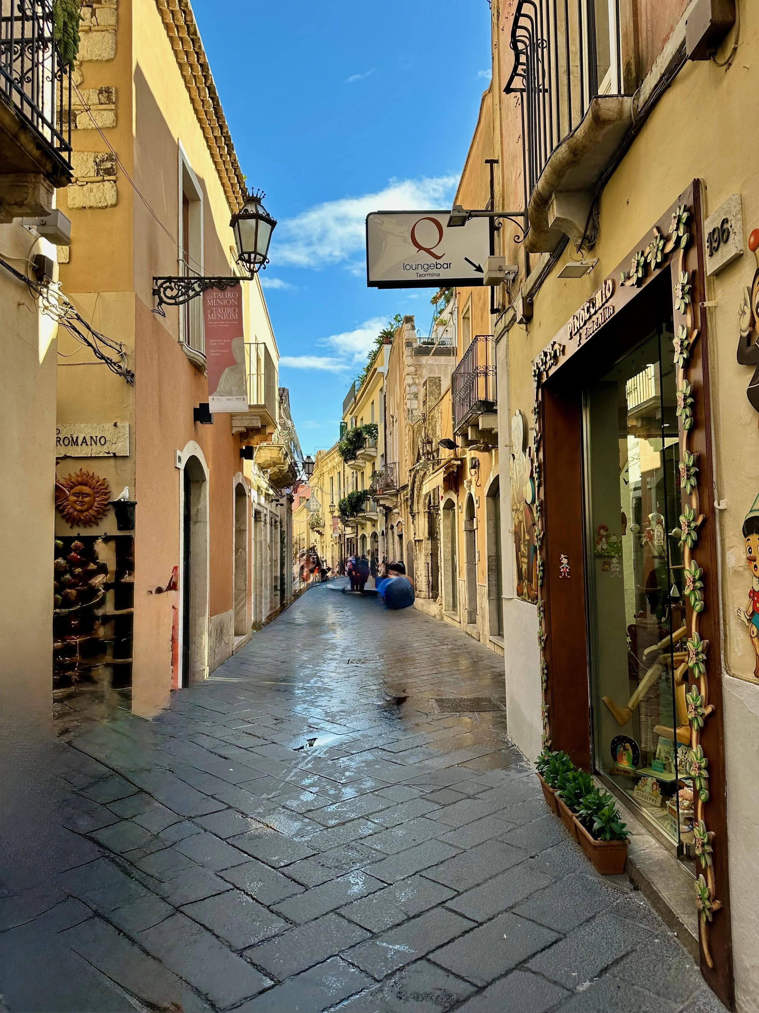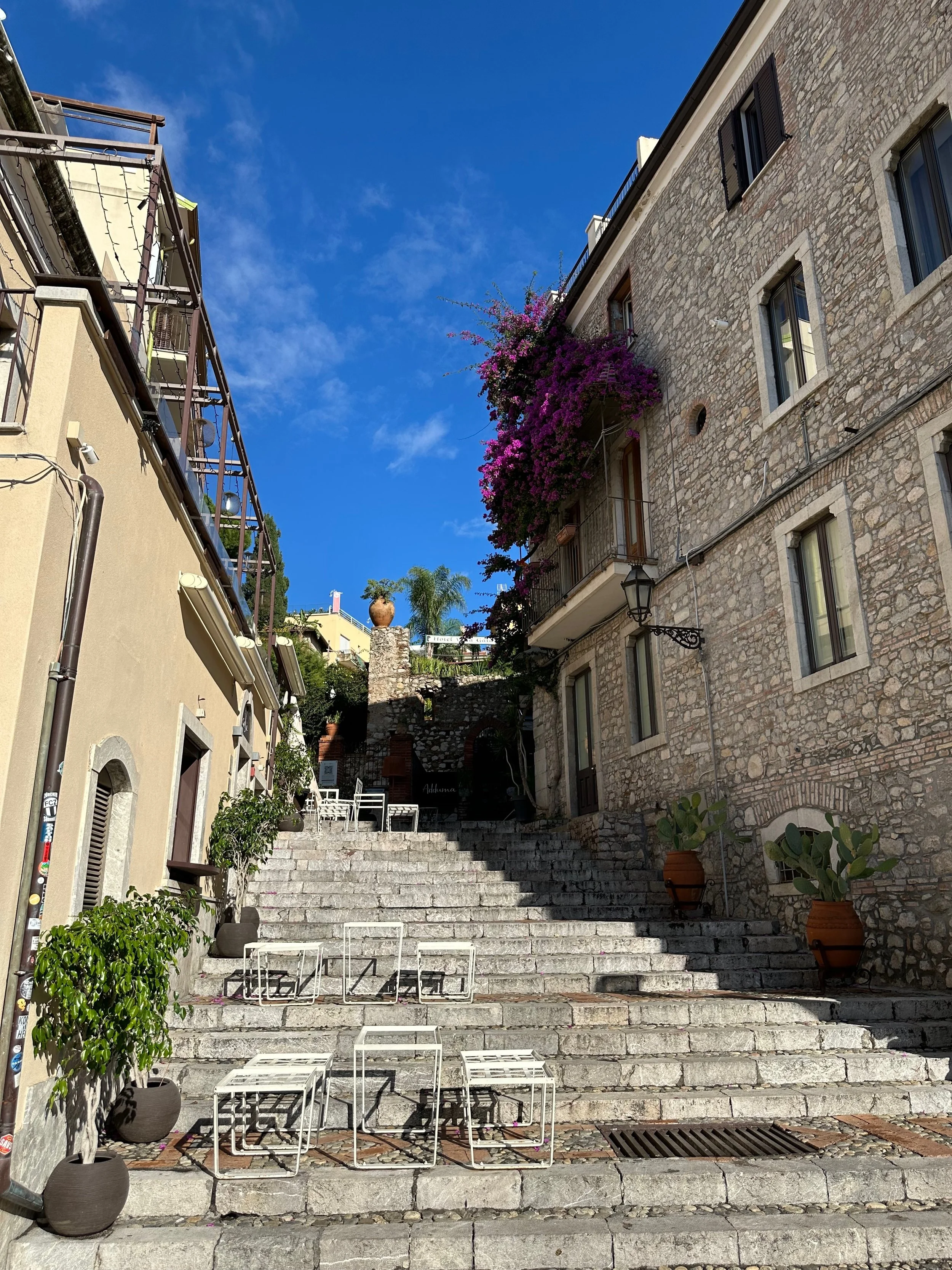 Our first visit to Sicily, and indeed Italy as a whole, would see us land not far from Mt. Etna. Our target town, Taormina, was up on the hill with a view that stretched for miles in all directions. It turned out to be an incredible location, with ancient beauty radiating from every building.