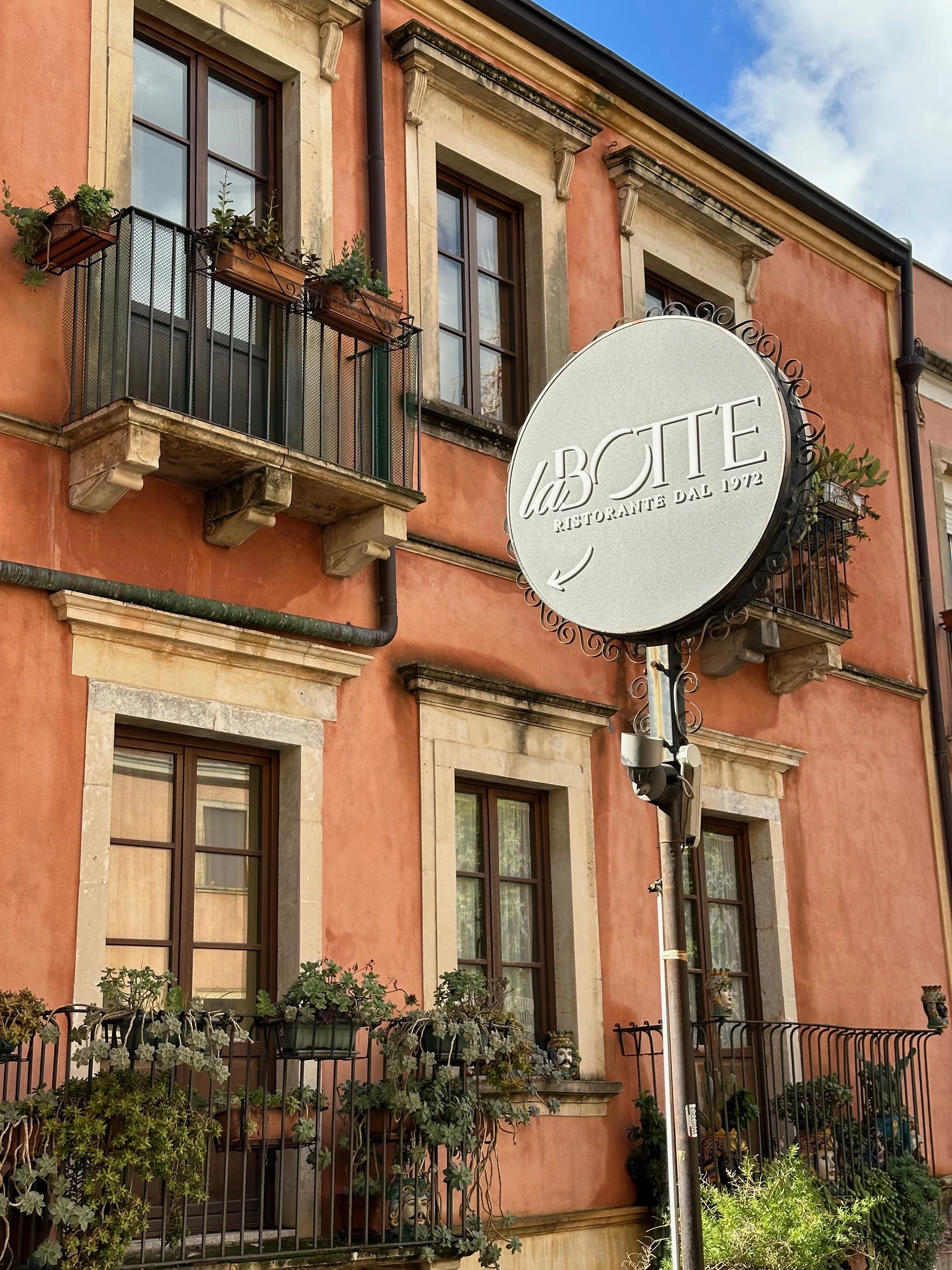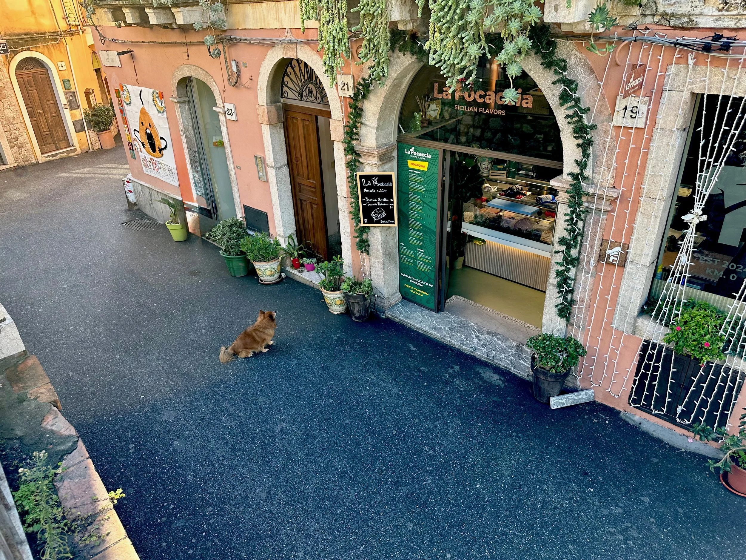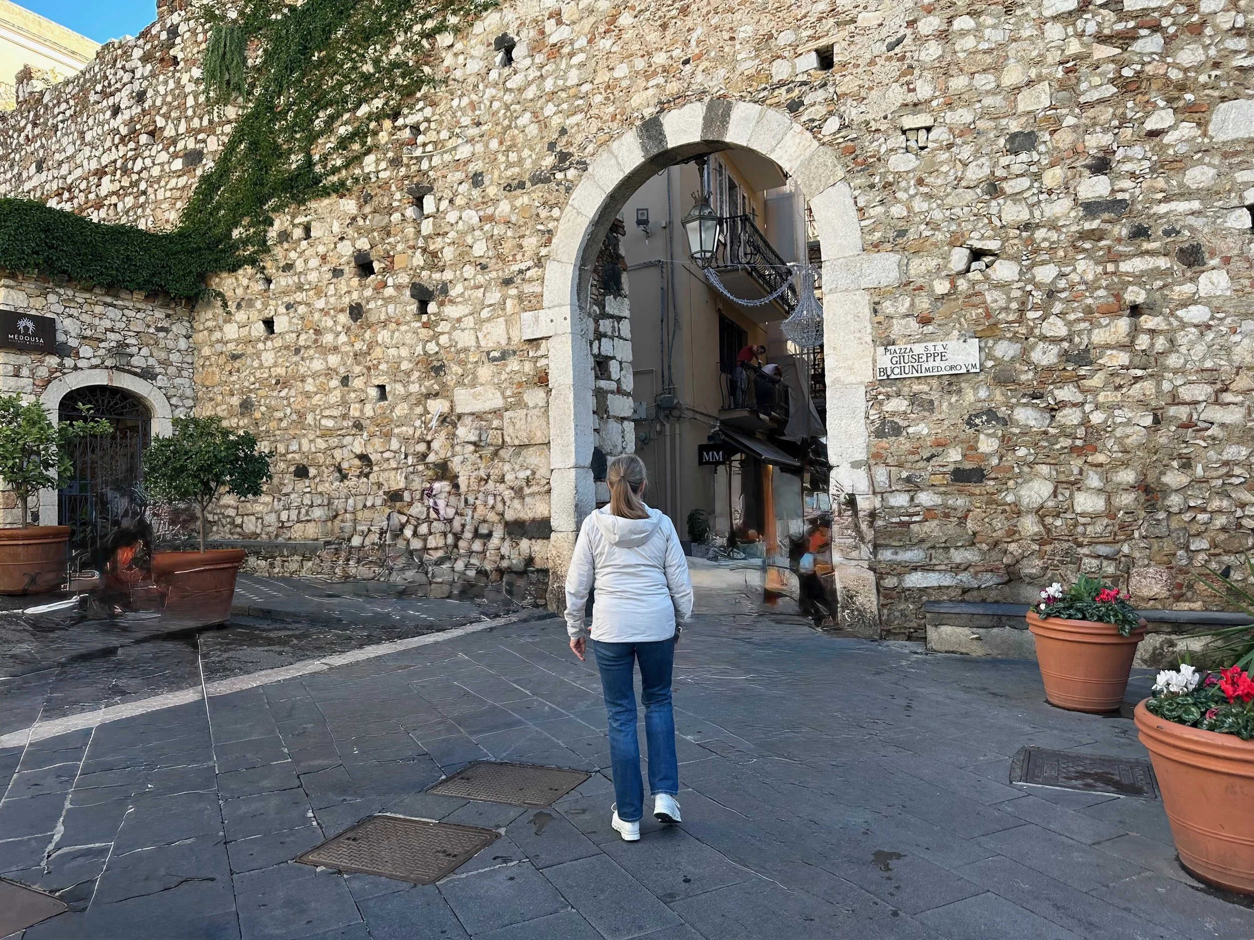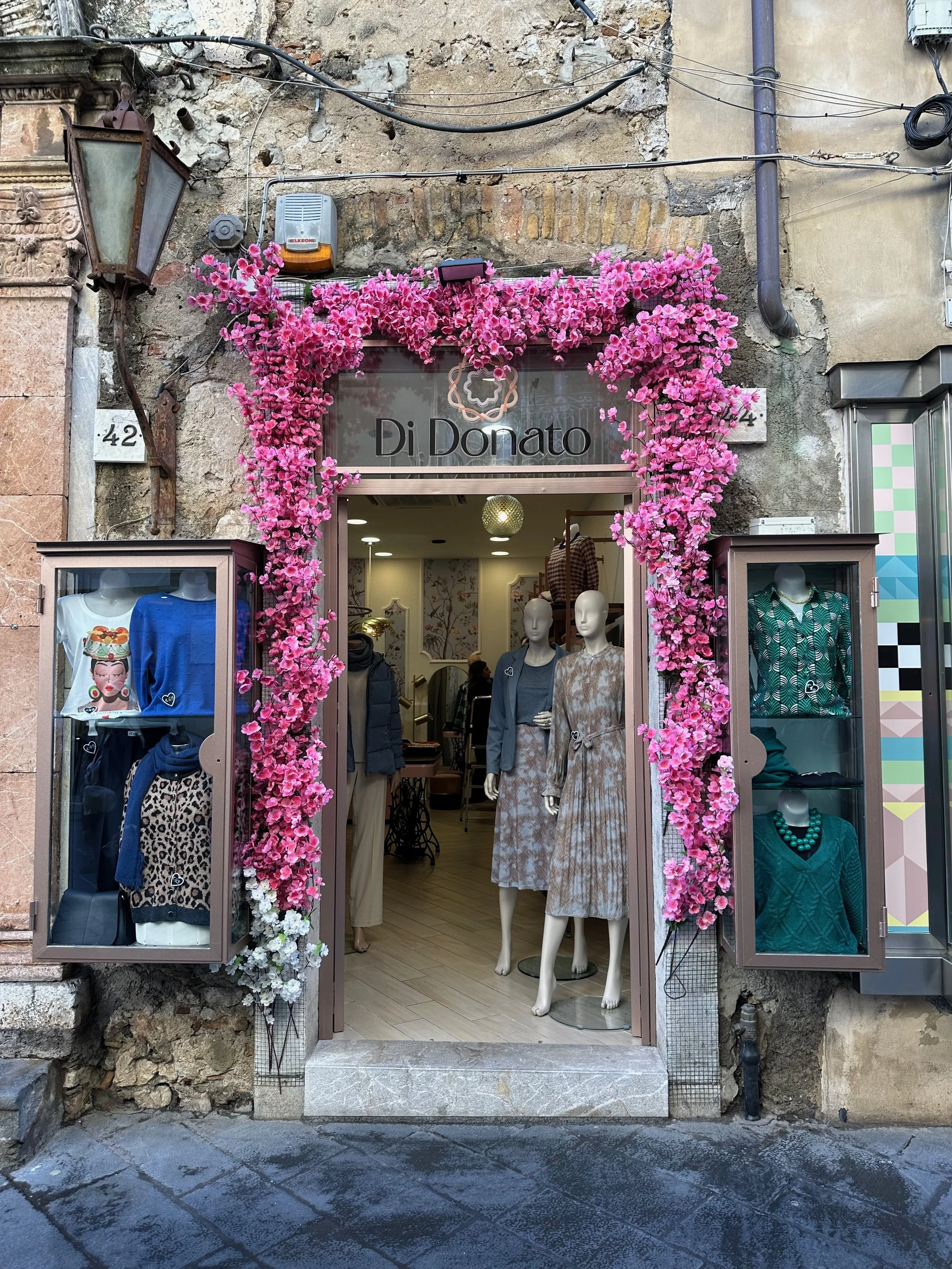 It took about 45 minutes for the bus to wind its way up the mountain through several tunnels to reach the drop off point at a giant parkade. From there we took an elevator up to the street level of Taormina. Once there it was a matter of walking…everywhere. Aside from the amphitheatre at the opposite end of the town, the principal activity here was eating and shopping at the many wonderful independent shops and restaurants. What made these two activities different than elsewhere, was the age and charm of the town. Most, if not all of the buildings are hundreds of years old, with some being very much older than that.