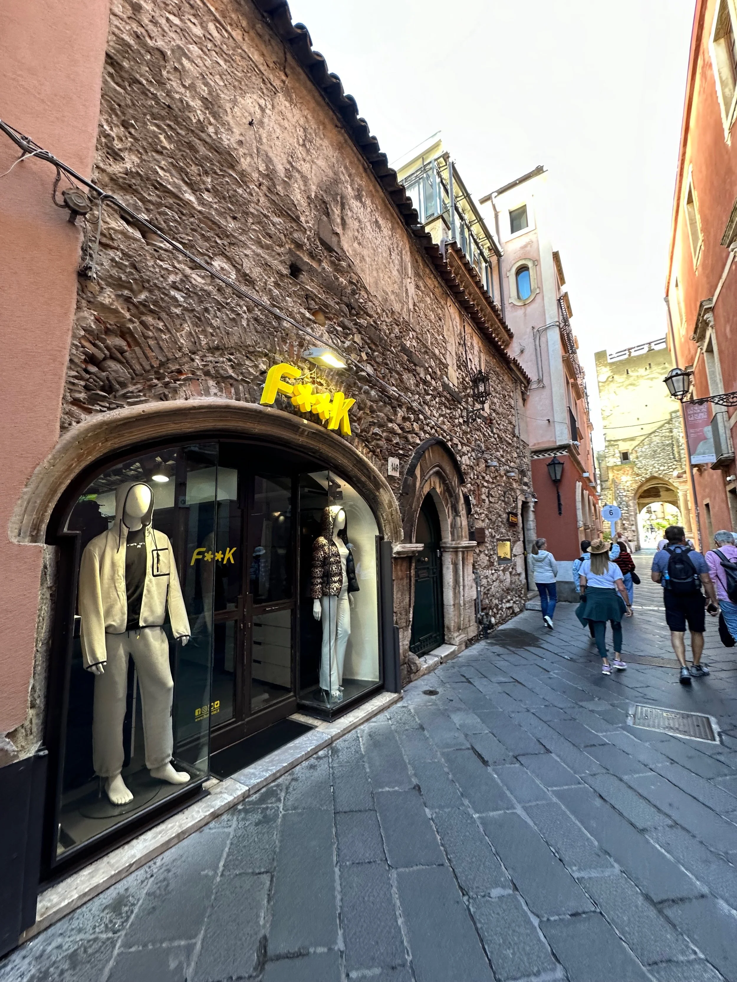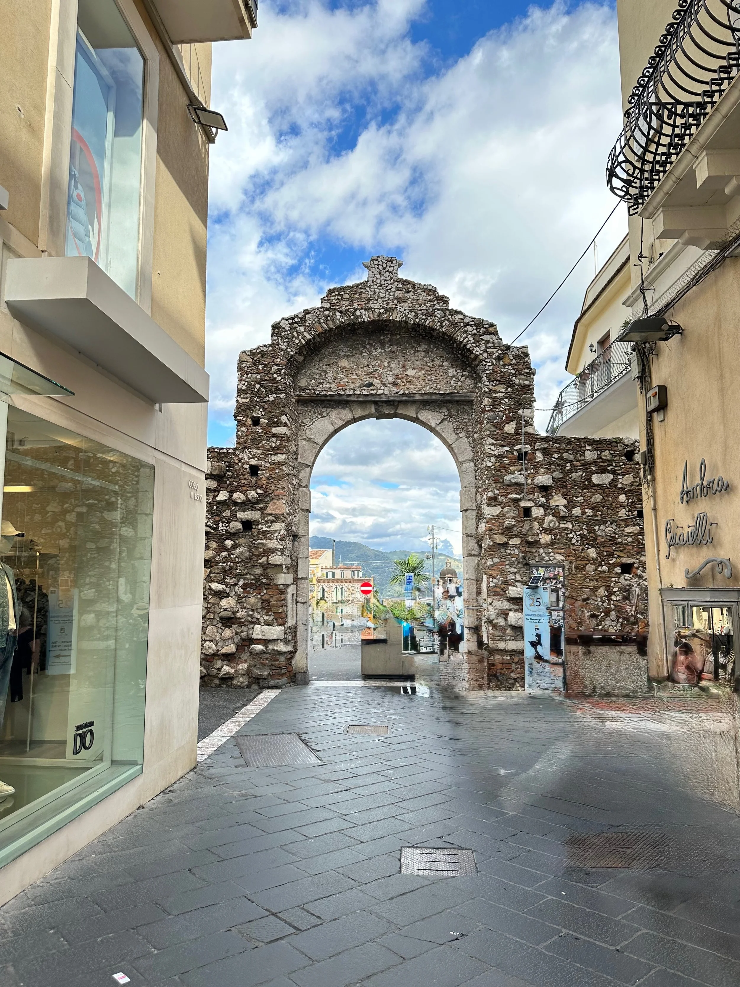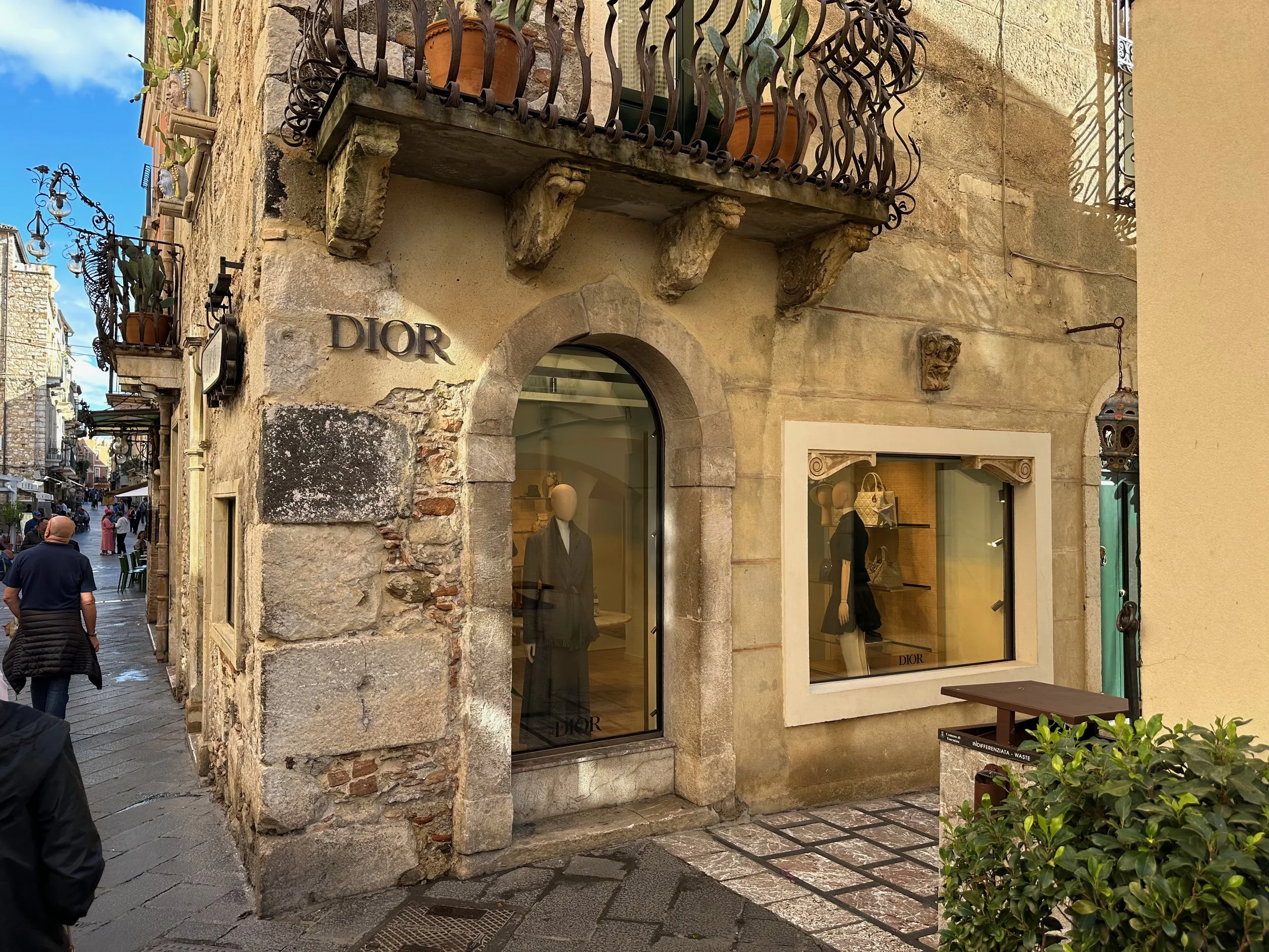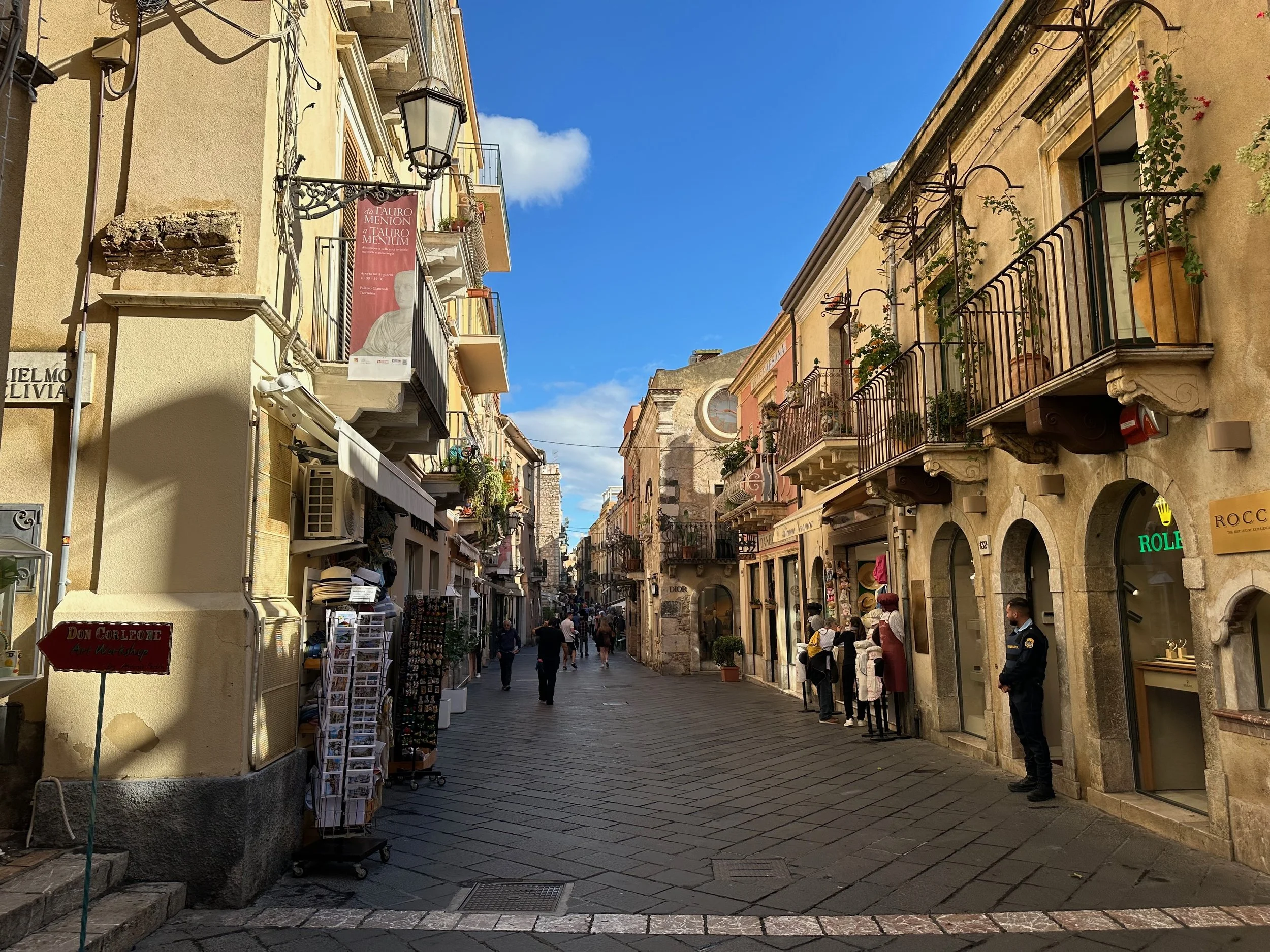 Taormina dates back to its founding in 396 BC on Mt. Taurus after the coastal town of Naxos was destroyed. The Greek amphitheatre was constructed in the 3rd century BC, and then rebuild five centuries later by the Romans in the 2nd century AD. But before we could see the theatre, we had to walk the length of the town past all those temping shops.