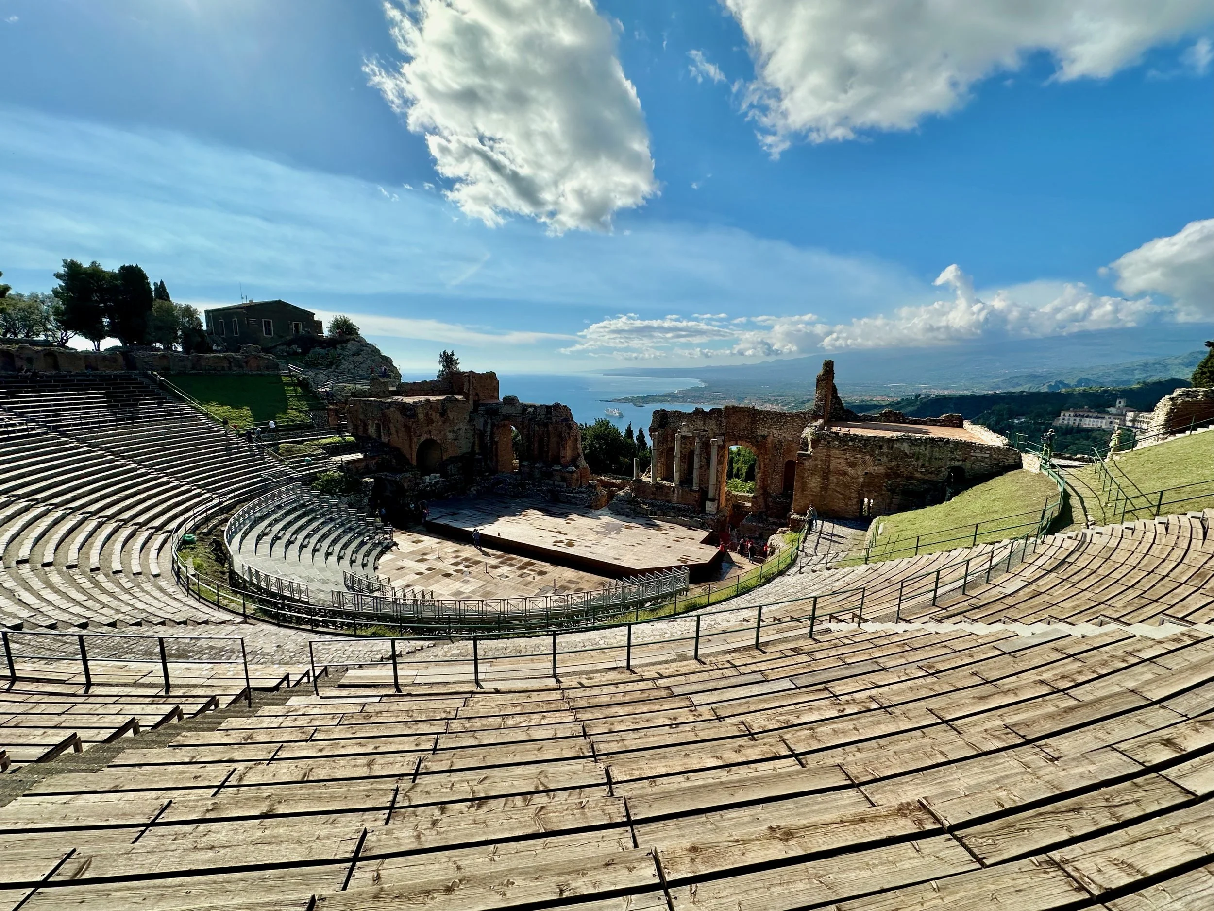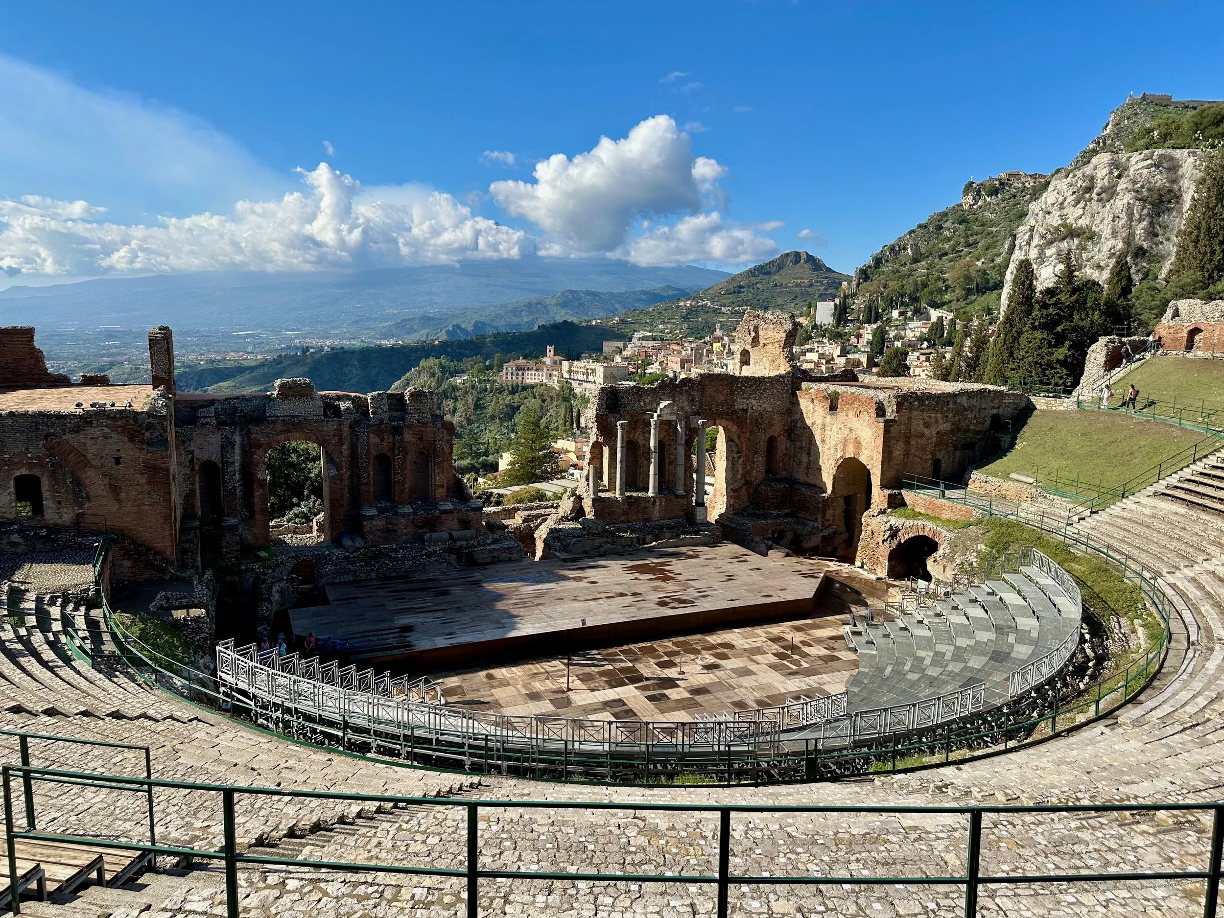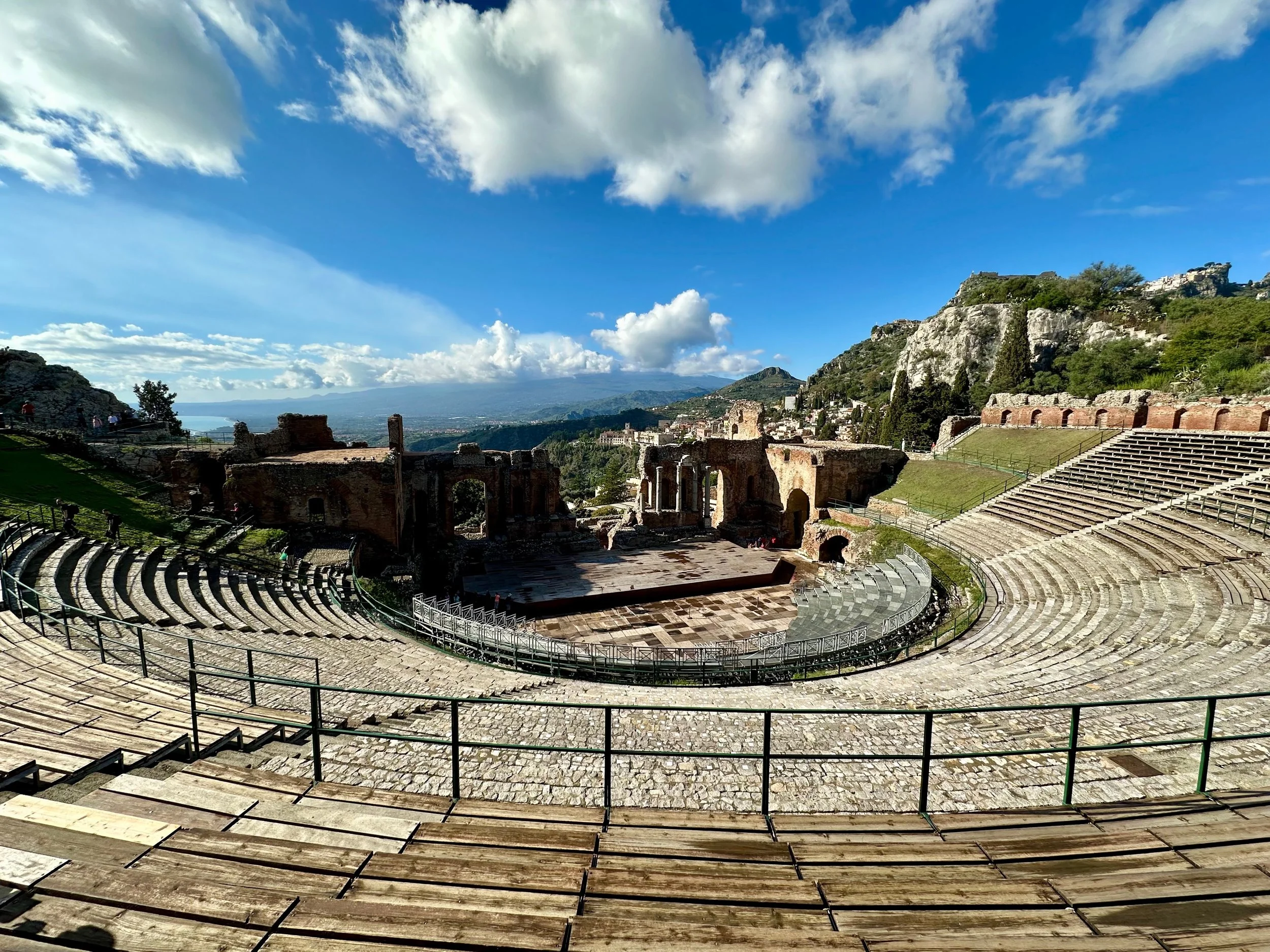 Ancient Theatre of Taormina. Built in the 3rd century BC by the Greeks, then rebuilt by the Romans. It’s still in use today and holds about 10,000 spectators.