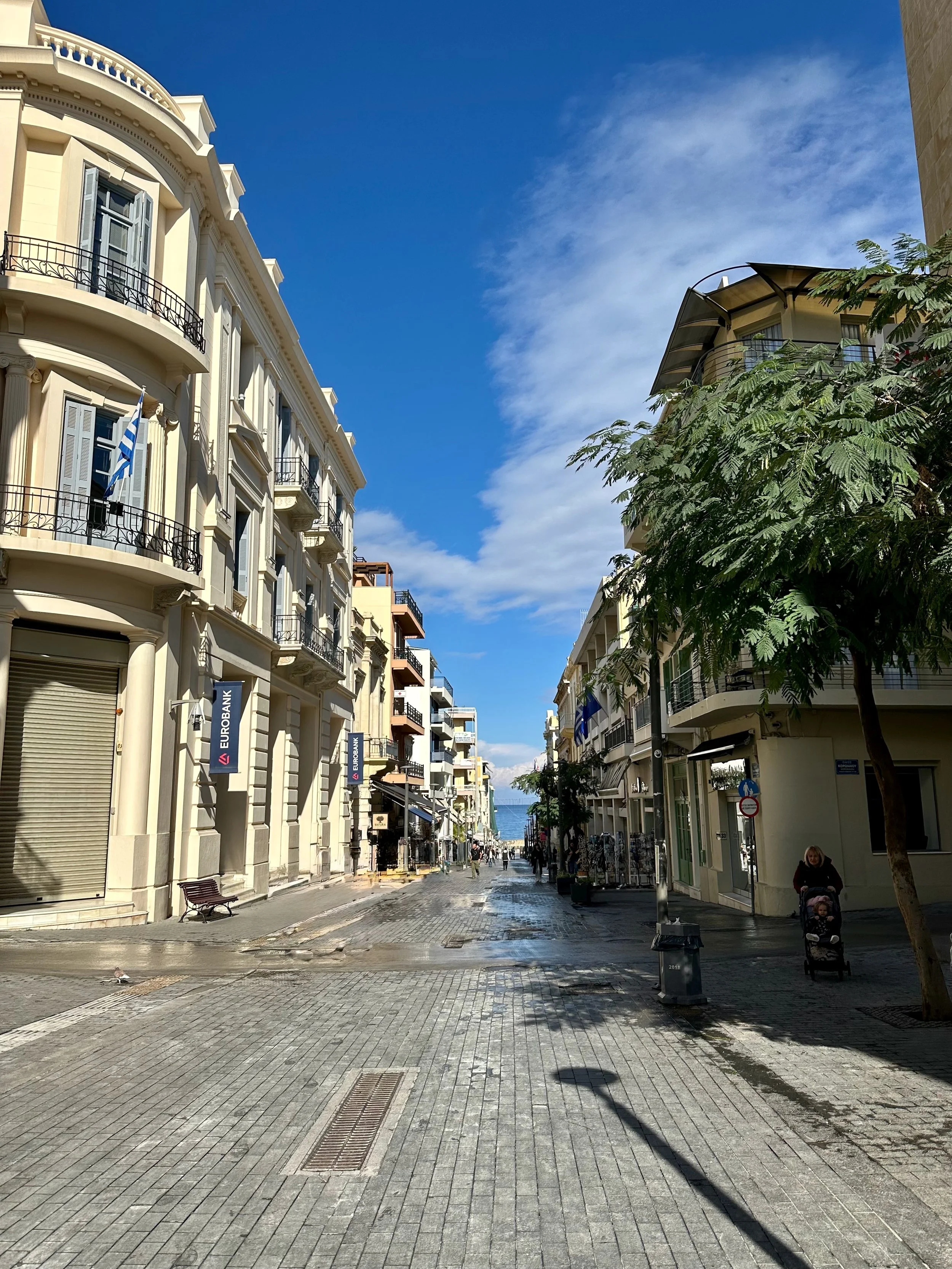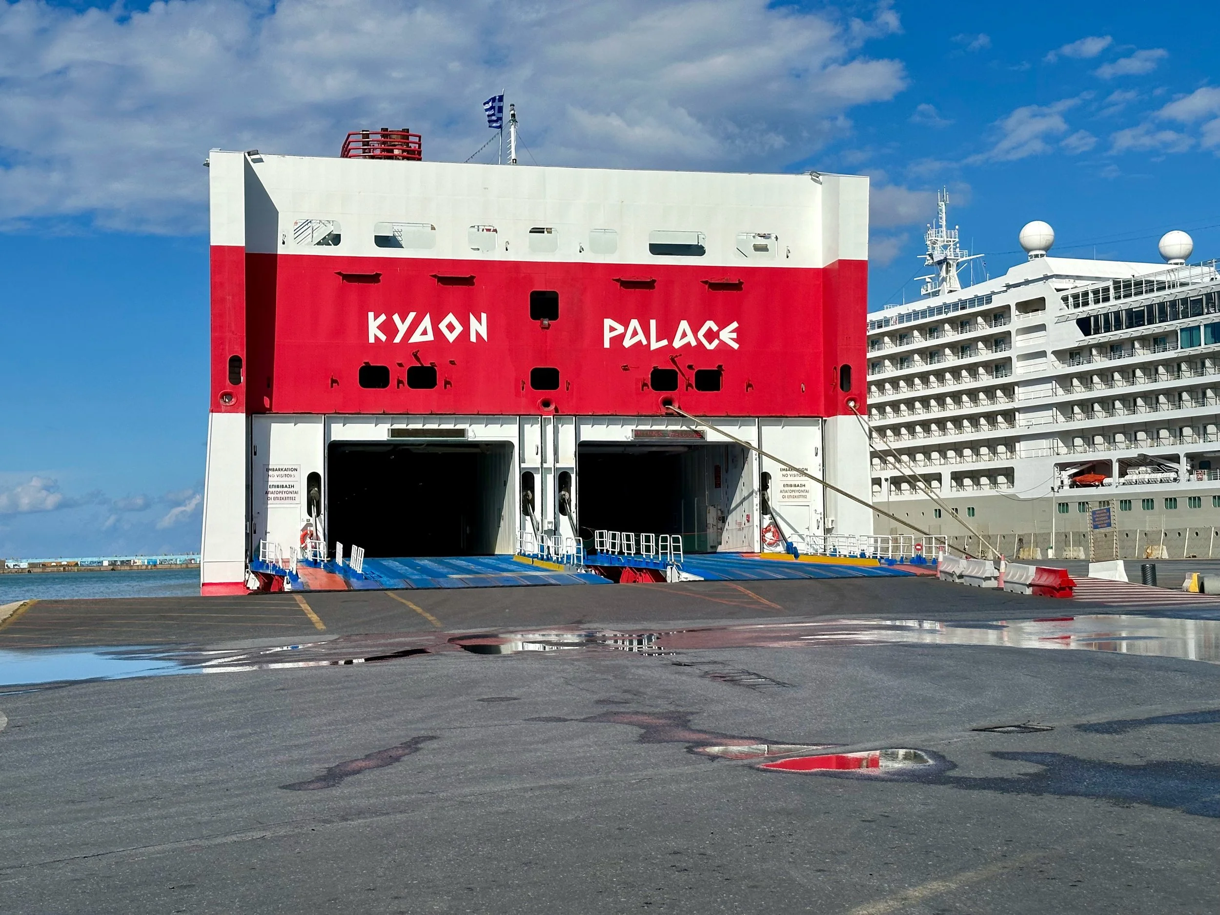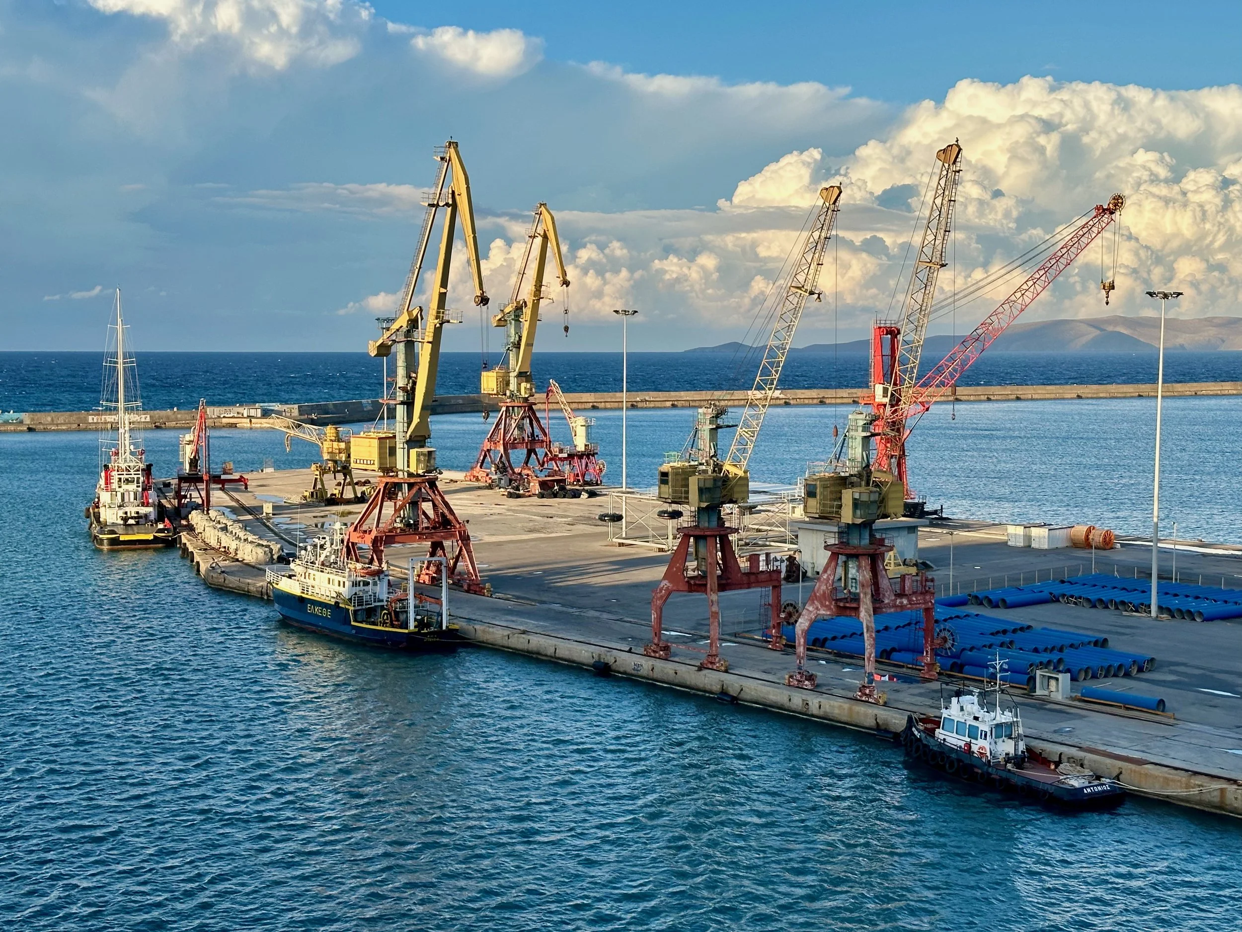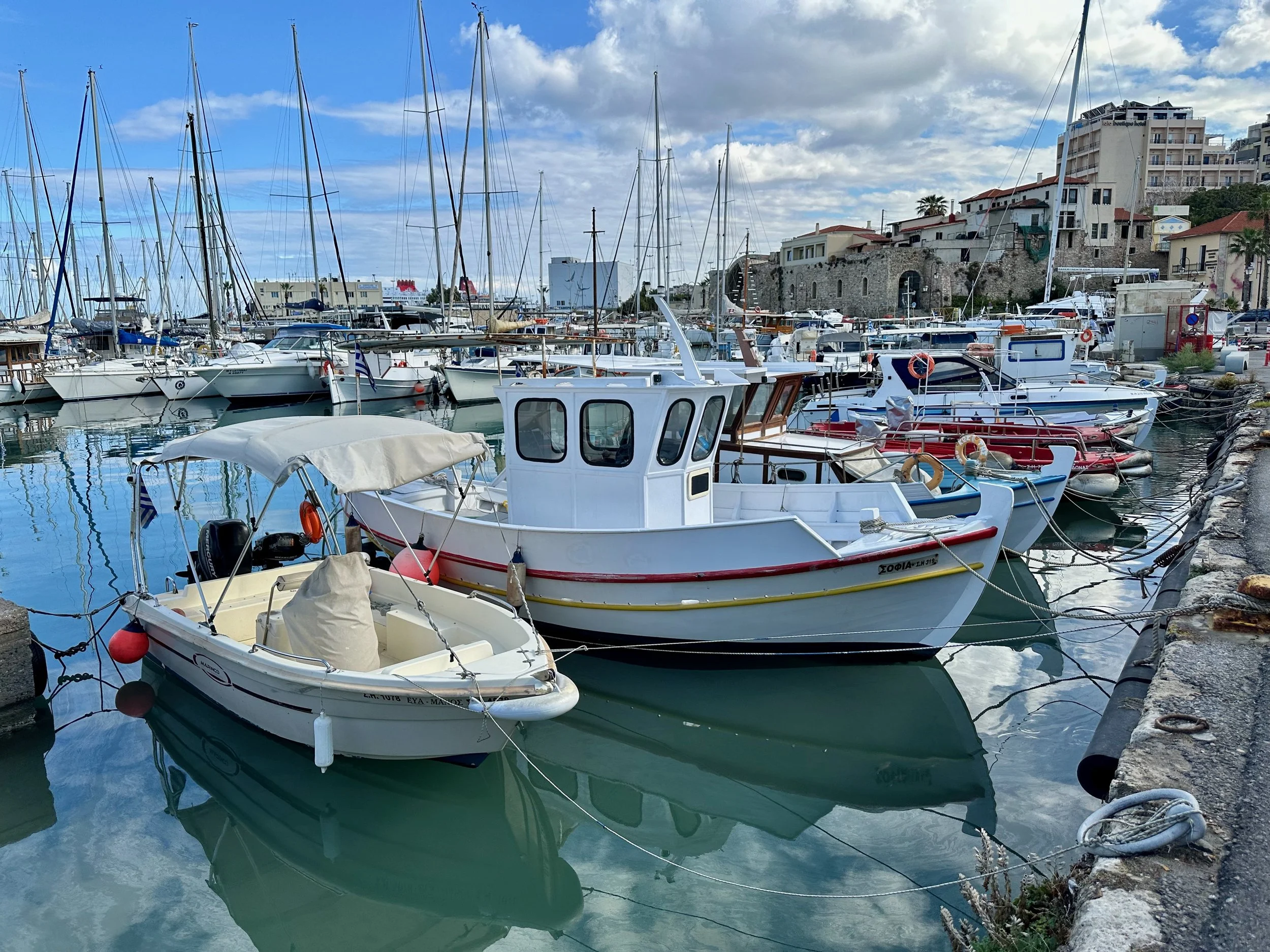 Fortunately for us, not long after catching the shuttle bus into the centre of town, the clouds started to part and within an hour sun broke through for the rest of our stay. Missing the formal excursion never really bothered us as by this time we were getting weary. A relaxed stroll through the town, and a nice walk back to the ship via the harbour road was a perfect way to spend time in Heraklion. Being from a harbour city ourselves, we felt right at home here.