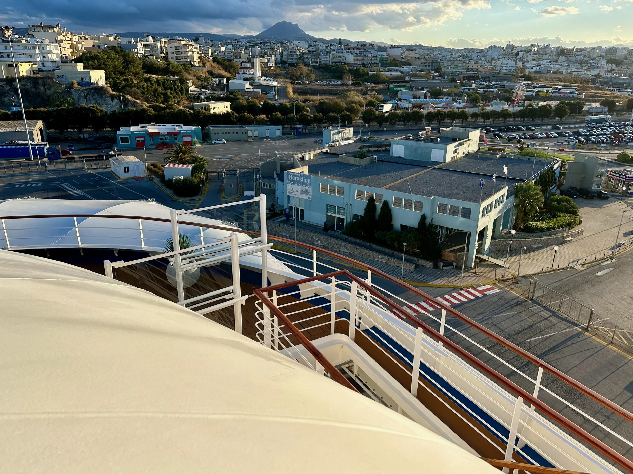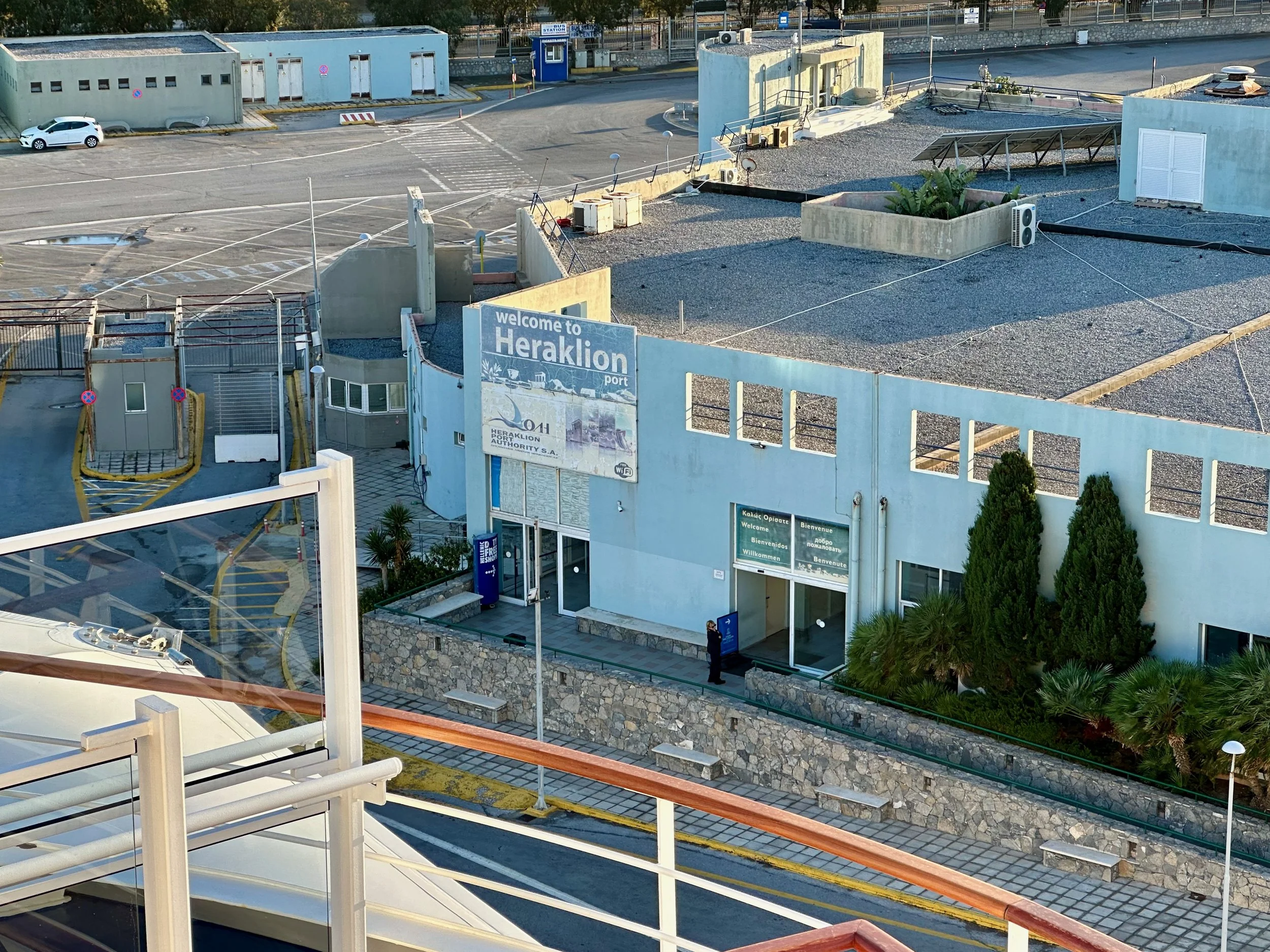 Our last port of the cruise, if you don’t count flying home from Athens, was Heraklion on the island of Crete. The morning of our arrival was heavy overcast, with off and on rain. Not a great way to start our first visit to Greece.