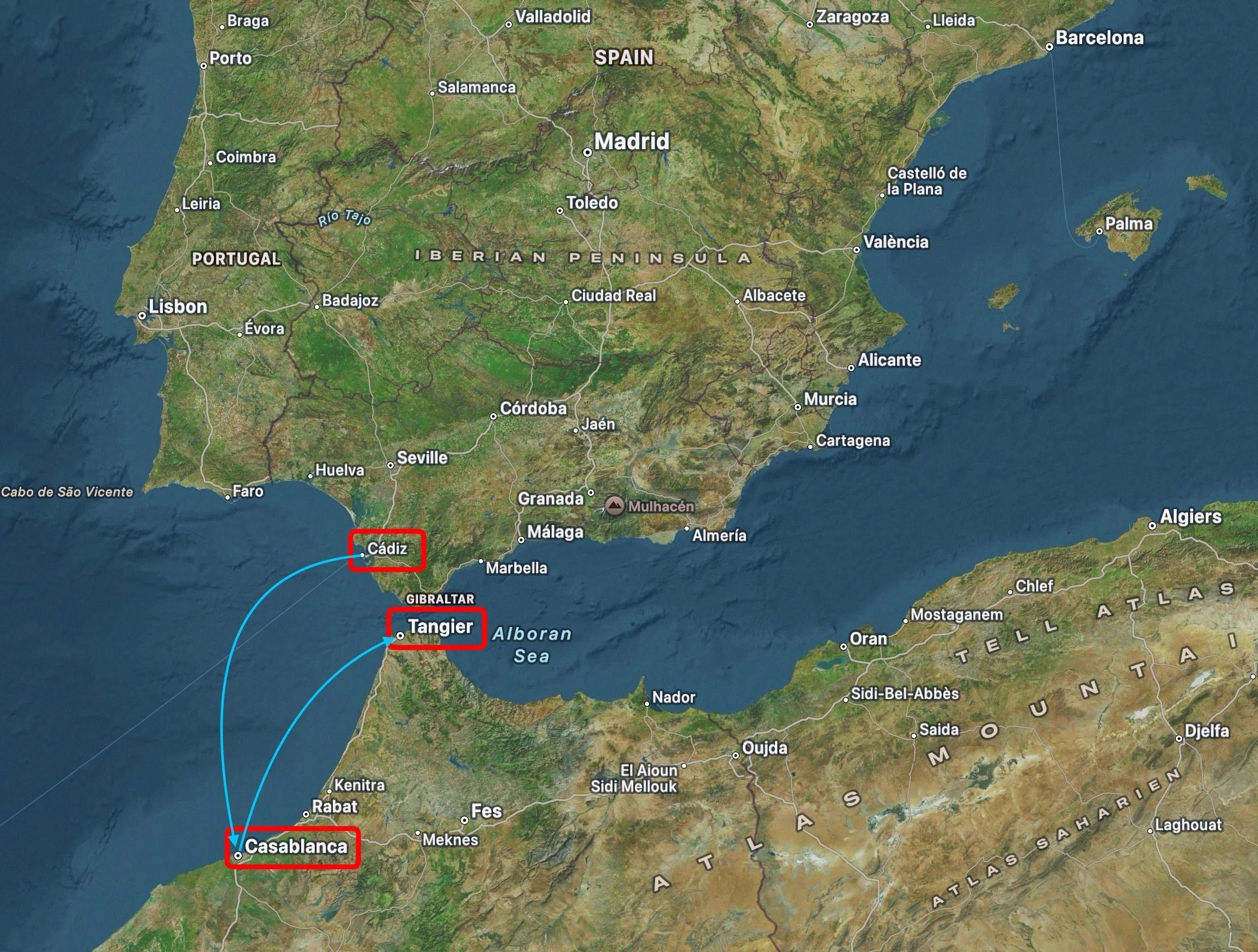 We would see several cities in Morocco, starting with Casablanca and Rabat, and then finally in Tangiers up by the Straits of Gibraltar.