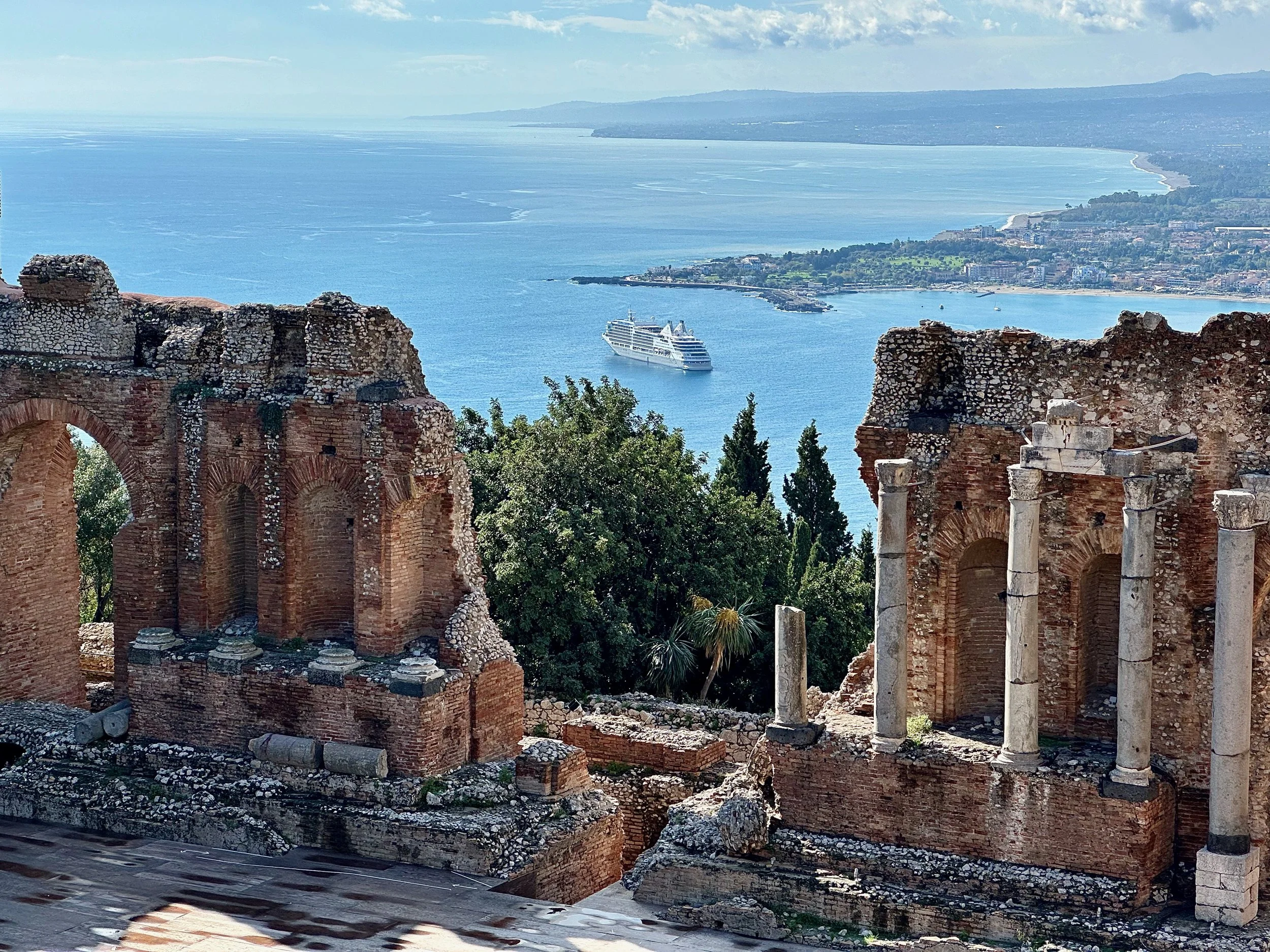 From the top of the theatre we could see in all directions, and the view was beautiful. From the bay at Naxos, to Mazzeo on the coastline north of the mountain, everything was basking in the warmth of the Sicilian sun.