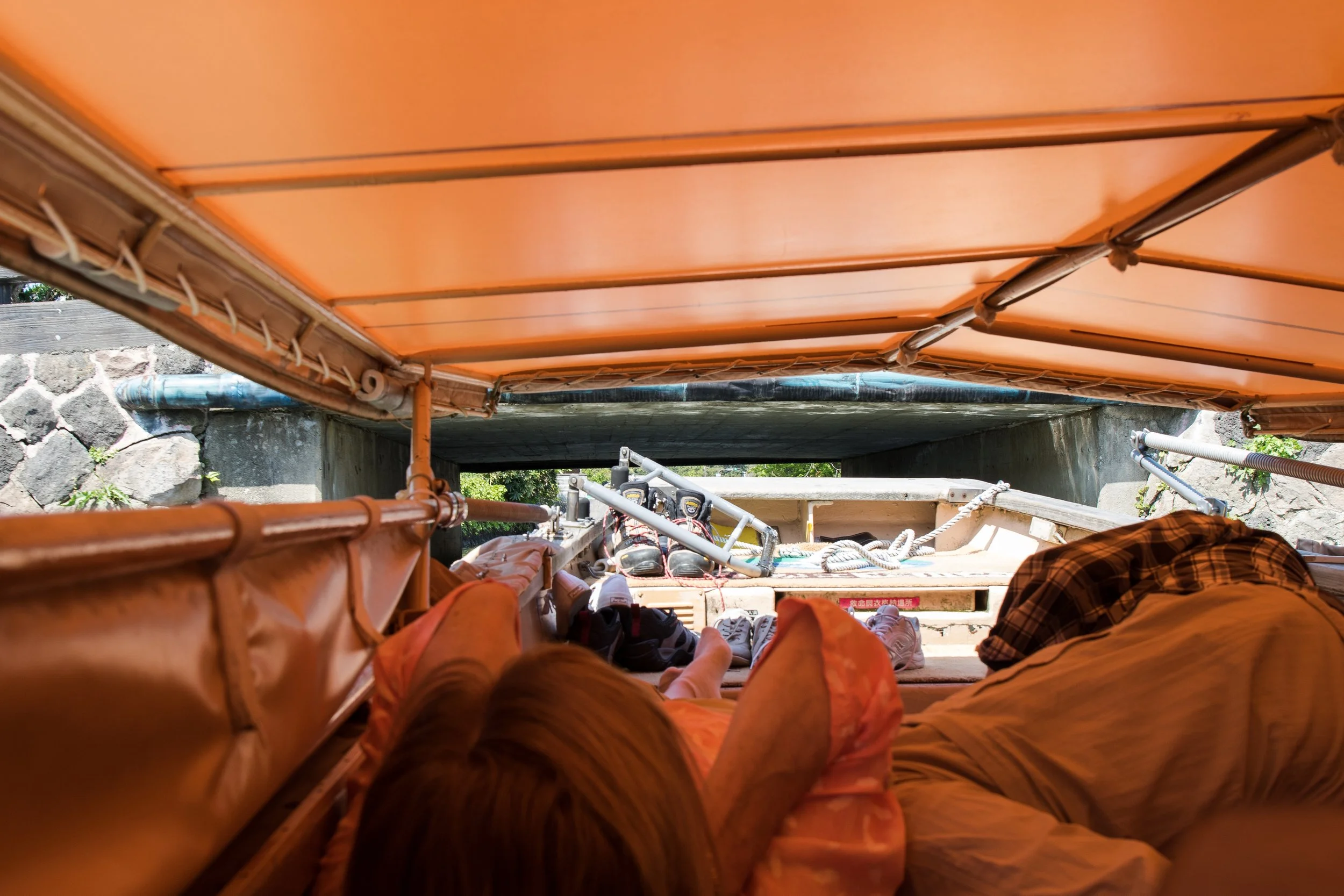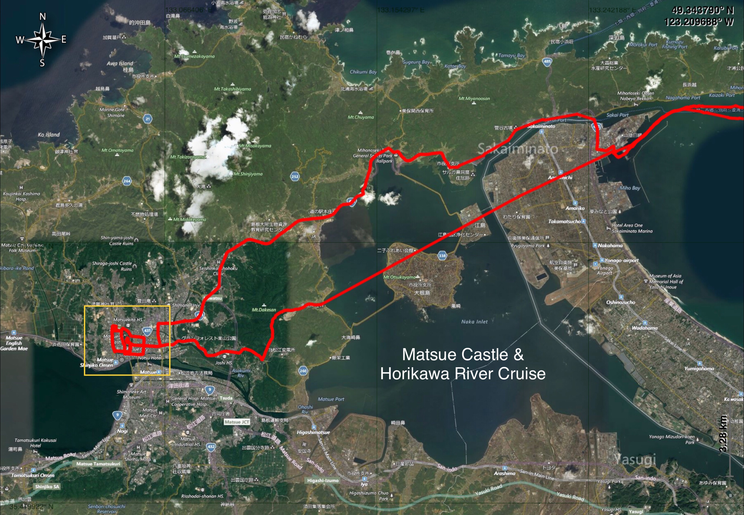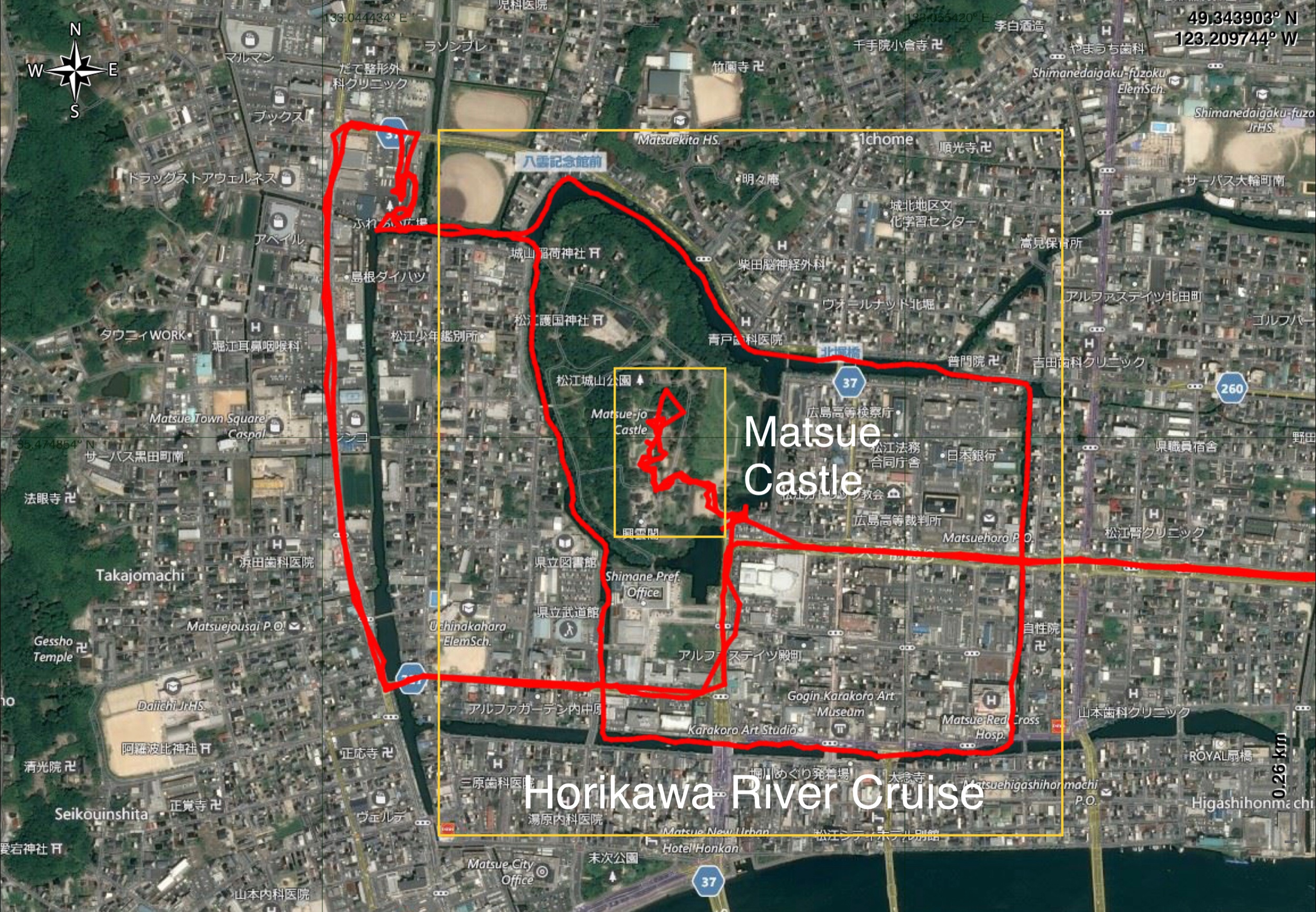 While in Sakaiminato, we visited the famous Matsue Castle and also traveled around the Kyobashi River “canal” system in the town. On board a small eight passenger boat, the voyage would see us lying down flat on the floor of the craft in order to travel under the many road overpasses of the narrow waterway. It reminded us of cruising down the Seine River in France, when the ship’s bridge and deck railings had to be lowered in order to fit under certain bridges. That ship, however, was much more comfortable than this little boat.