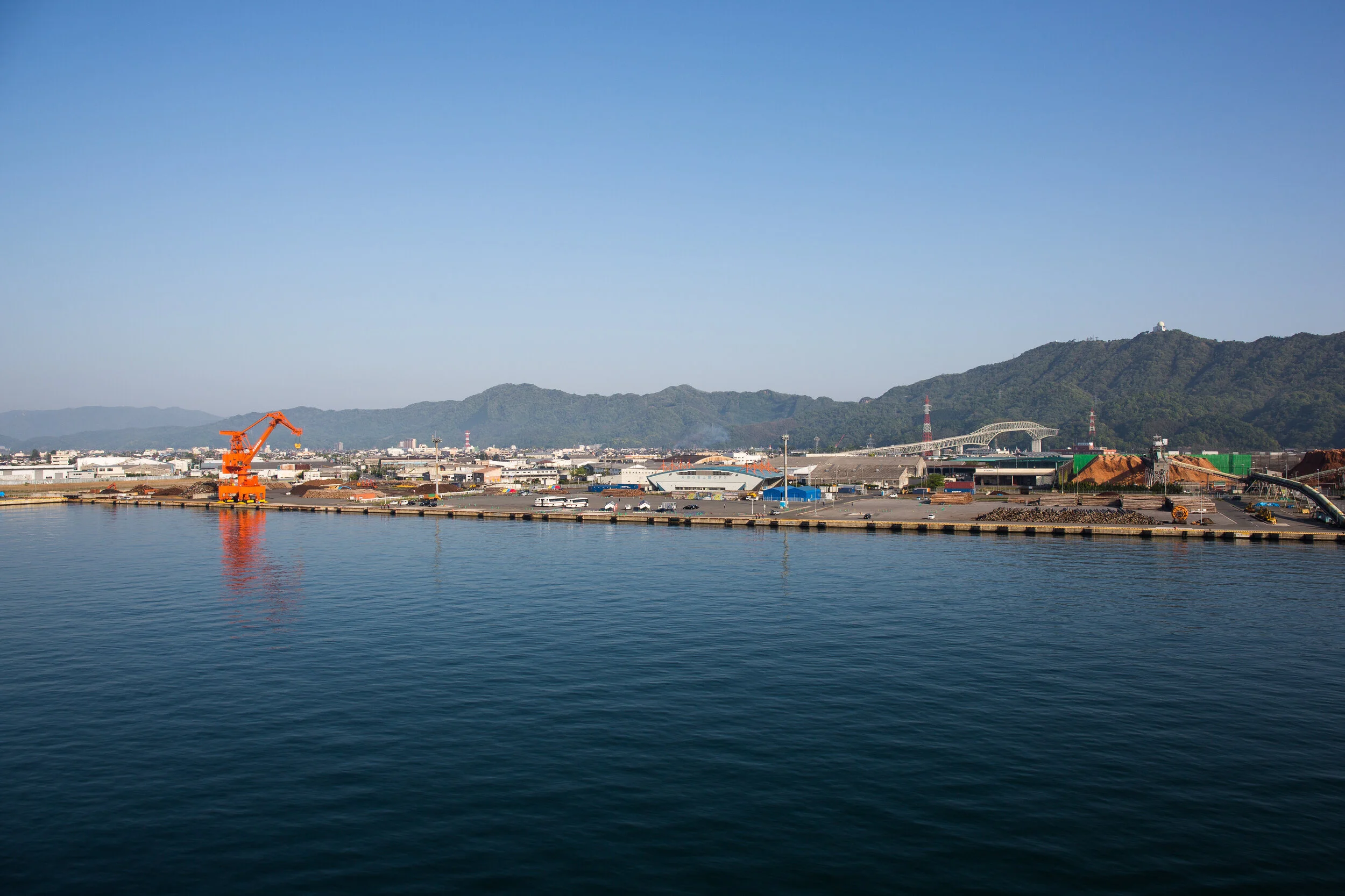Coming into port at Sakaiminato. Our birthing tug sits patiently, waiting for us to arrive.