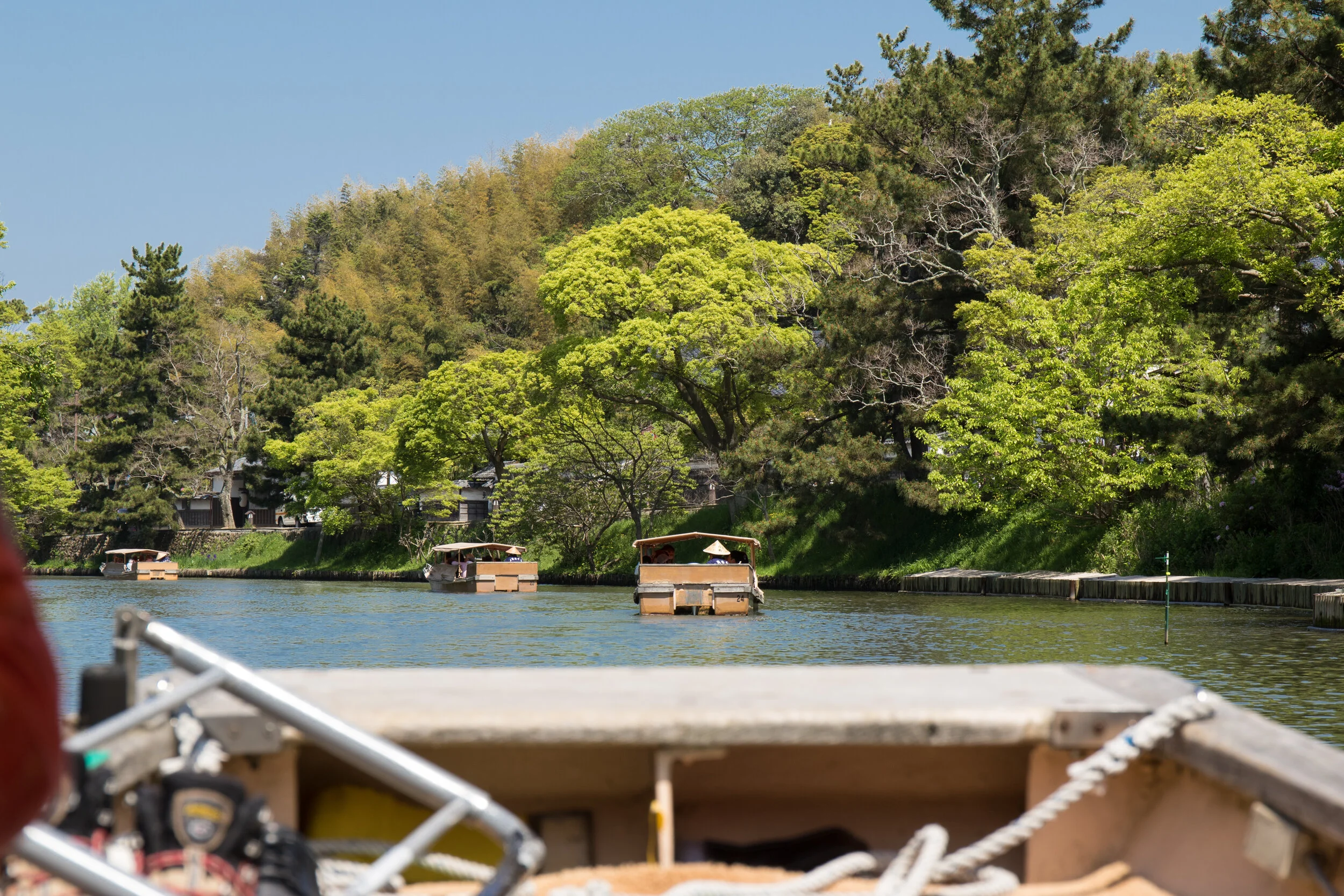 Also viewable from the river cruise boat was the castle that we would visit after the river cruise was completed. The castle, however, was not so peaceful and quiet. Continuing with the Golden Week holiday tourists from around Japan, the castle would turn out to be very crowded.