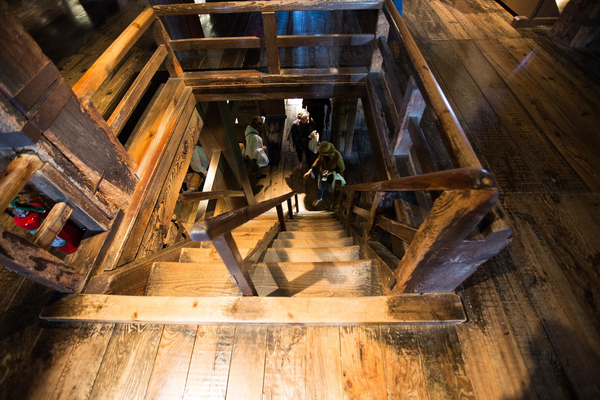 Along with the entertainment, this area of the castle also contained the ubiquitous souvenir stands and confection counters where you could buy all manner of trinkets and refreshments. For us, however, we were more interested in just getting inside the castle building and getting on with the tour. Little did we know that there were a myriad of stairs and ladders that we had to climb in order to reach the top floor of the building, and they weren’t built to modern day stair rise and run comfort.