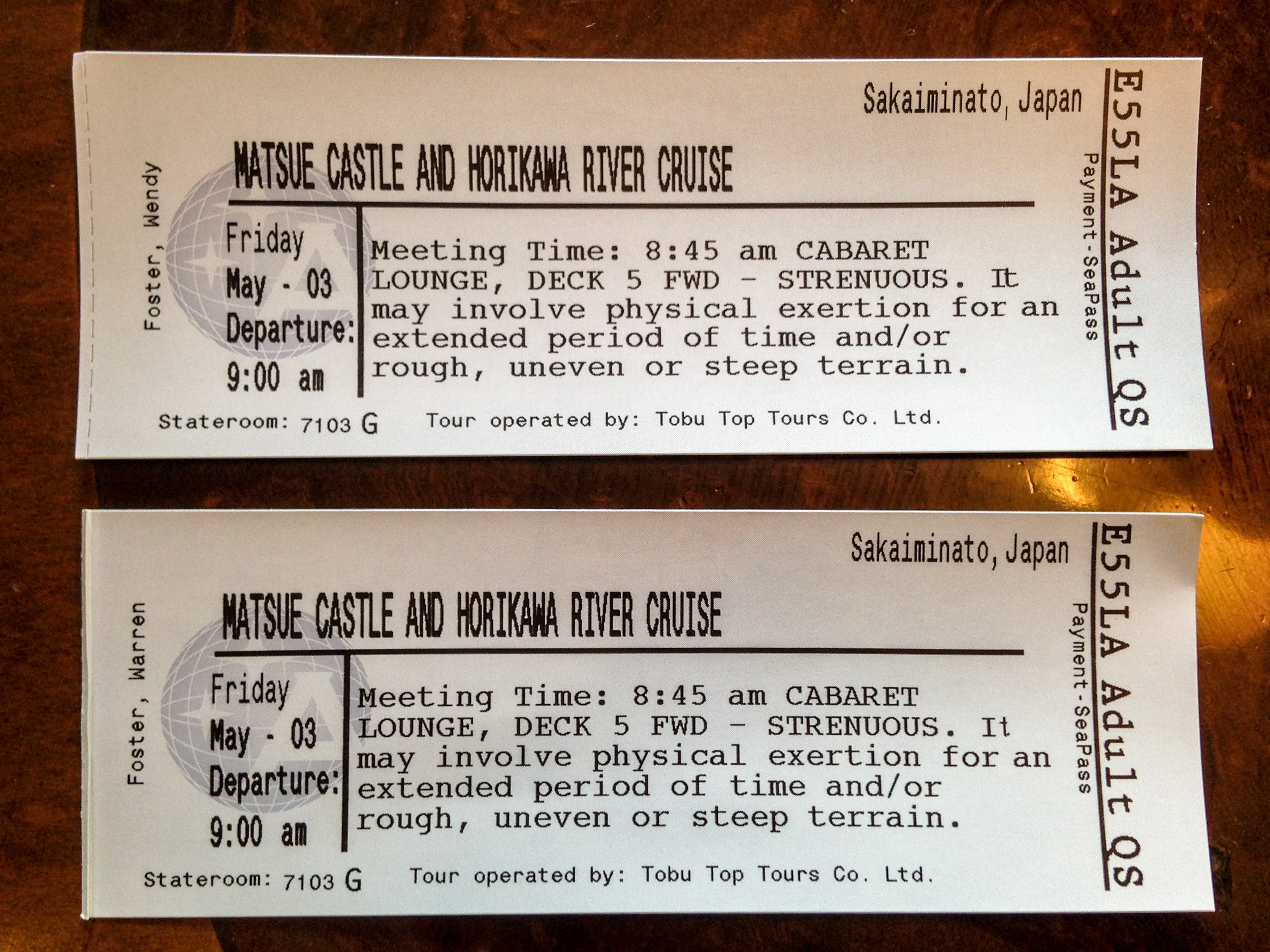 Our ship passes that get us into the tours of the castle and the river/canal cruise. No ticket, no access. So we’d have to keep these in a safe and memorable location.